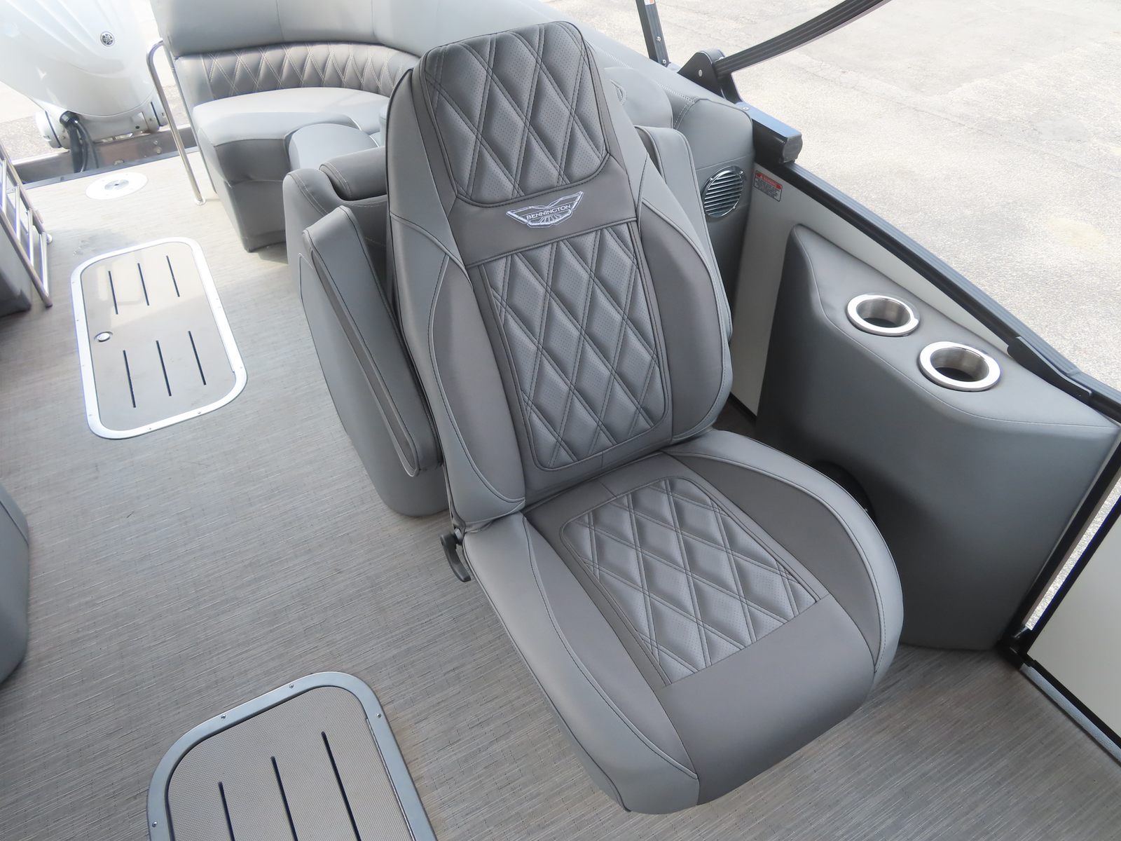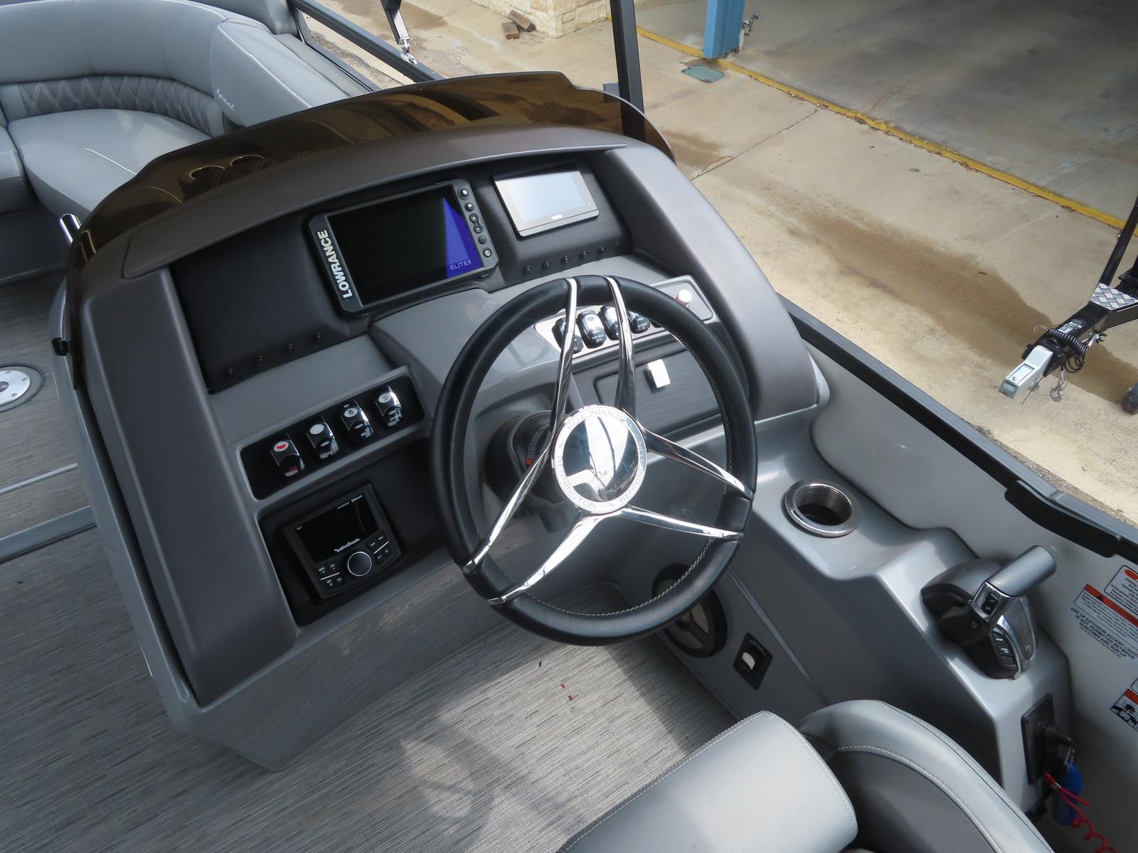 Powering this Bennington pontoon is a robust single engine boasting an impressive 300 horsepower. This powerful setup ensures smooth acceleration, responsive handling, and reliable performance whether you’re cruising across the lake or towing water toys for added excitement. With just 80 engine hours, you can trust that this pontoon boat for sale has plenty of life left to deliver exhilarating rides and dependable operation. The combination of horsepower and Bennington’s renowned hull design means you’ll enjoy a stable, comfortable ride even in choppy conditions, making every outing a pleasure.