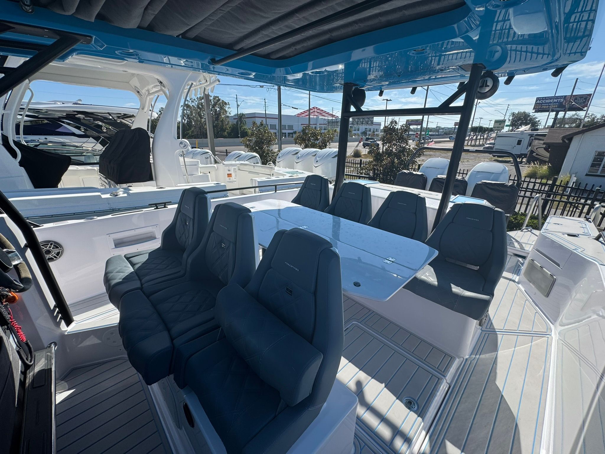 Aft deck seating, sun top coverage, and convertible lounging areas