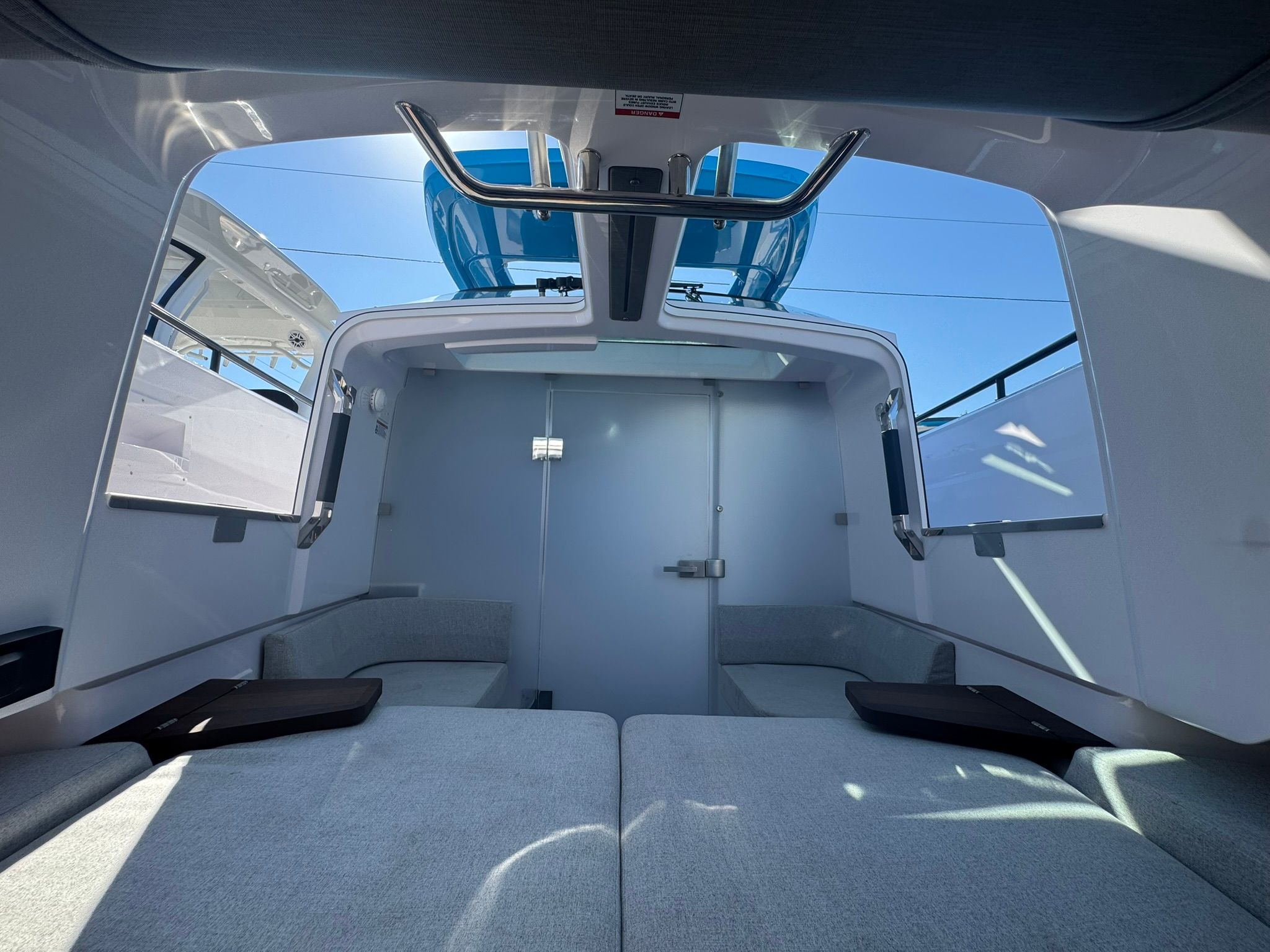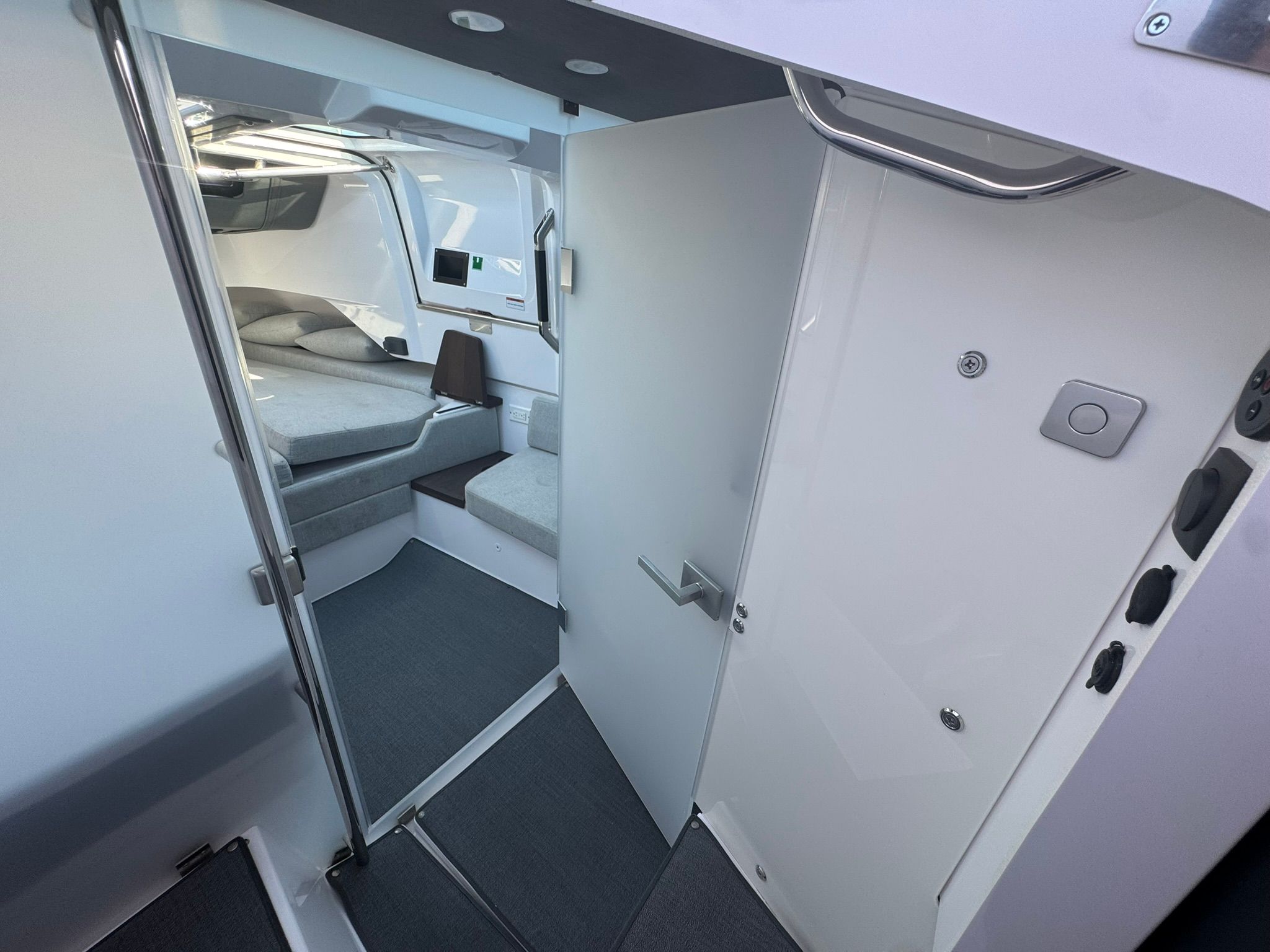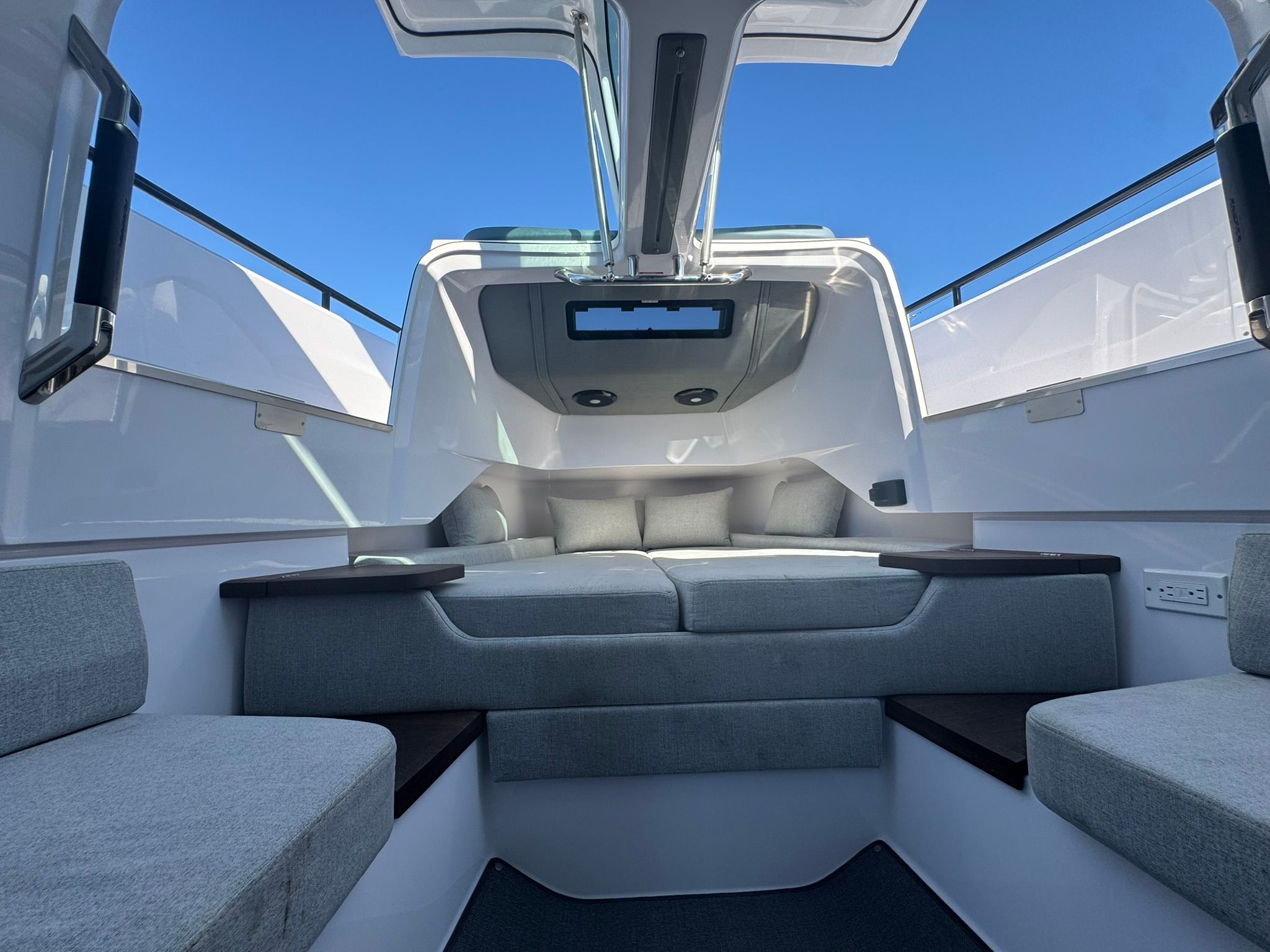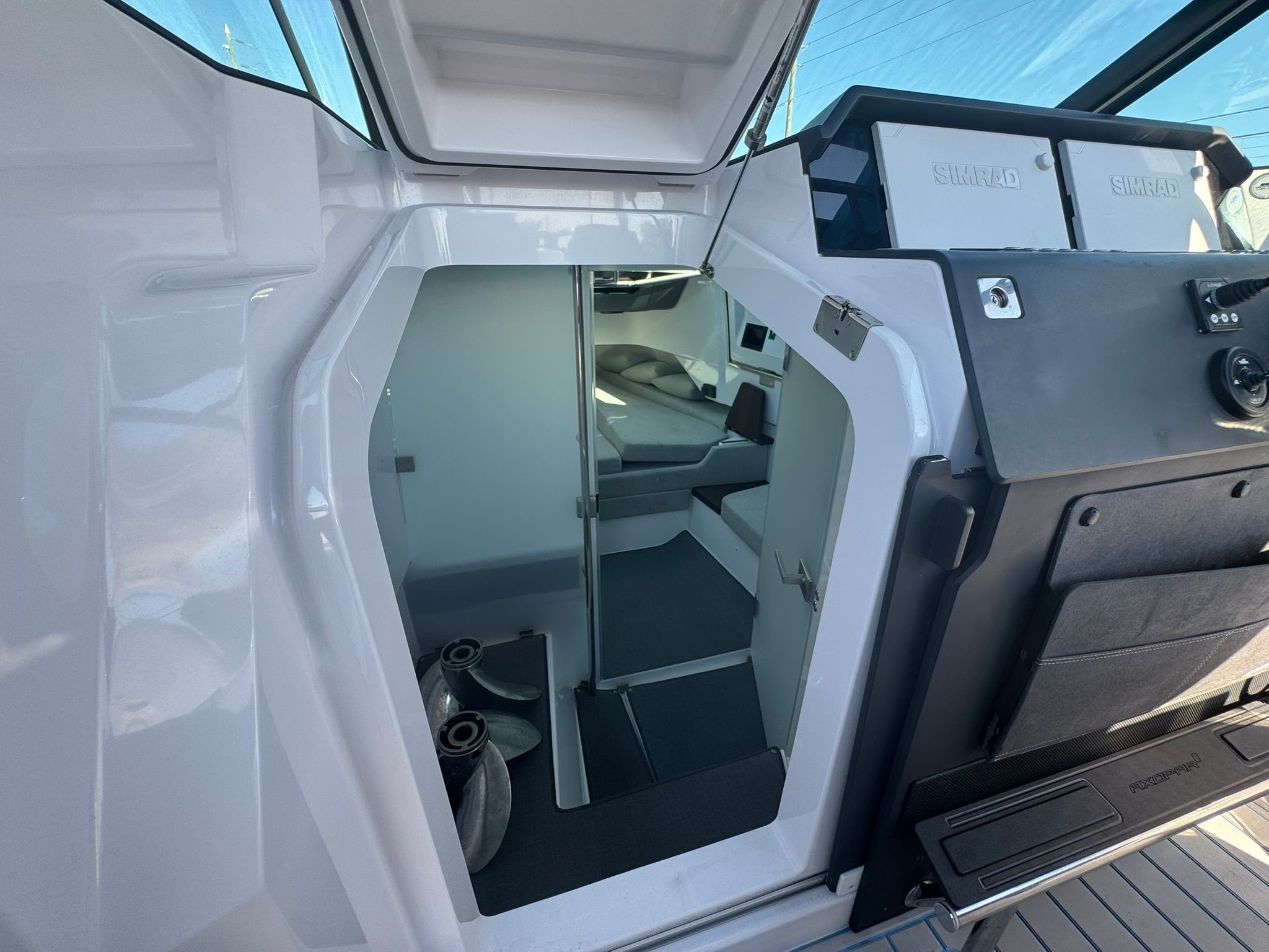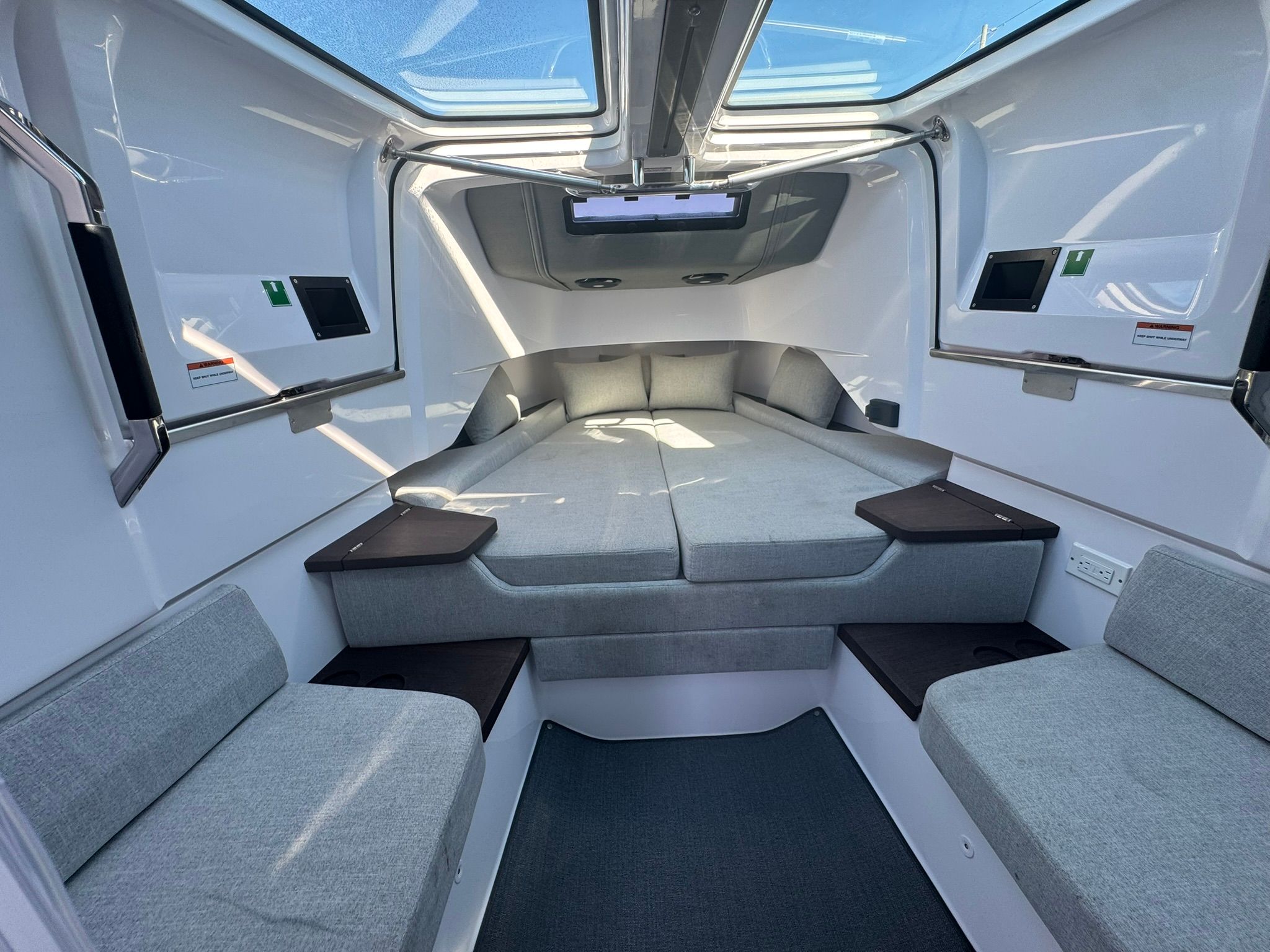 Forward cabin with natural light and easy access via Gull Wing Doors