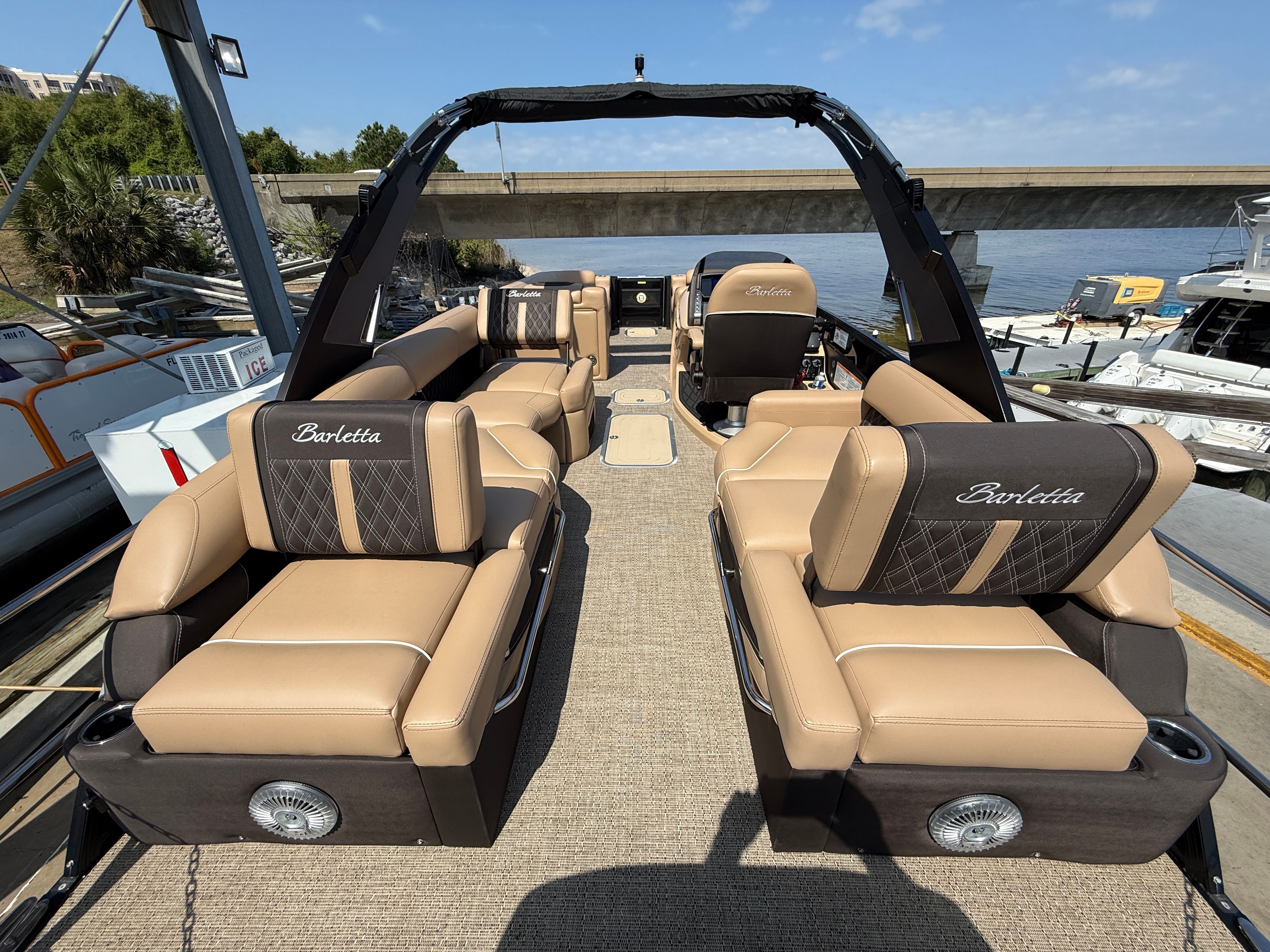 Check out this 2025 Barletta Lusso Twin Engine L25MAT powered with twin Mercury 400 V10 Verado engines with only 58 hours of use! This bad boy is a phenominal opportunity to buy a used boat for way less than new! This model was just introduced in 2025 and has been a hit! Blacked out sides and railing with Amore Tan seats make this thing stunning! Priced at $279,900, this boat is a deal! Call today to set up an appointment or to make an offer before she is gone! Joystick, Arch and much more! Buy a lightly used boat for way less than a new one!