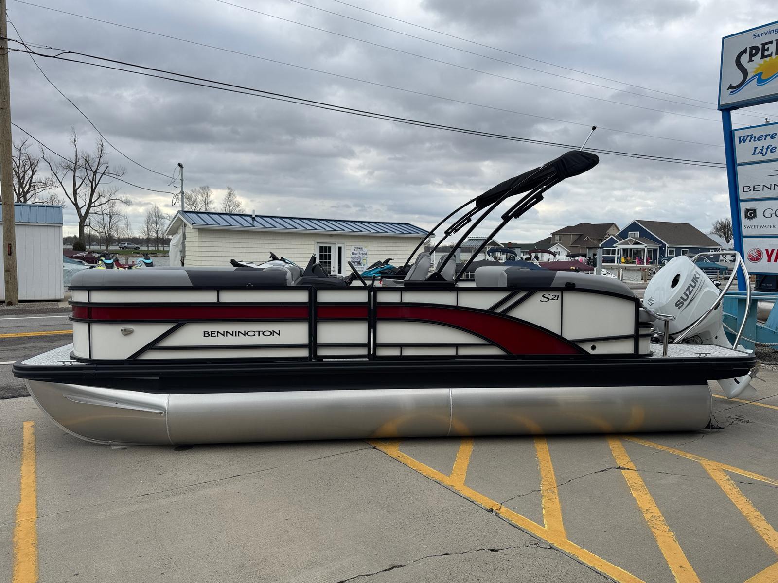 In summary, the 2026 Bennington 21 SSB SPS Pontoon is a remarkable blend of style, performance, and versatility. With its powerful Suzuki DF150ATXW5 engine, advanced water fuel separator systems, single switch battery, and eye-catching design elements like blackout logos and smooth metallic white panels, this Bennington boat for sale stands out as a premier choice for anyone seeking a new pontoon boat for sale. The spacious layout, practical features, and luxurious touches make it perfect for family outings, social gatherings, and relaxing escapes. Don’t miss your chance to experience the ultimate in pontoon boating – contact your local dealer today to learn more about the Bennington 21 SSB SPS and start your next adventure on the water.