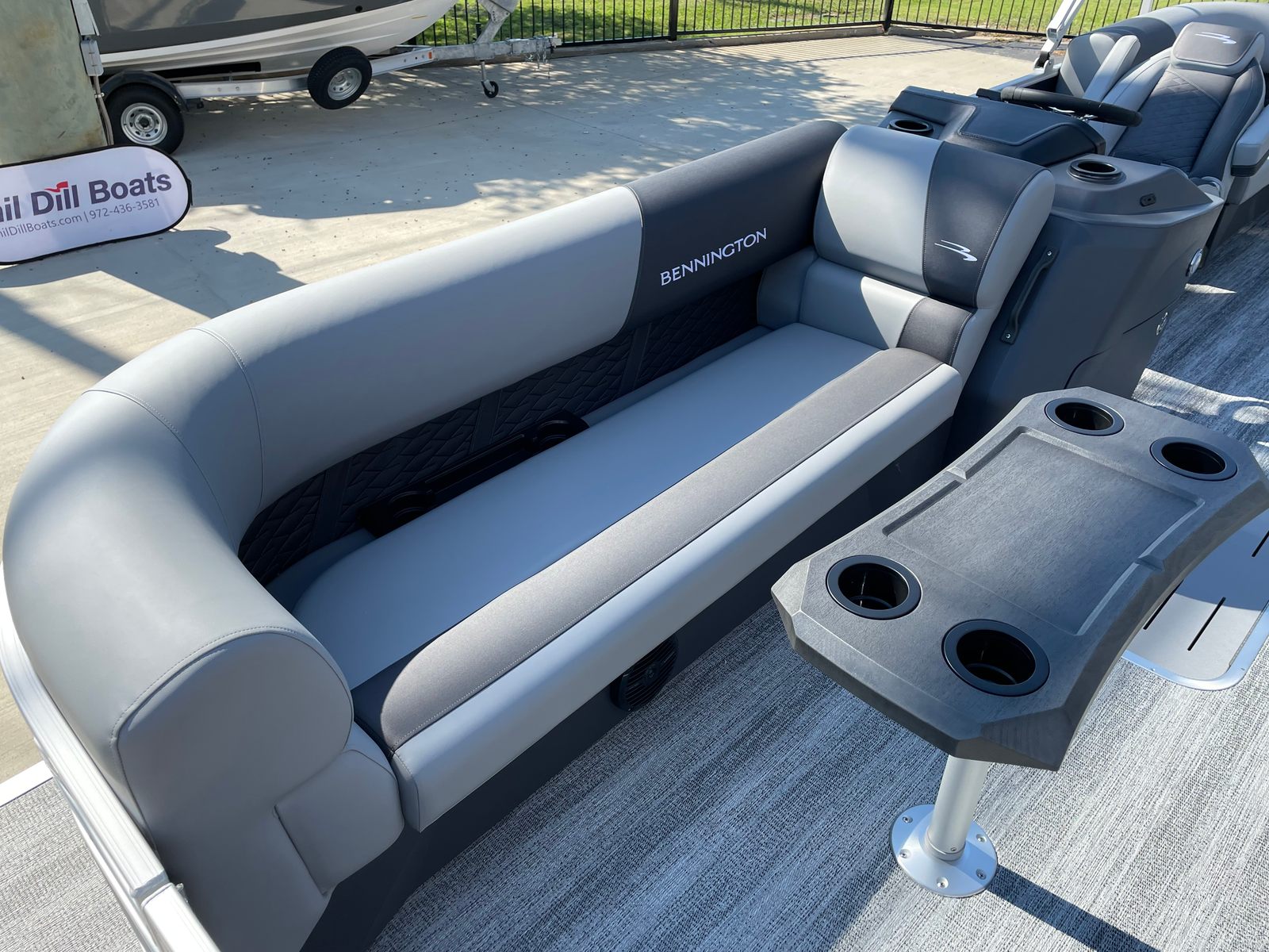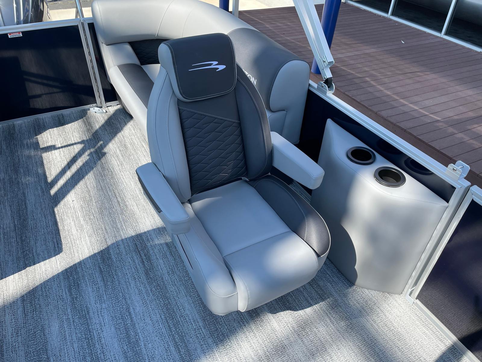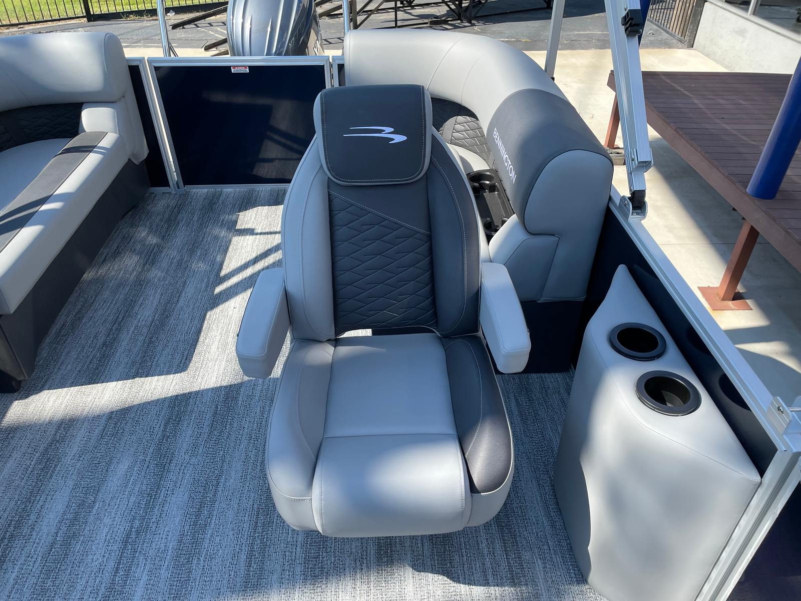 Step aboard the Bennington 21 SSR SPS and discover a host of special features designed to elevate your boating experience. The single switch battery system offers convenient power management, while the underdeck wave shield helps ensure a smooth and quiet ride by reducing water resistance. Stay connected and charged with the integrated wireless charger, and enjoy added protection from the elements with the stylish windscreen.For those who love watersports, the ski tow bar—part of the SPS package—makes it easy to enjoy wakeboarding, tubing, and skiing adventures. The accent in Smooth Gemini Black adds a touch of sophistication to the boat’s exterior, while the Serene Soft Touch Vinyl with Simtex accents and diamond pressed lumbar provides plush, supportive seating for all passengers. In-floor storage in the SPS S Series keeps your gear organized and out of the way, and the LaColla steering wheel with chrome accents adds a dash of elegance to the helm.