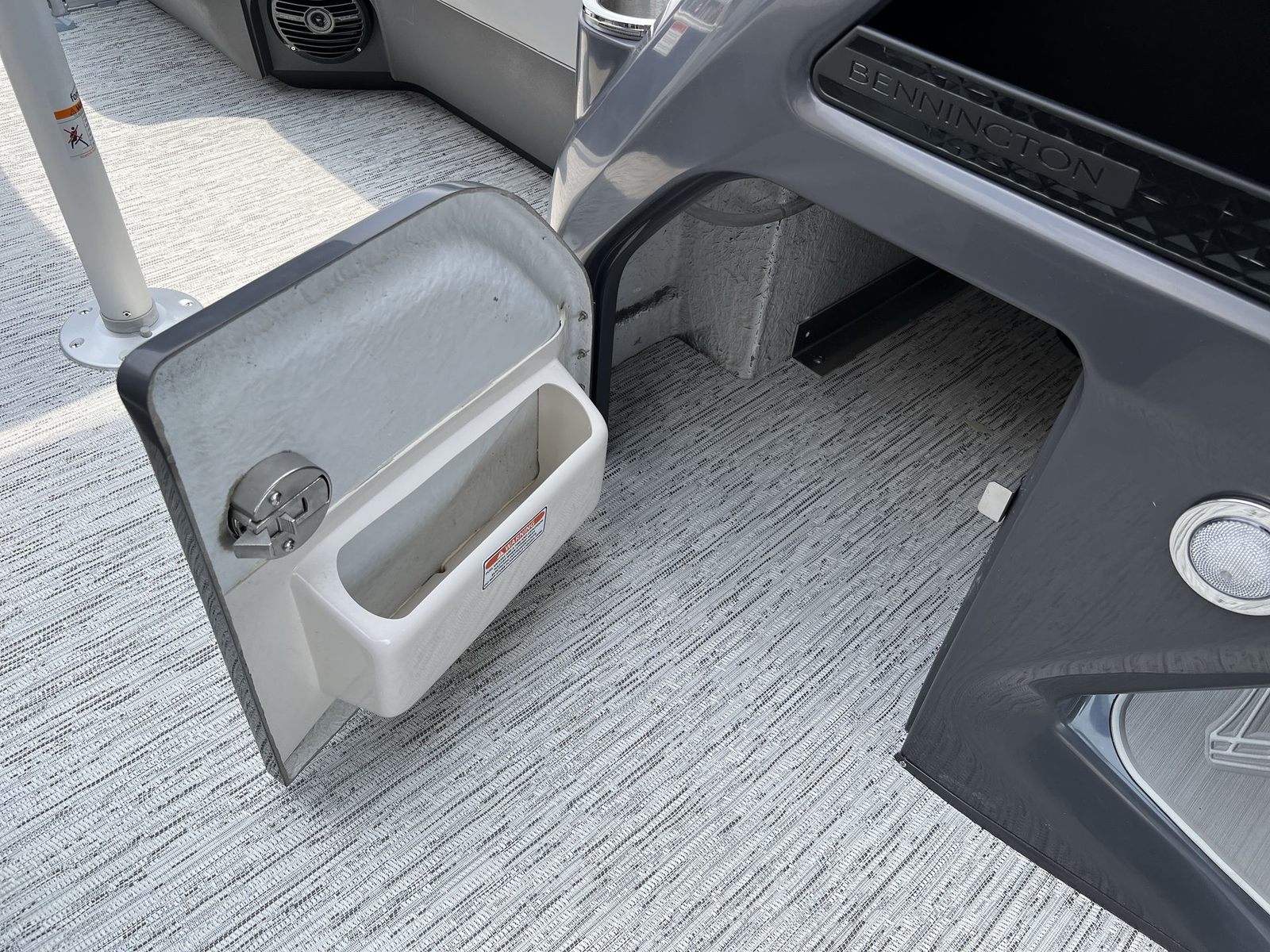 This pontoon boat is packed with premium features designed for both comfort and convenience. The non-elevated Mythos console offers intuitive access to controls and instrumentation, allowing you to navigate with confidence. The interior accent in Ocean Blue Simtex adds a touch of sophistication, while the base furniture from the M Series ensures plush seating for all passengers. The canvas in Ocean Blue Tweed not only enhances the boat’s aesthetic but also provides shade and protection from the elements.The Zebrawood Matte Slate finish adds a refined touch to the interior, complementing the smooth metallic silver accents and ocean blue panels for a cohesive, upscale look. The Benny Quick Fender Latch Kit in silver (quantity 4) makes it easy to secure fenders quickly, streamlining docking and protecting your investment. Every detail of the Bennington 22 MFB SPS pontoon boat for sale is thoughtfully designed to maximize comfort, style, and usability.
