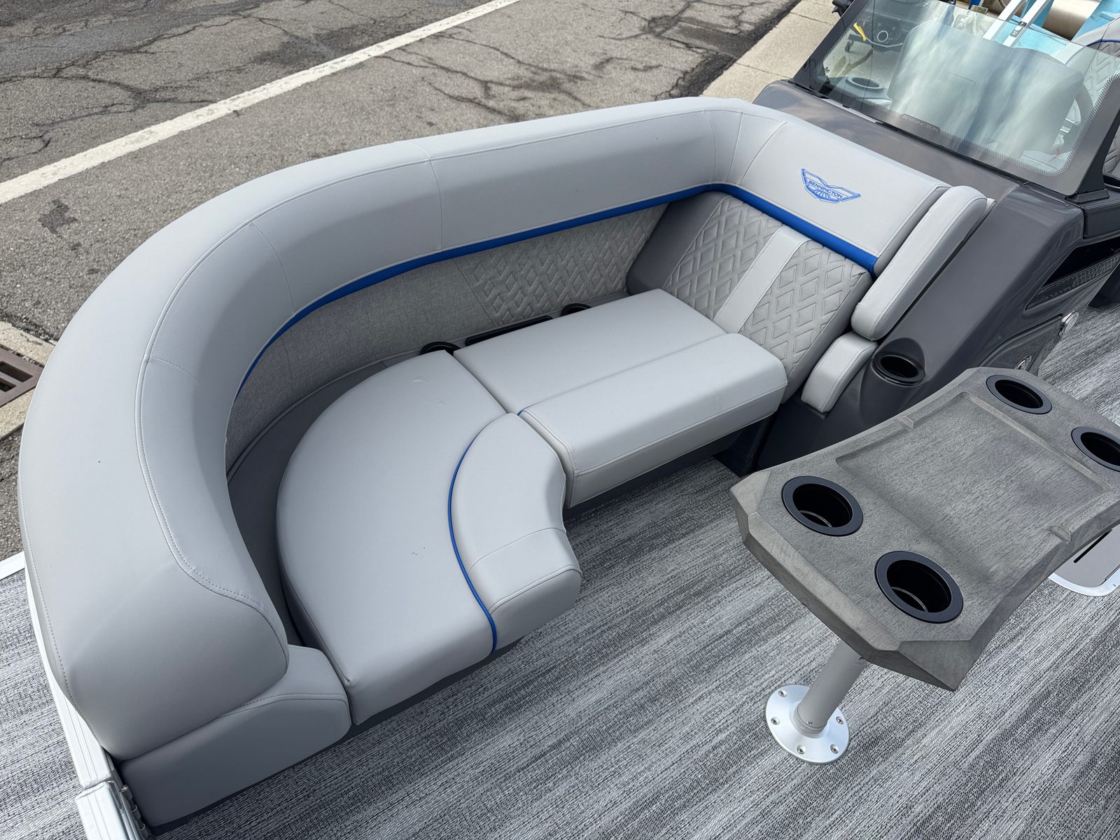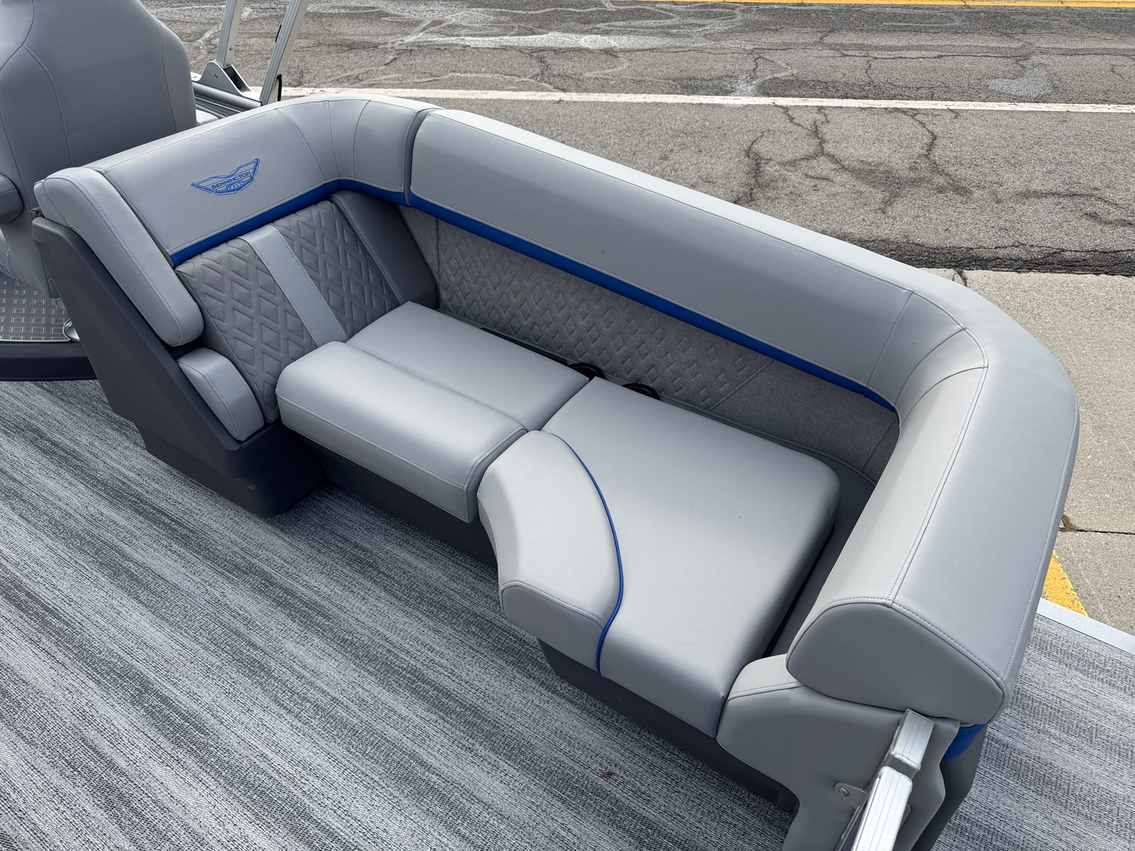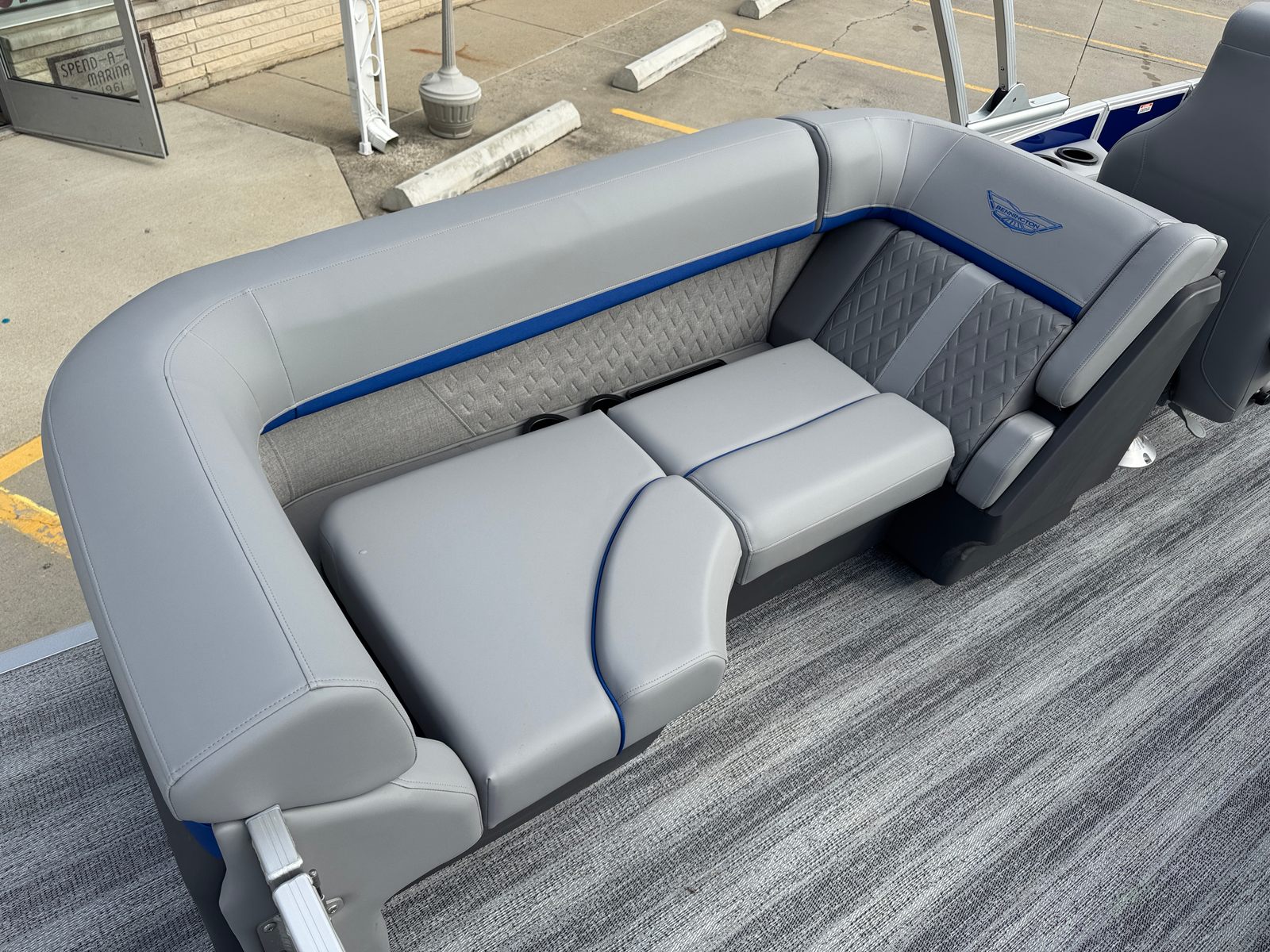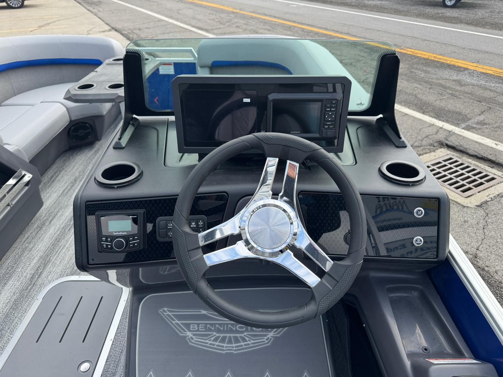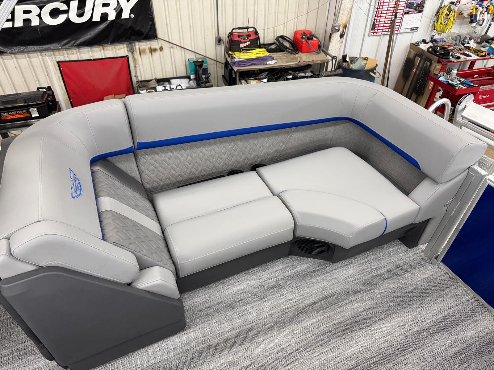 The 2026 Bennington 22 MFB SPS pontoon stands out with its impressive 24.25-foot length, offering ample space for relaxation and socializing. As a new Bennington boat for sale, this model showcases the brand’s commitment to craftsmanship, comfort, and cutting-edge design. The sleek exterior features a Smooth Metallic Luminous Blue panel with Smooth Metallic White accents, complemented by a sophisticated Shoreline Grey finish. Inside, the Luminous Blue Simtex interior accent adds a touch of elegance and modern flair, creating a welcoming atmosphere for every adventure.