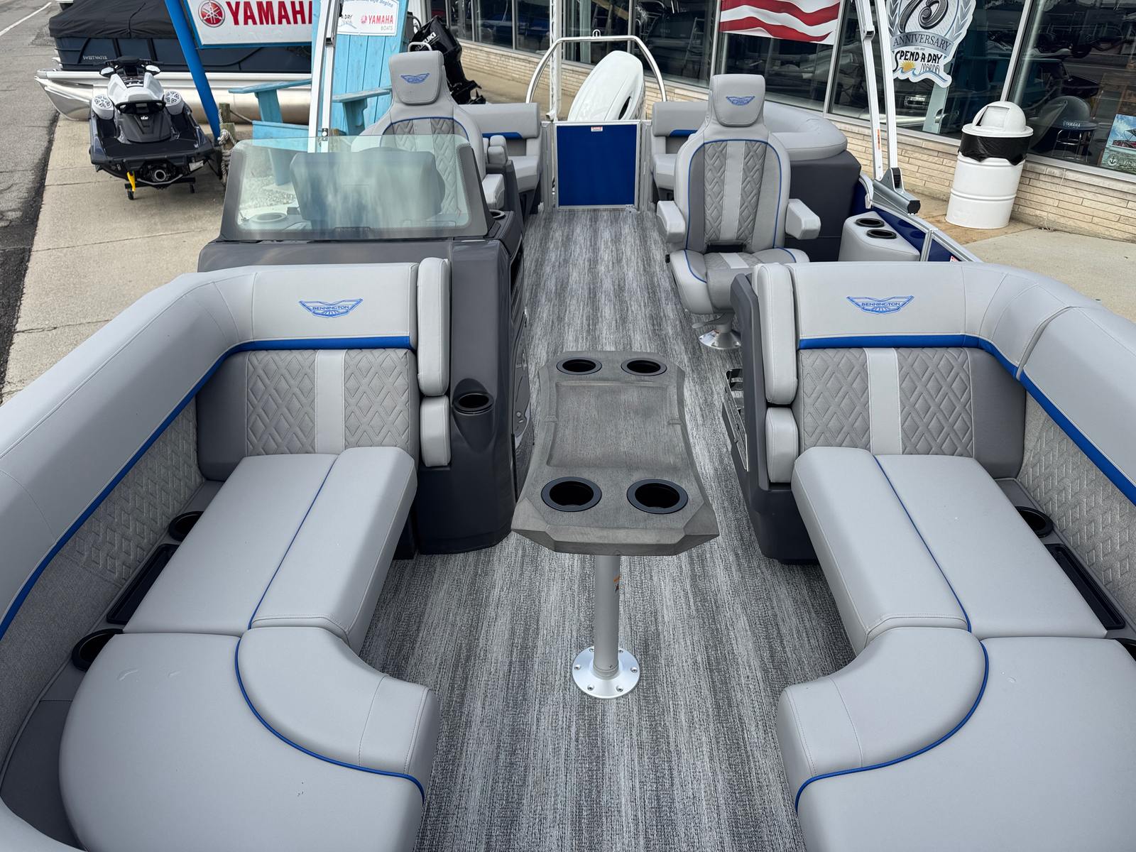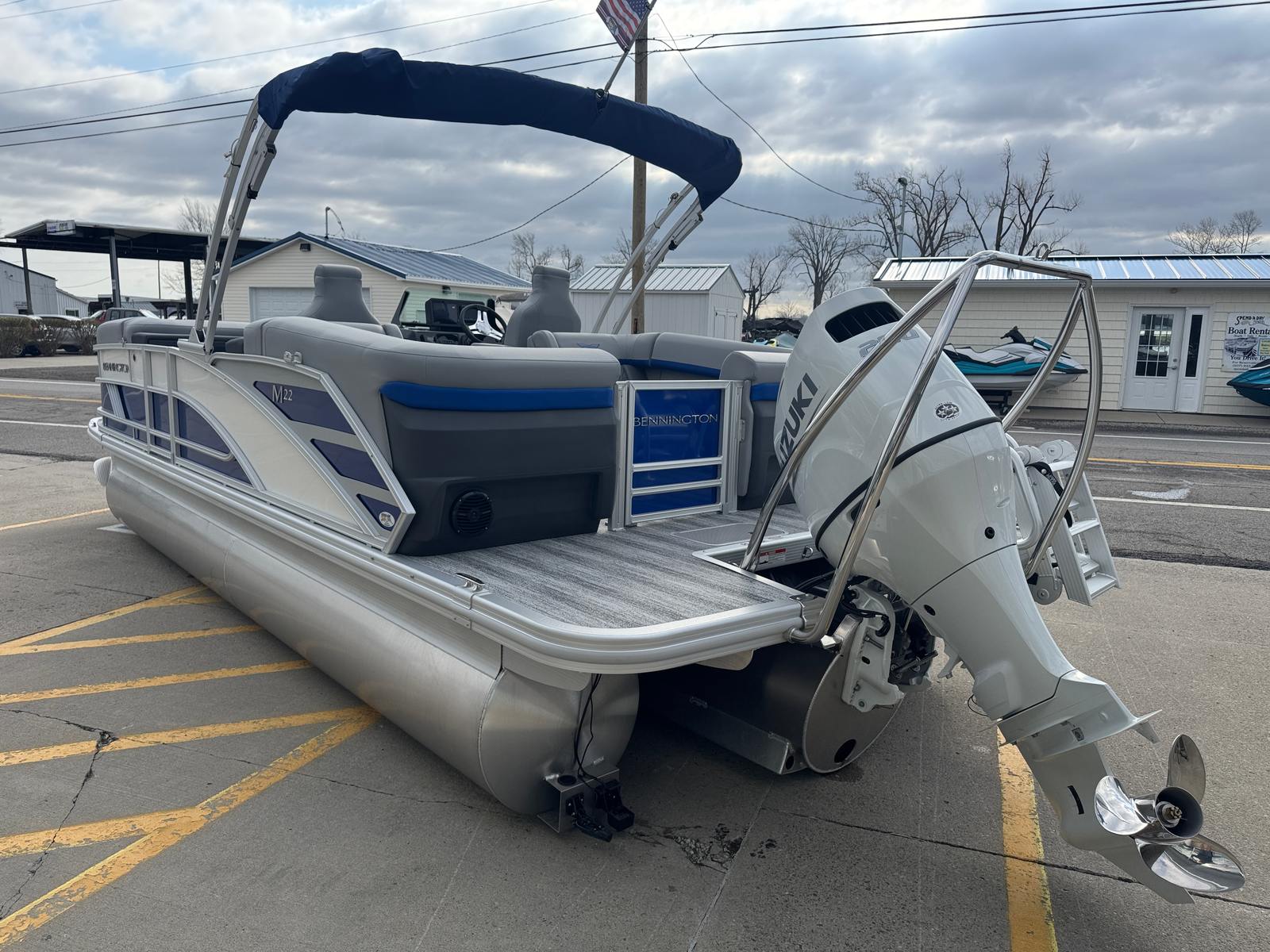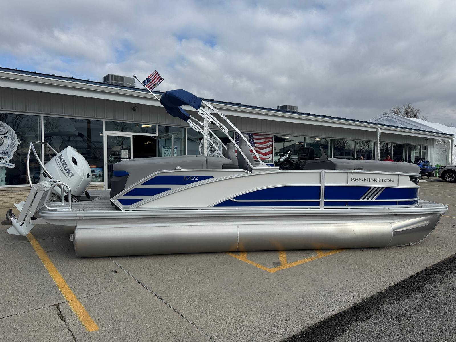 The 2026 Bennington 22 MFB SPS pontoon is a remarkable blend of style, performance, and versatility. With its striking Smooth Metallic Luminous Blue and White exterior, luxurious Luminous Blue Simtex interior, and advanced features like the Suzuki DF200ATXW5 engine, Power Hydraulic Assist steering, and Electric Power Top Bimini, this new Bennington boat for sale is designed to exceed your expectations. The elevated console, removable flag pole, and spacious layout ensure that every outing is comfortable, convenient, and memorable.If you are ready to elevate your boating experience and enjoy the ultimate in comfort, performance, and style, the Bennington 22 MFB SPS is the perfect choice. Don’t miss your chance to own this exceptional pontoon boat – contact your local dealer today to learn more and schedule a viewing. Your next adventure awaits on the water!