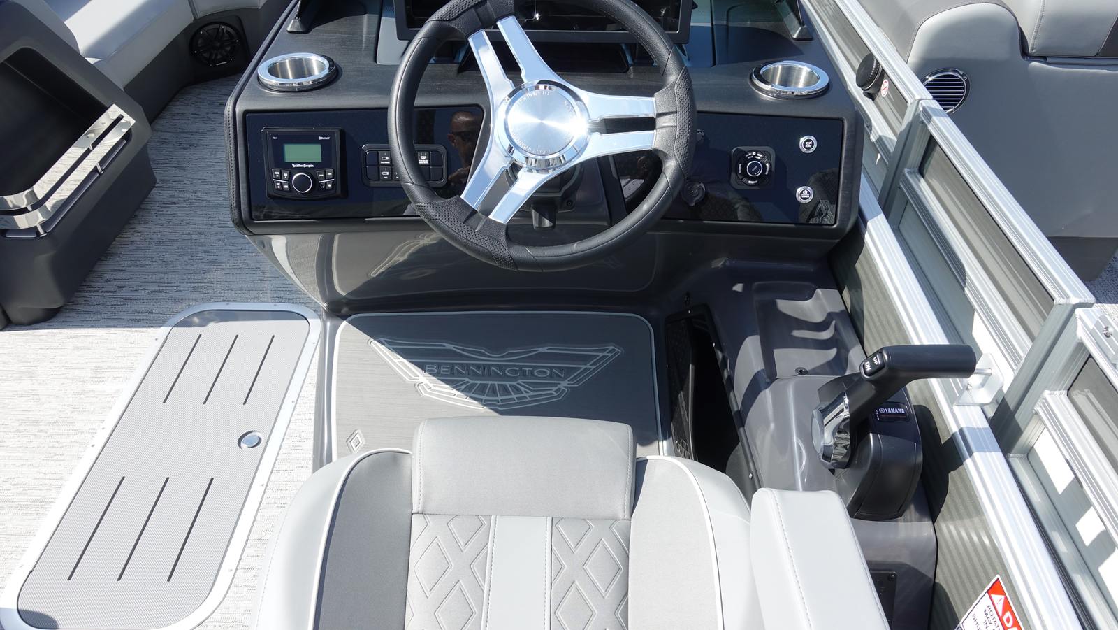 Powering the Bennington 22 MSB SPS is a single Yamaha F150XC engine, delivering an impressive 150 horsepower. This engine is celebrated for its reliability, smooth operation, and fuel efficiency, ensuring you get the most out of every outing. The Yamaha Mechanical Pre-Rig - Delete Hydraulic Cylinder and Steering - Power Hydraulic Assist work together to provide responsive handling and effortless maneuverability, even in challenging conditions. The Rough Water Package further enhances stability and control, allowing you to navigate choppy waters with confidence and ease. Whether you’re cruising at a leisurely pace or picking up speed for water sports, this Bennington boat for sale offers a dynamic and enjoyable ride.