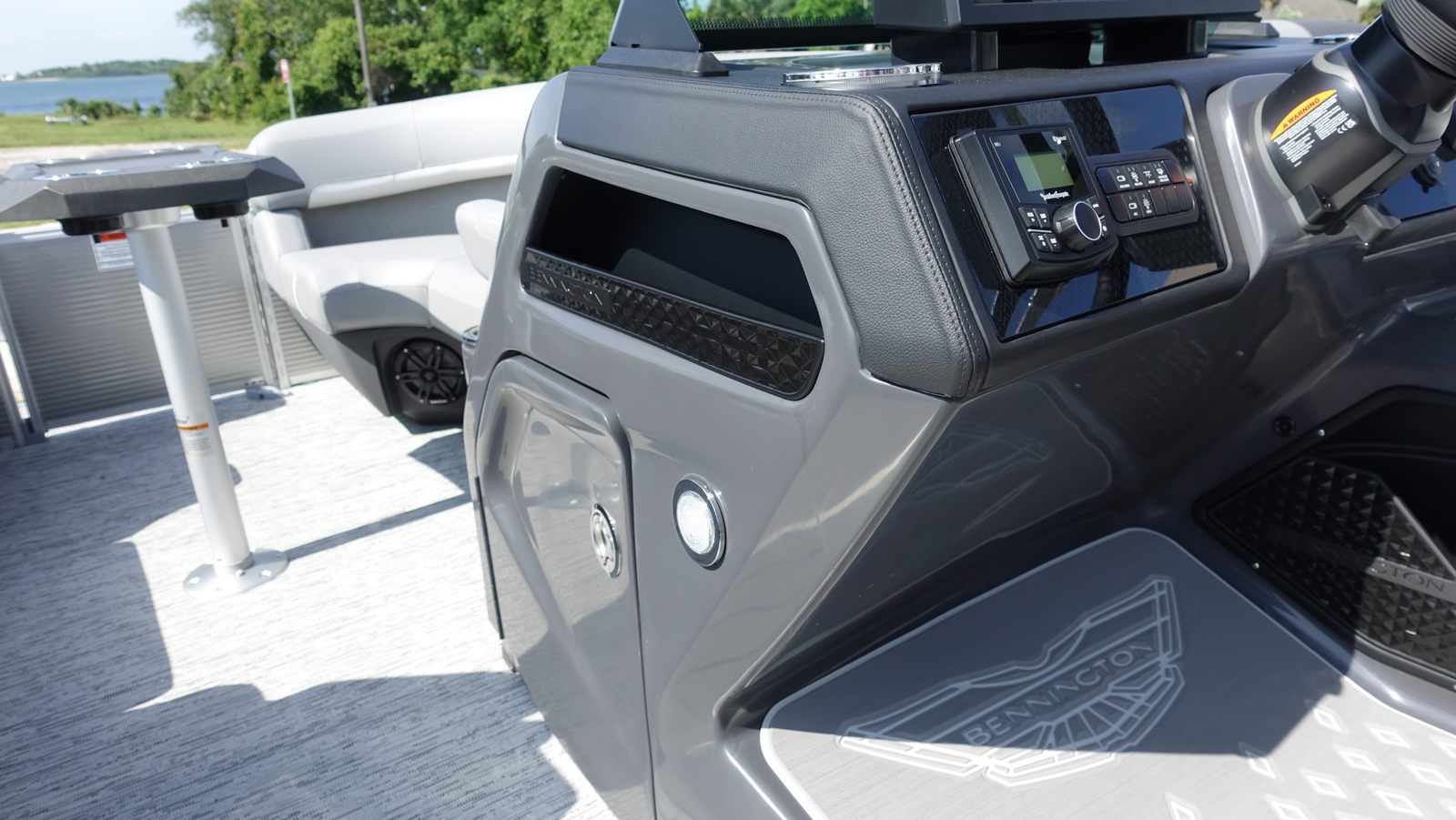 Step aboard and discover a world of premium features designed to maximize comfort and entertainment. The dual battery switch with fuse ensures reliable power management, keeping your electronics running smoothly throughout your adventures. The RGB Control M Series, RGB speakers, and toekick lights (1-37" and 1-41") create a customizable ambiance, allowing you to set the mood for any occasion, from lively gatherings to tranquil evenings on the water.Music lovers will appreciate the Rockford Fosgate PMX-1R Head Unit Remote with Sirius Satellite Radio, offering endless entertainment options and crystal-clear sound. The six Rockford Fosgate M1 lighted speakers deliver immersive audio, transforming your pontoon into a floating concert venue. These advanced features not only enhance your enjoyment but also set the Bennington 22 MSB SPS apart from other pontoon boats for sale.