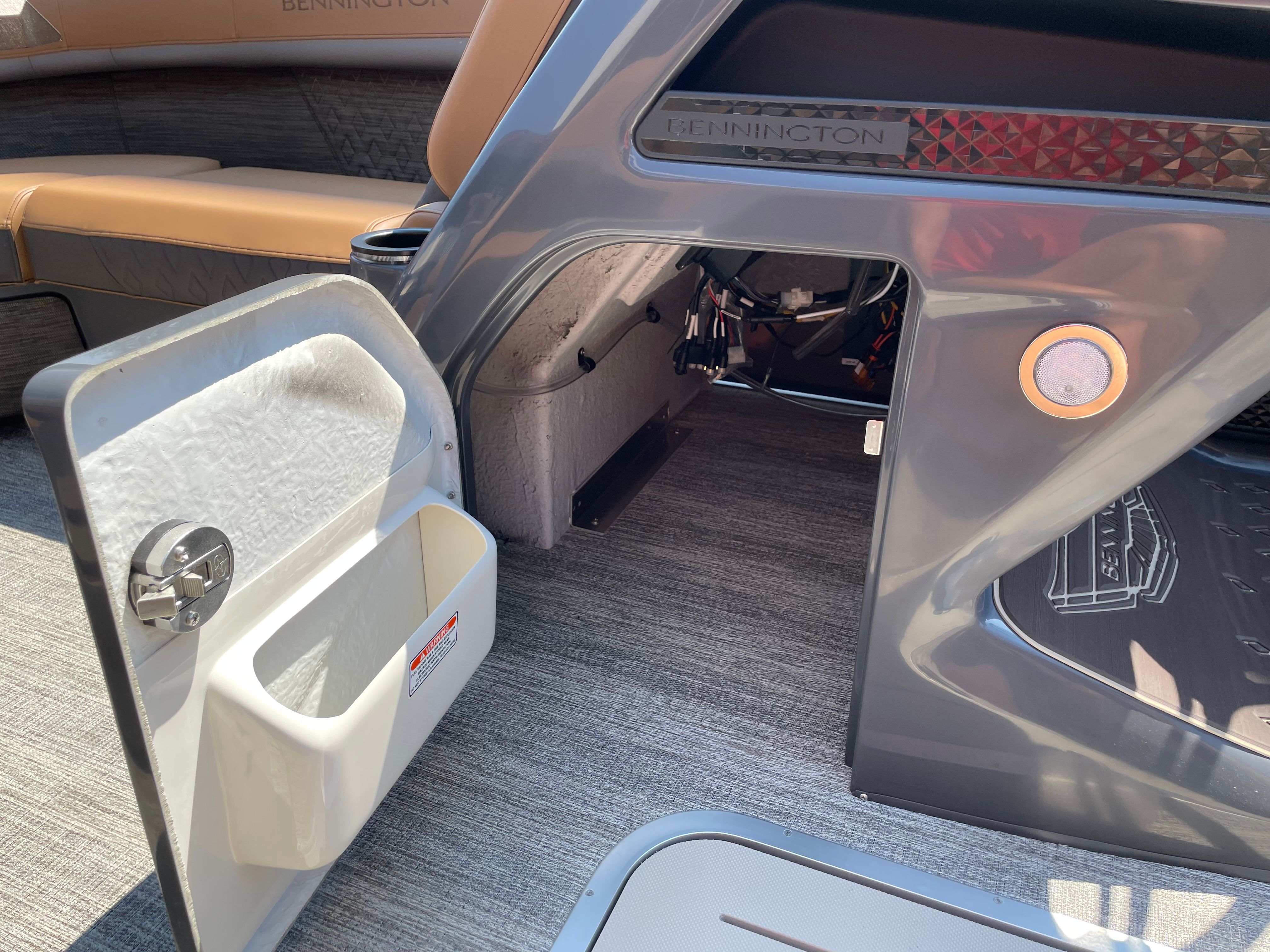 Practicality meets luxury in the Bennington 22 MSB SPS. The dual battery system ensures reliable power for all your onboard electronics and accessories, so you can focus on having fun without interruption. The efficient engine and thoughtful design contribute to excellent fuel economy, allowing you to spend more time on the water and less time refueling.Docking and maneuvering are made easier thanks to the responsive handling and well-planned layout. The toekick lights provide added visibility during low-light conditions, enhancing safety for you and your guests. With ample space for storage, you can bring along all your essentials for a full day of adventure, from water toys to picnic supplies.