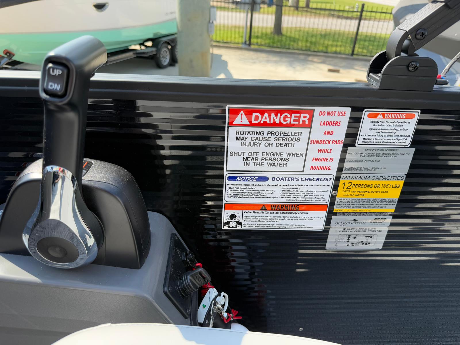 The Bennington 22 SSB SPS is designed with practicality in mind, making boat ownership easy and enjoyable. The dual battery switch with fuse provides peace of mind, ensuring that you always have reliable power for your electronics and accessories. The Benny Quick Fender Latch Kit simplifies the process of securing your boat at the dock, saving you time and effort.The pontoon’s nearly 23-foot length strikes the perfect balance between spaciousness and maneuverability, making it easy to navigate through marinas, coves, and tight docking spaces. The efficient Yamaha VF175XB engine not only delivers impressive performance but also helps optimize fuel consumption, allowing you to spend more time on the water and less time at the pump.