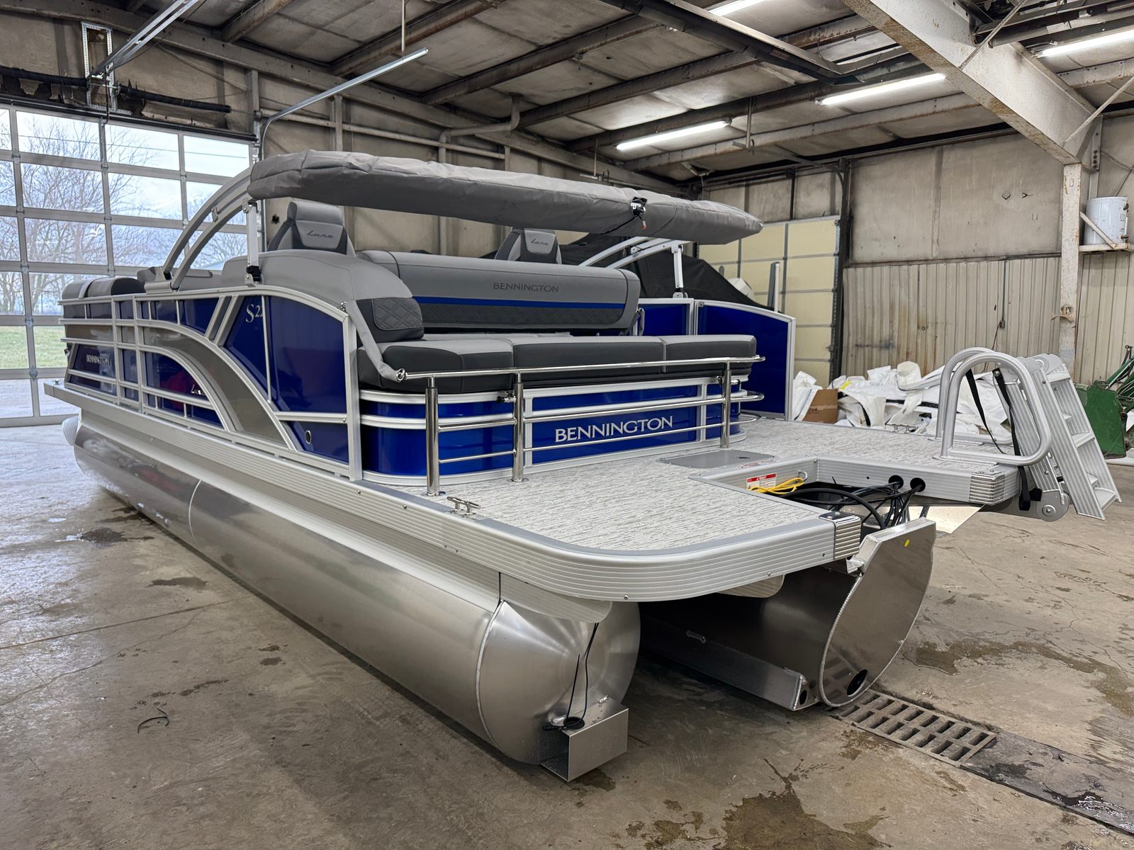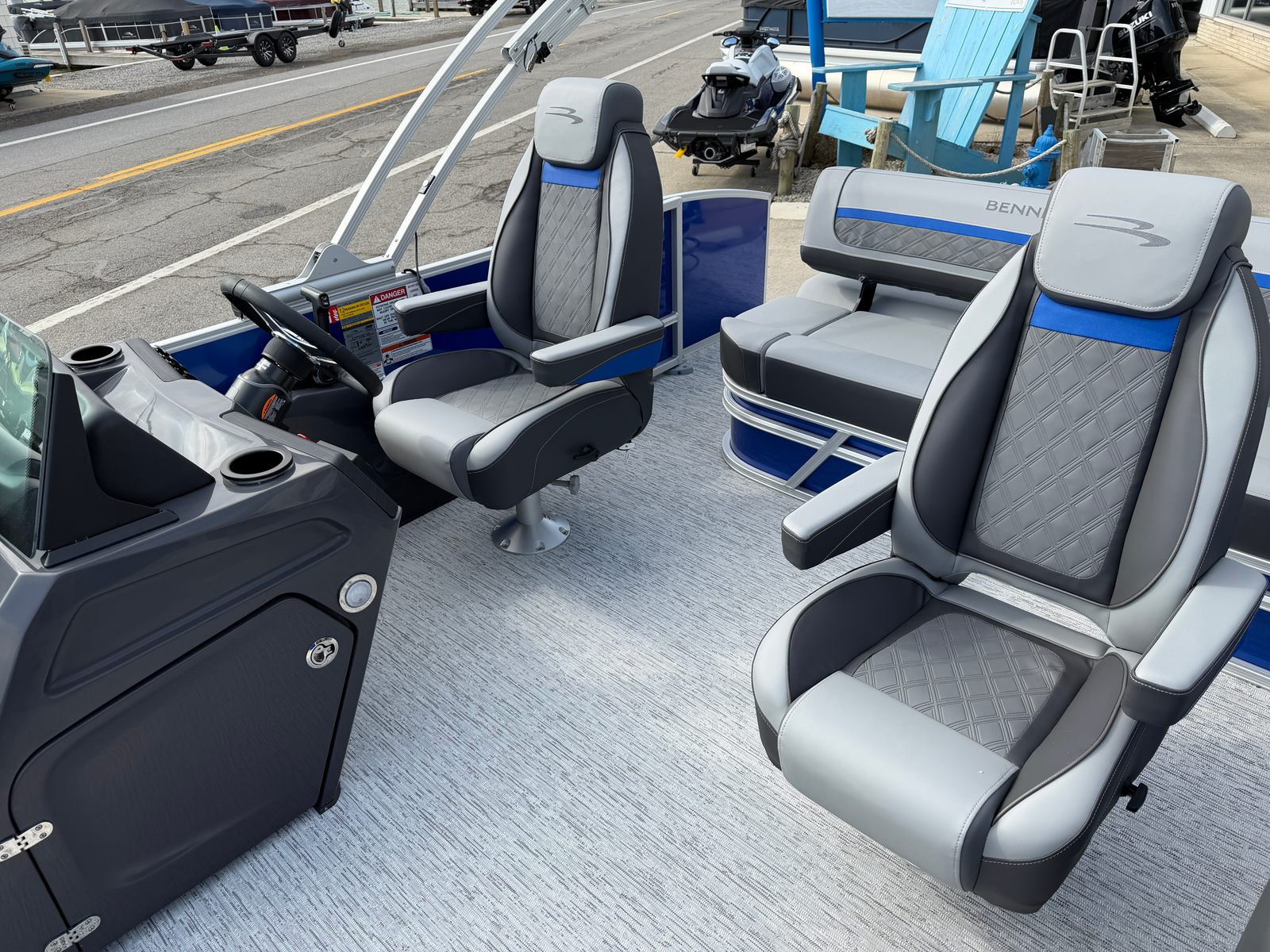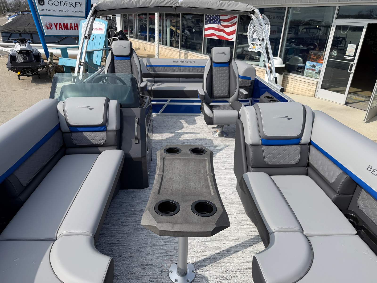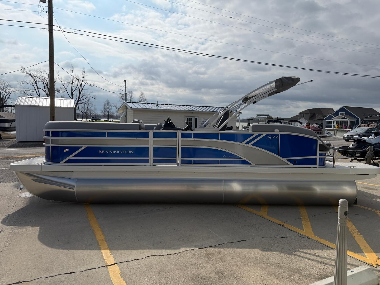 Owning the Bennington 22 SSB SPS pontoon means embracing a lifestyle of fun, relaxation, and adventure. The spacious layout provides plenty of room for family and friends to gather, whether you’re hosting a sunset cruise or enjoying a day of swimming and sunbathing. The plush seating and stylish interior accents create a welcoming atmosphere, while the extended aft deck offers additional space for activities and easy access to the water.The ski tow bar opens up a world of recreational possibilities, from water skiing to tubing, ensuring everyone onboard can join in the excitement. The smooth metallic finishes and luminous blue accents not only look stunning but also reflect Bennington’s commitment to quality and innovation. With this pontoon boat, every outing becomes an opportunity to create lasting memories with those you care about most.