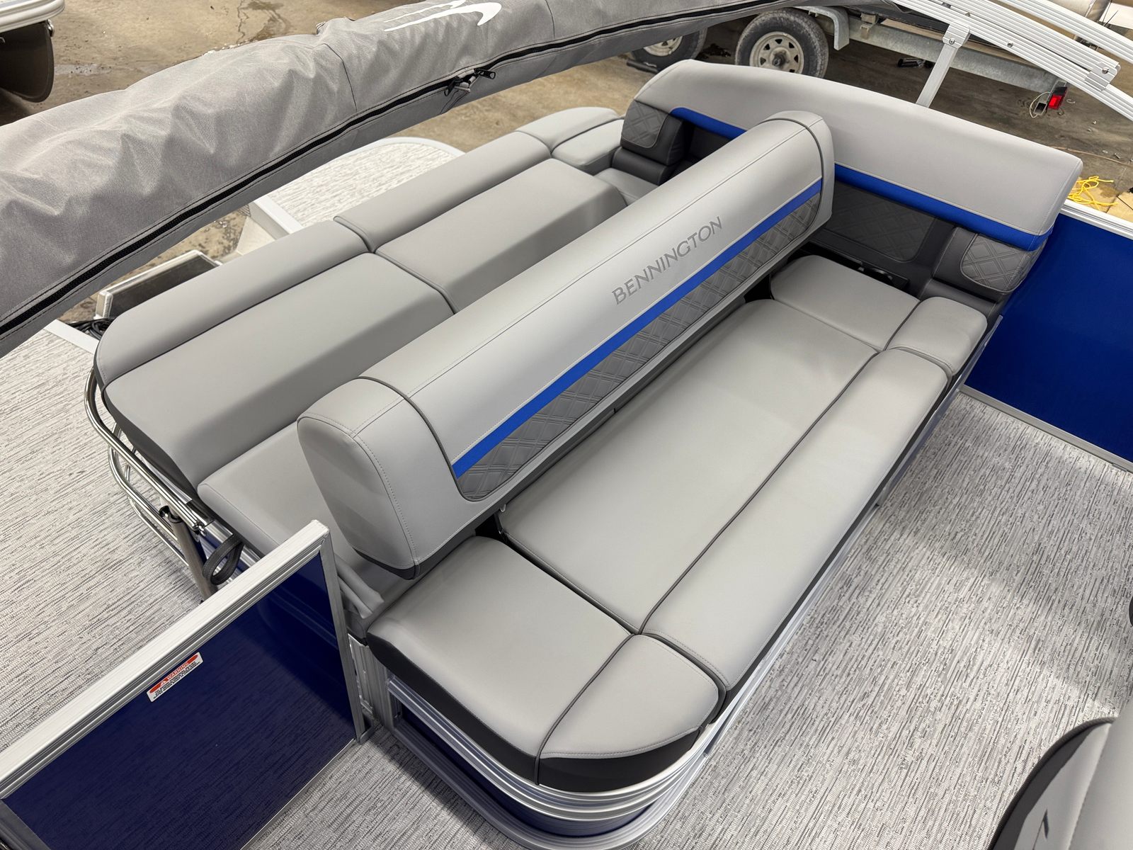This Bennington pontoon boat for sale is packed with premium features designed to enhance your comfort and enjoyment. The accent and canvas in smooth metallic silver create a sophisticated and modern look, complemented by the ironwood dash accent for a touch of elegance. The extended aft deck expands your usable space, making it perfect for lounging, socializing, or preparing for water sports. The ski tow bar adds versatility, allowing you to enjoy thrilling activities like tubing or wakeboarding with ease.The panel in smooth metallic luminous blue and interior accent in luminous blue Simtex infuse the boat with vibrant color and style, ensuring you stand out on the water. Every detail has been thoughtfully designed to maximize both aesthetics and functionality, making this Bennington boat for sale a true showstopper.