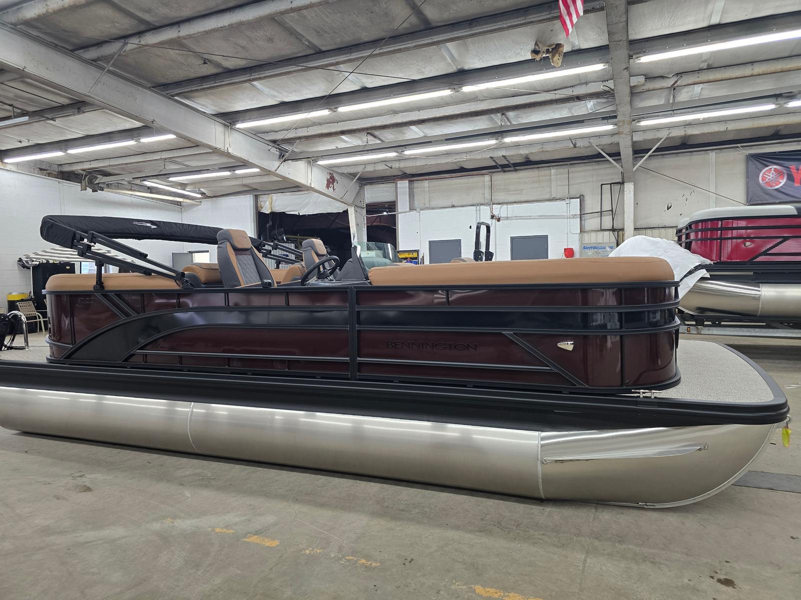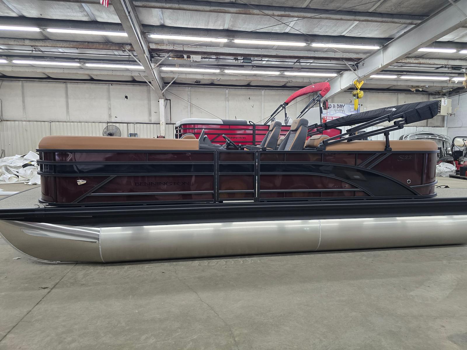 Step aboard the 2026 Bennington 22 SSR SPS and experience the perfect harmony of craftsmanship and comfort. Measuring an impressive 22.92 feet in length, this pontoon offers ample space for relaxation, entertainment, and recreation. The sleek exterior is highlighted by the Smooth Sunset Red paneling, complemented by Midnight Black canvas accents and Blackout Logos for a modern, eye-catching look. The Ironwood Dash Accent and Interior Accent in Sunset Red Simtex add a touch of sophistication to the interior, creating an inviting atmosphere for every outing.