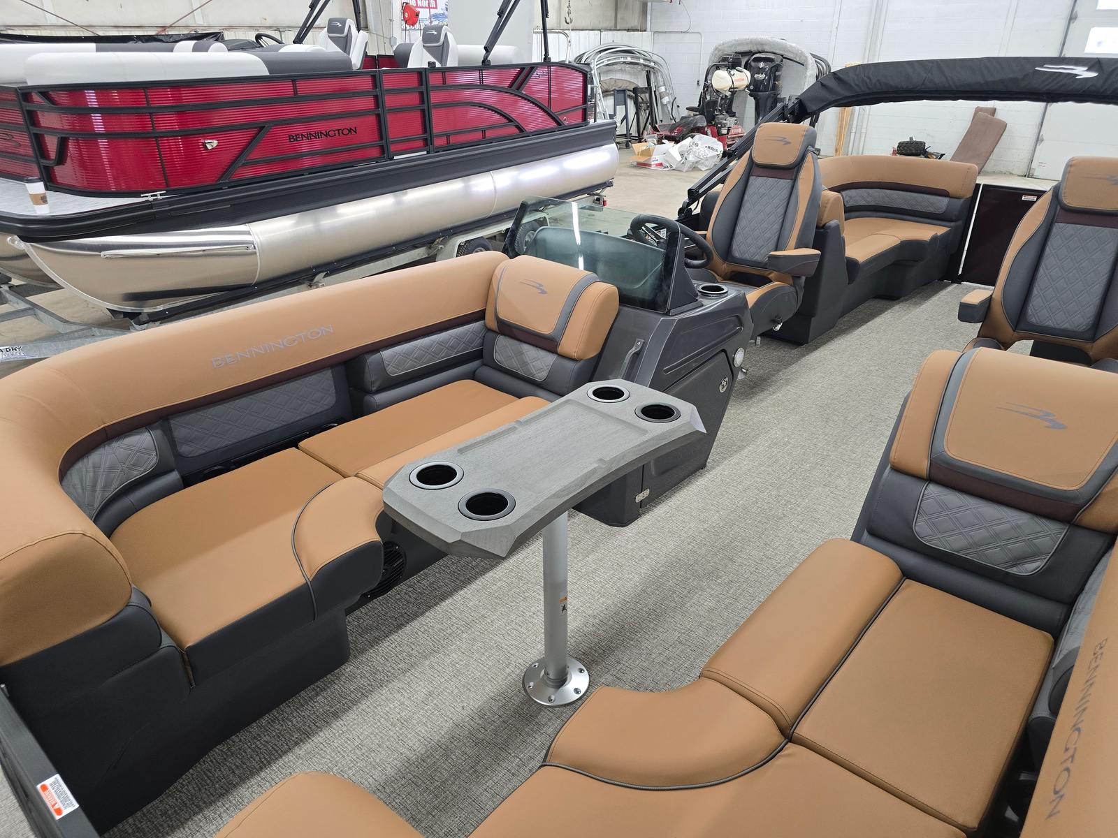 The 2026 Bennington 22 SSR SPS is loaded with special features designed to enhance your boating experience. The Blackout Luxe Package elevates the boat’s aesthetic appeal, while the Ski Tow Bar opens up a world of water sports possibilities. Whether you’re towing a wakeboard, tube, or water skis, this pontoon is ready for action. The Ironwood Dash Accent and Sunset Red Simtex interior accents create a warm, inviting environment, perfect for relaxing with friends and family. The Midnight Black canvas and Smooth Sunset Red panels ensure your boat stands out from the crowd, while the Blackout Logos add a touch of modern elegance.