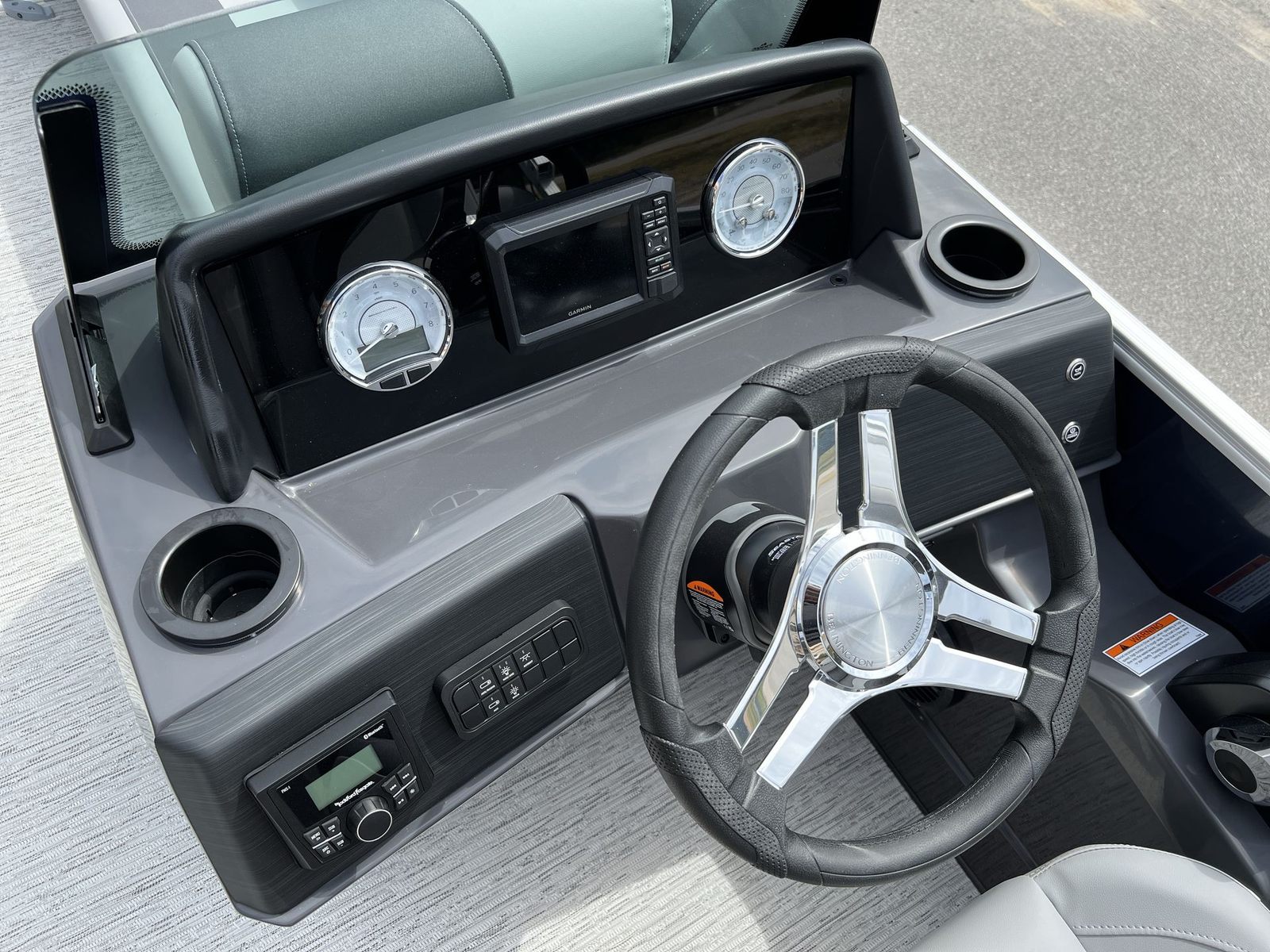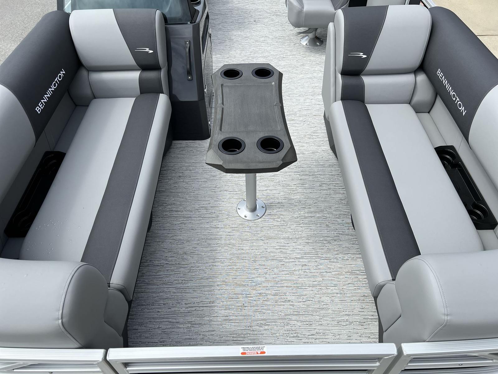 Step aboard the Bennington 22 SSR SPS and discover a world of comfort and innovation. The Serene Soft Touch Vinyl with Simtex accents provides a plush, inviting seating experience, while the Shadow Gray color scheme and Ironwood dash accent create a sophisticated atmosphere. The extended aft deck, finished with standard trim, offers additional space for relaxation and activities, complemented by the ski tow bar for those who love water sports. Dimensional brusher silver logos add a touch of elegance, and the midnight blue canvas ensures protection from the elements while enhancing the boat’s visual appeal. The smooth, no-accent design keeps the look clean and modern, making this pontoon boat for sale a true standout on any waterway.