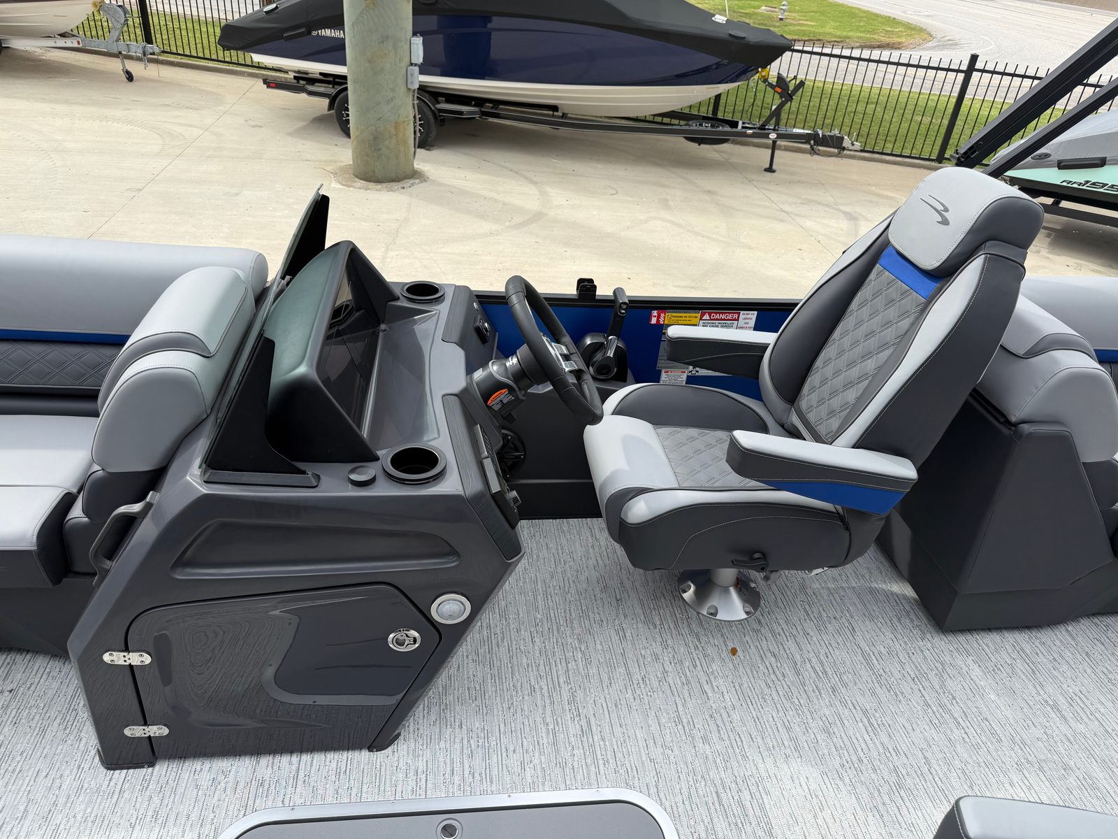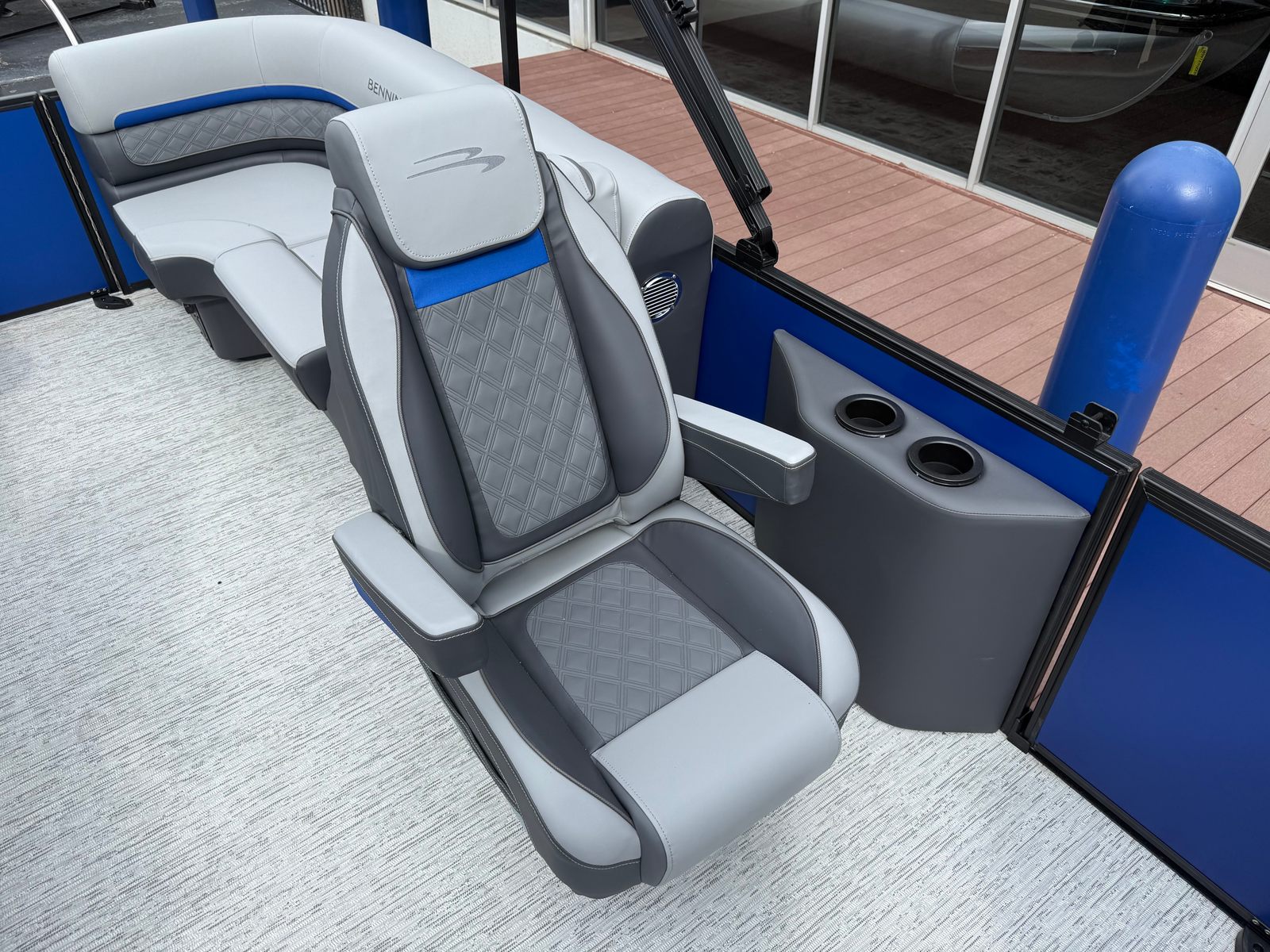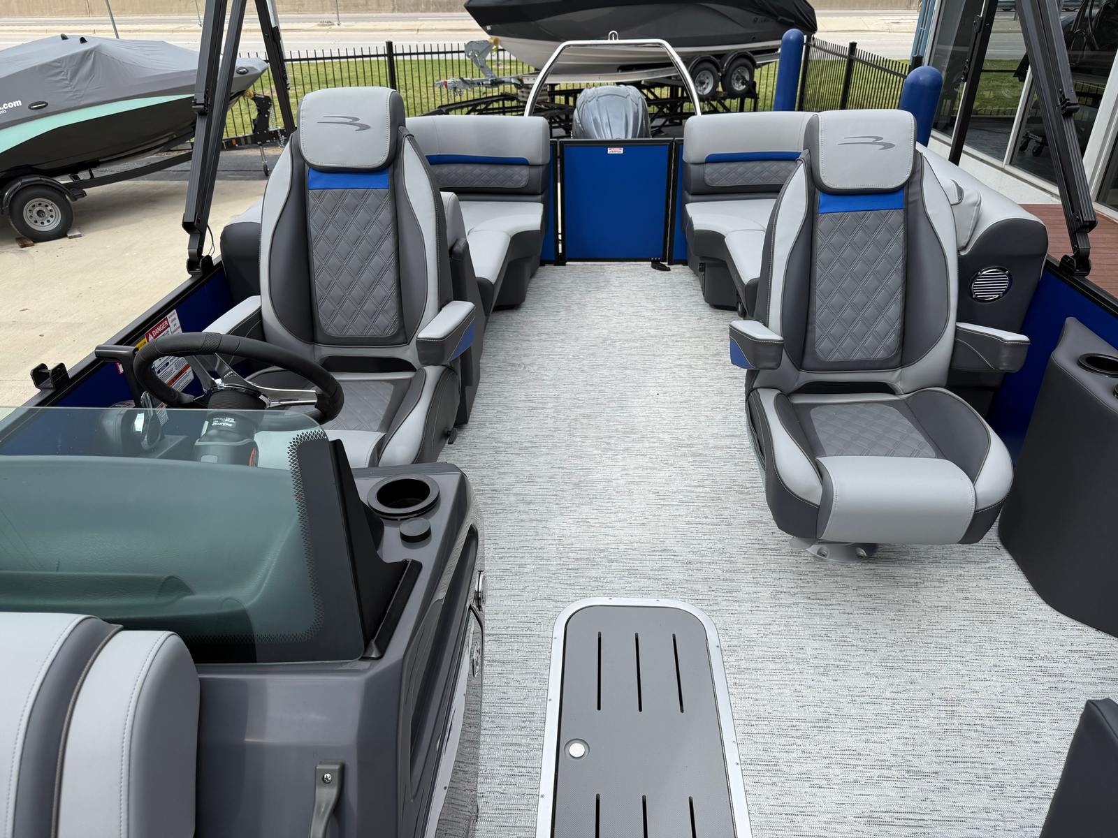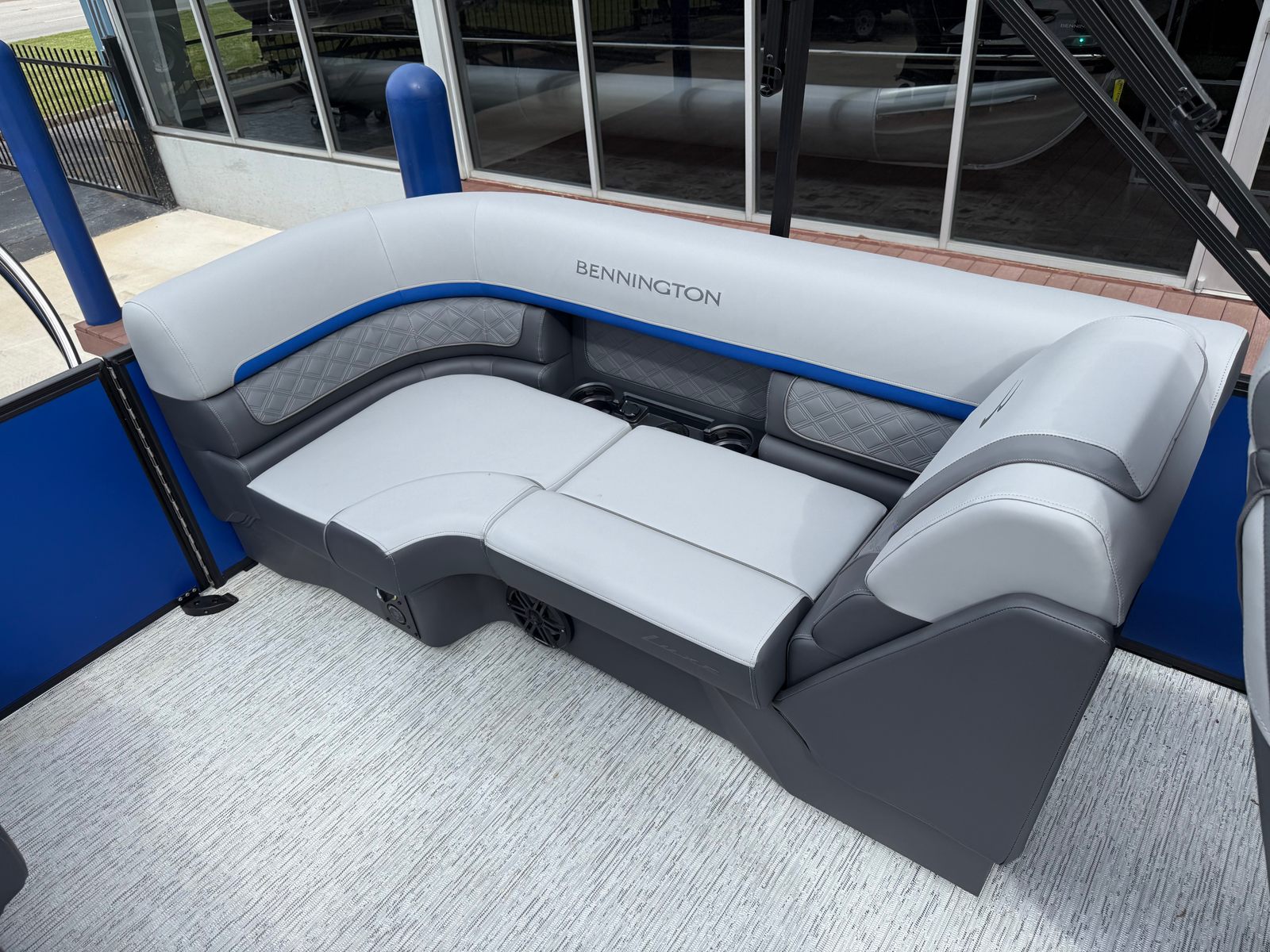 The Bennington 22 SSR SPS is packed with features that elevate your boating experience. Its spacious deck layout offers ample room for lounging, socializing, and entertaining. The plush seating is designed for maximum comfort, allowing you and your guests to relax in style. High-quality materials and finishes are used throughout, reflecting Bennington’s commitment to luxury and durability.The pontoon’s thoughtful design includes easy access points for boarding and disembarking, as well as strategically placed storage compartments to keep your gear organized and out of the way. The helm is equipped with intuitive controls, ensuring the captain has everything needed for a smooth and enjoyable ride. Every detail, from the railings to the flooring, is crafted to enhance your time on the water.