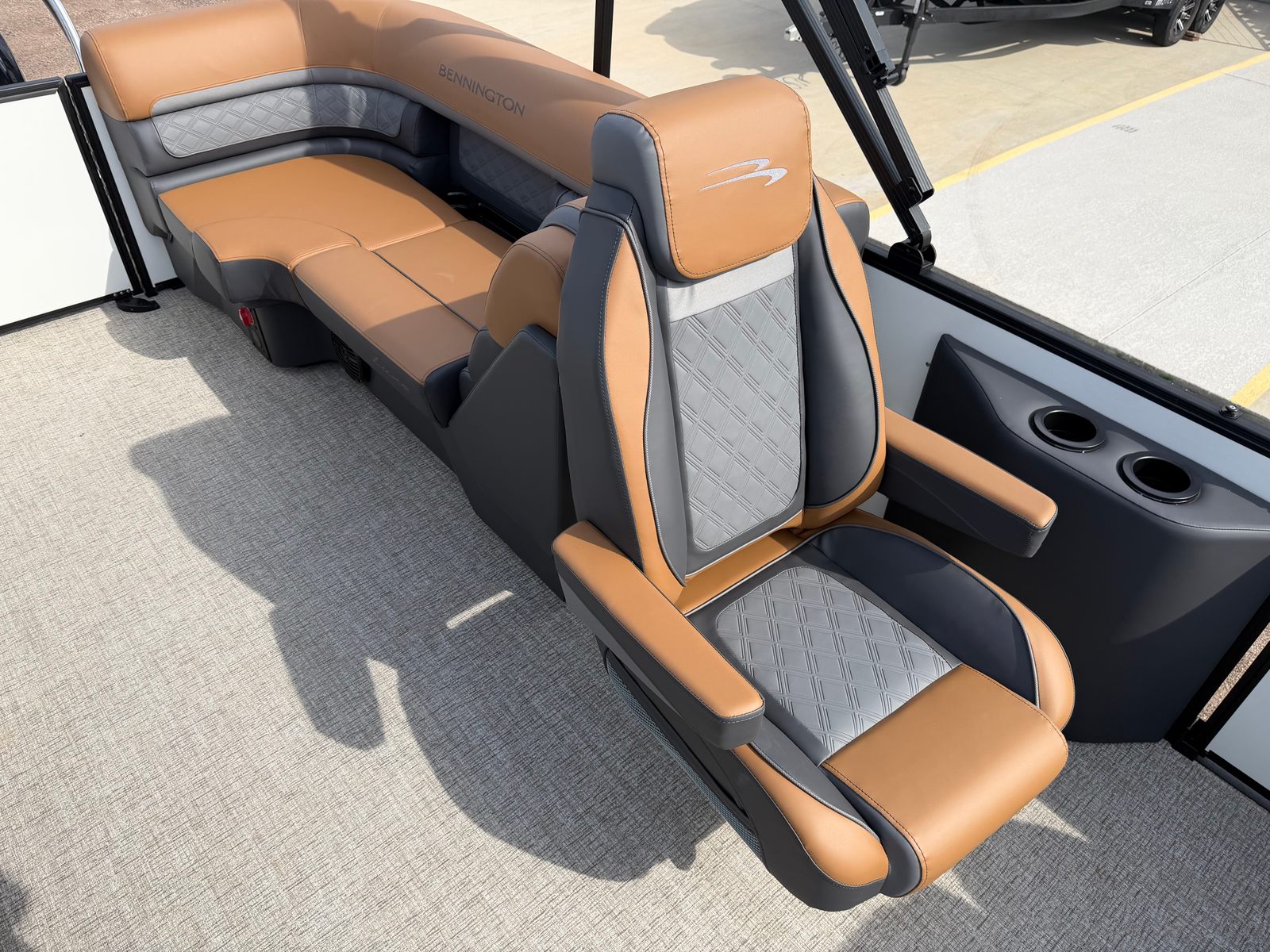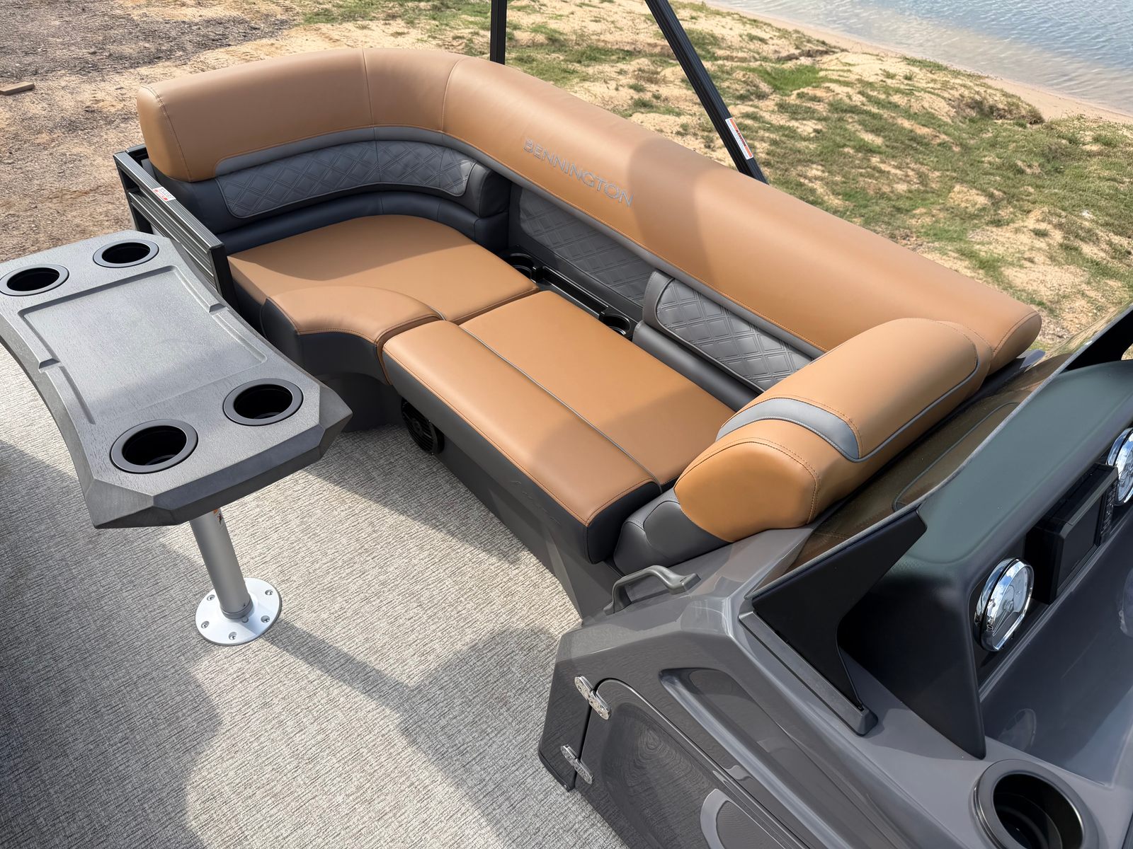 The 2026 Bennington 22 SSR SPS is loaded with features designed to enhance your time on the water. The Benny Quick Fender Latch Kit in black allows for fast and secure fender adjustments, making docking and undocking a breeze. The Ironwood Dash Accent adds a touch of elegance to the helm, while the Blackout Luxe Package elevates the boat’s aesthetic with sophisticated, modern styling. The dual battery switch with fuse ensures reliable power management, so you can enjoy your electronics and accessories without worry. The ski tow bar opens up a world of watersport possibilities, from tubing to wakeboarding, making this pontoon as versatile as it is stylish.