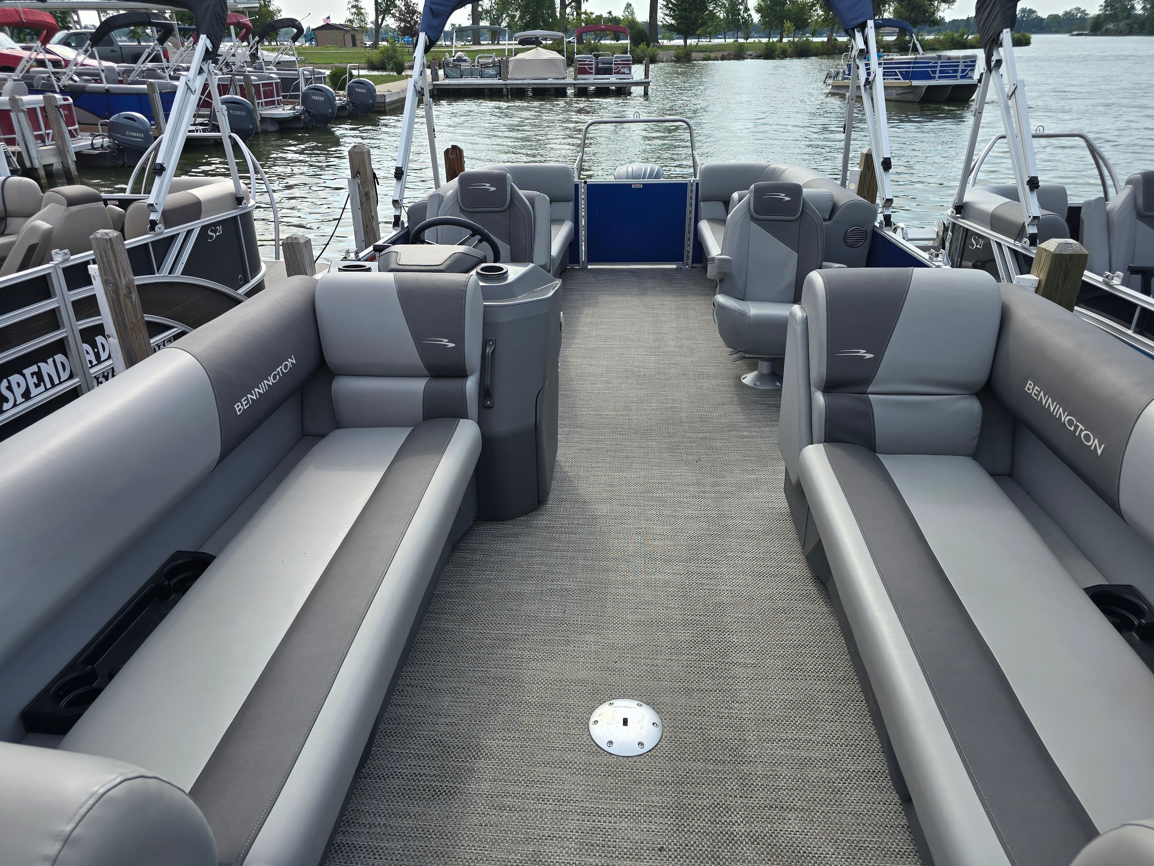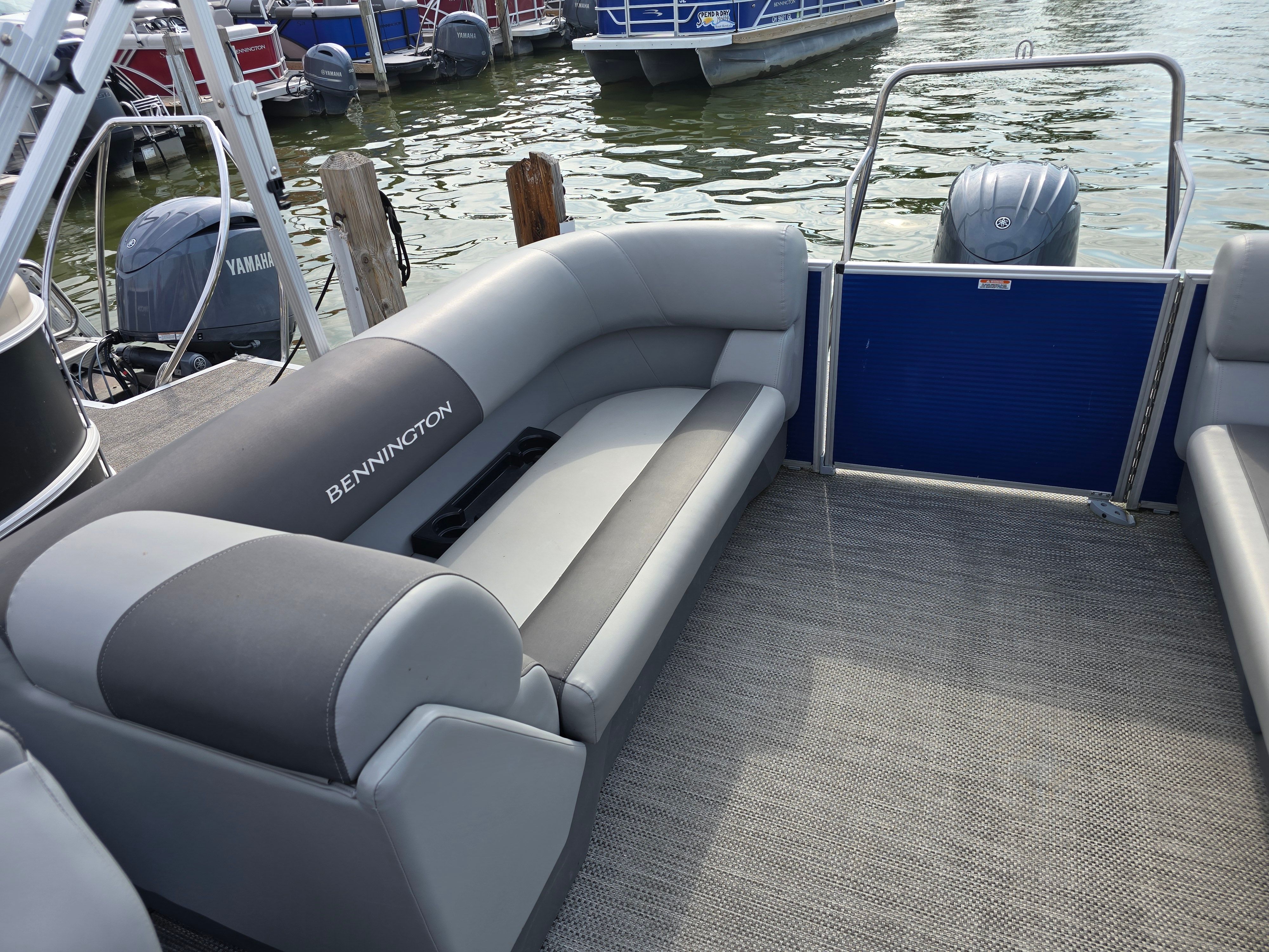 Practicality is at the heart of the Bennington 22 Svsr SPS. The spacious layout allows for easy movement and ample storage, making it simple to stow gear, coolers, and personal items for a day on the water. Docking is a breeze thanks to the pontoon’s stable design and manageable length, ensuring stress-free arrivals and departures at marinas or lakeside docks. The efficient Yamaha engine helps keep fuel costs in check, so you can spend more time enjoying the water and less time worrying about refueling. The durable flooring and upholstery are designed for easy maintenance, allowing you to keep your boat looking pristine with minimal effort. Whether you’re planning a quick getaway or an all-day adventure, this Bennington pontoon boat for sale is built to make ownership enjoyable and hassle-free.