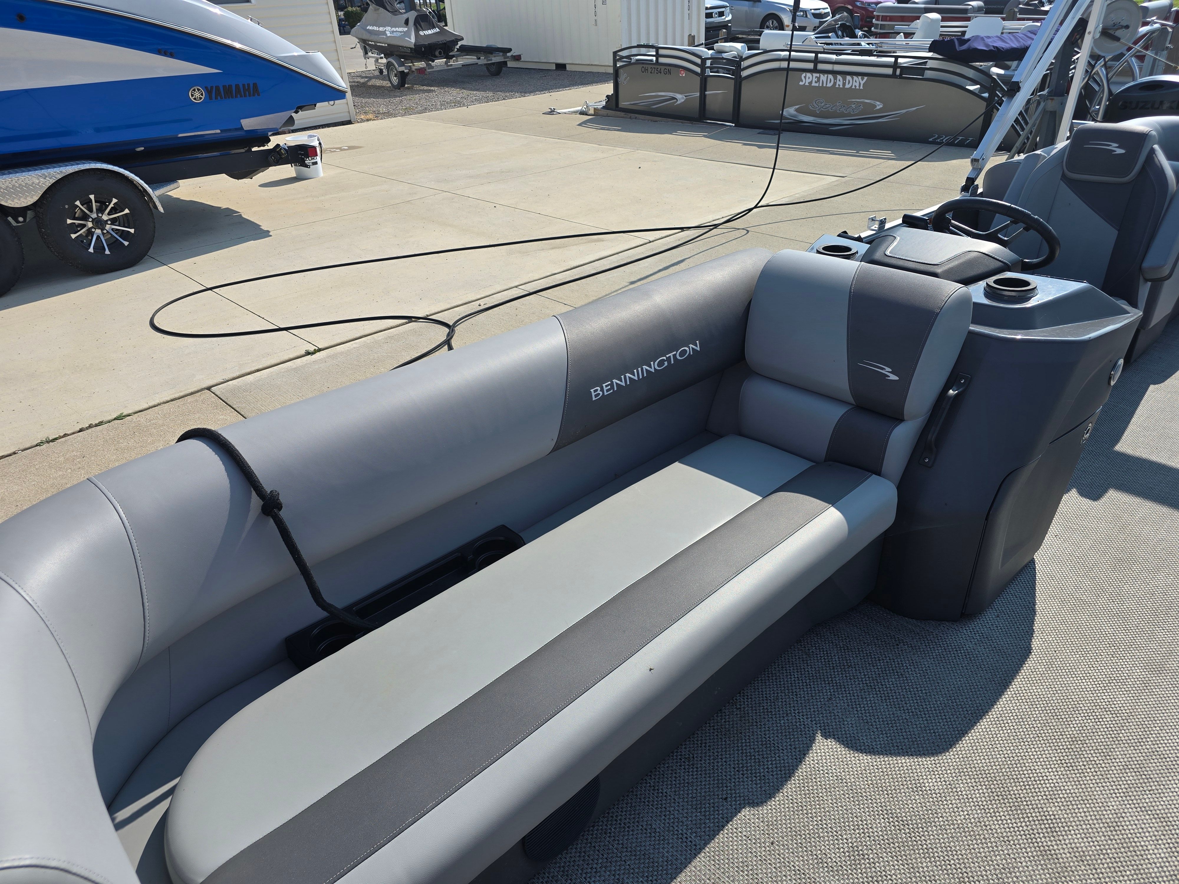 In addition to its recreational appeal, the Bennington 22 Svsr SPS is packed with practical features that make ownership a breeze. The spacious layout provides ample storage for gear, snacks, and personal items, keeping the deck clutter-free and organized. The durable Seagrass Silver flooring is not only attractive but also easy to clean, ensuring that your boat stays looking its best with minimal effort.Docking and maneuvering are made simple thanks to the responsive handling and reliable Yamaha F150XC engine. The pontoon's size strikes the perfect balance between spaciousness and ease of operation, making it suitable for both seasoned boaters and those new to the water. Fuel efficiency is another key benefit, allowing you to spend more time enjoying the lake and less time at the fuel dock.