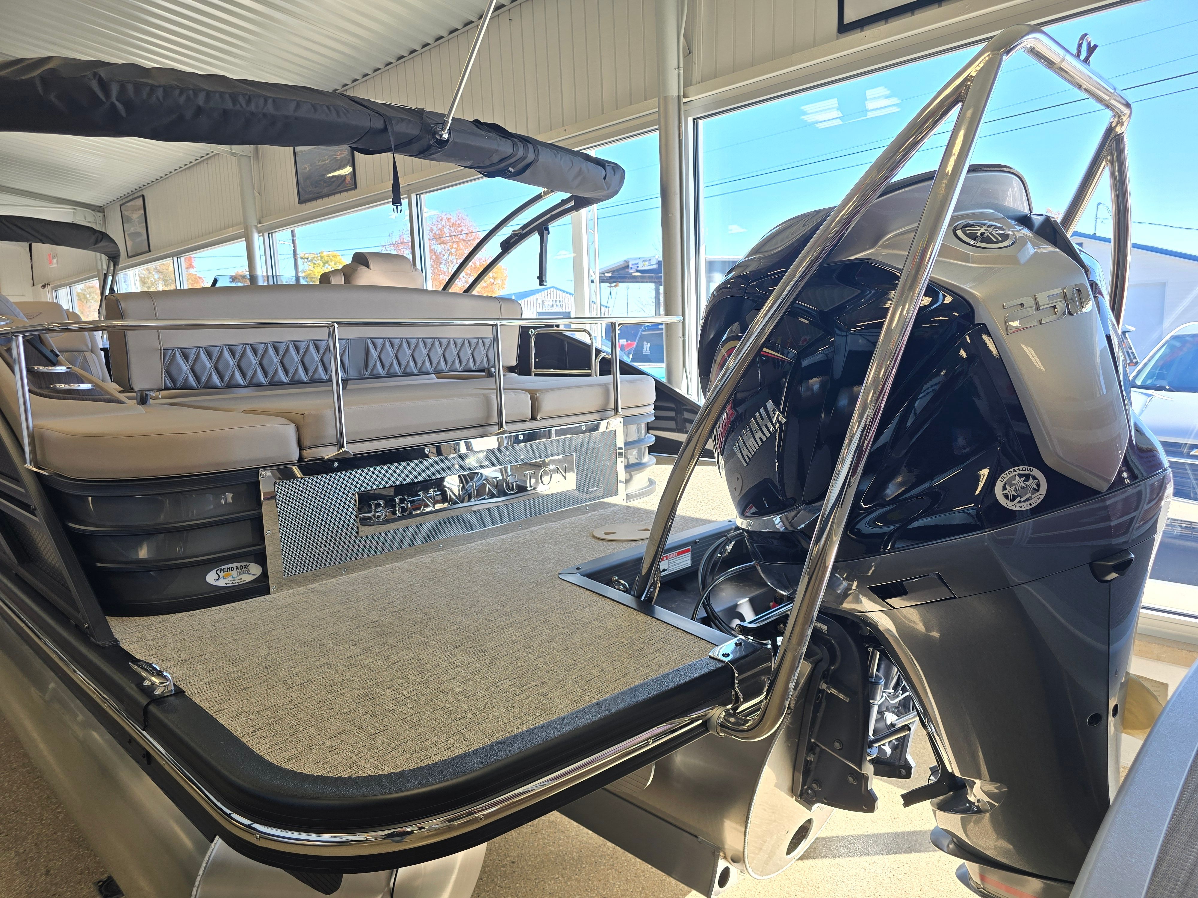 Beyond its luxurious features, the Bennington 23 Lxssb SPS Plus is designed with practicality in mind. The spacious deck provides plenty of room for coolers, water toys, and gear, making it easy to prepare for a day of fun. The power hydraulic assist steering simplifies docking and tight maneuvers, reducing stress and making every outing more enjoyable. The sturdy stainless steel rub rail offers peace of mind when coming alongside docks or other boats, protecting your pontoon from minor impacts.Fuel efficiency is enhanced by the advanced engineering of the 250-horsepower engine, allowing you to spend more time on the water and less time at the pump. The electric bimini top can be deployed or retracted in seconds, adapting to changing weather conditions and maximizing your comfort. Every detail of the Bennington 23 Lxssb SPS Plus is designed to make ownership easy, enjoyable, and worry-free.