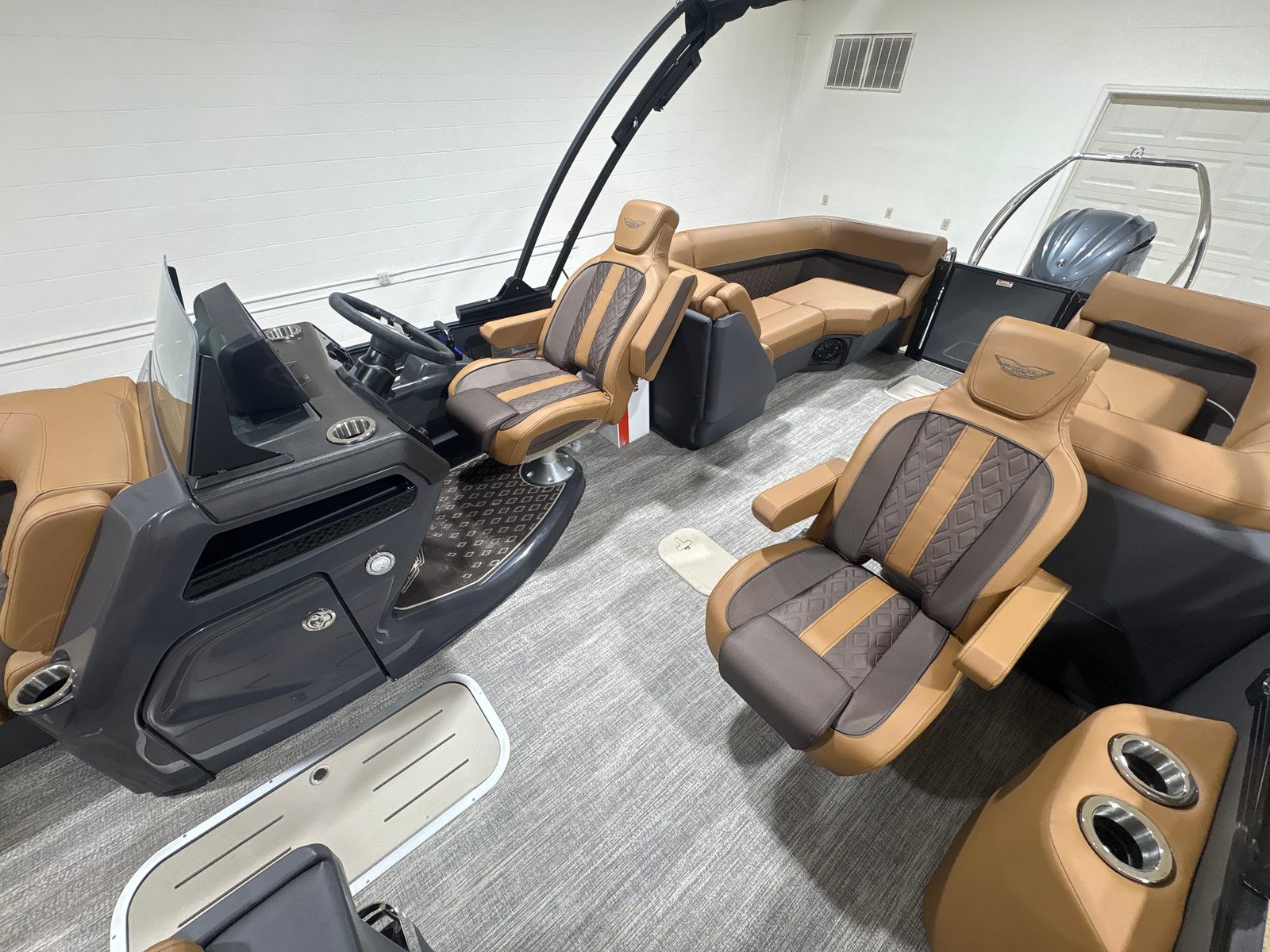This pontoon boat is as practical as it is luxurious. The advanced Yamaha engine offers impressive fuel efficiency, allowing you to spend more time on the water and less time refueling. The integrated steering system makes docking and maneuvering a breeze, even in tight spaces or busy marinas. Thoughtful lighting features enhance safety during nighttime excursions, while the elevated console provides clear visibility and easy access to controls.Storage is ample, making it simple to stow away gear, water toys, and personal items for a clutter-free deck. The sturdy construction and reliable performance ensure that maintenance is straightforward, so you can focus on enjoying your investment rather than worrying about upkeep.
