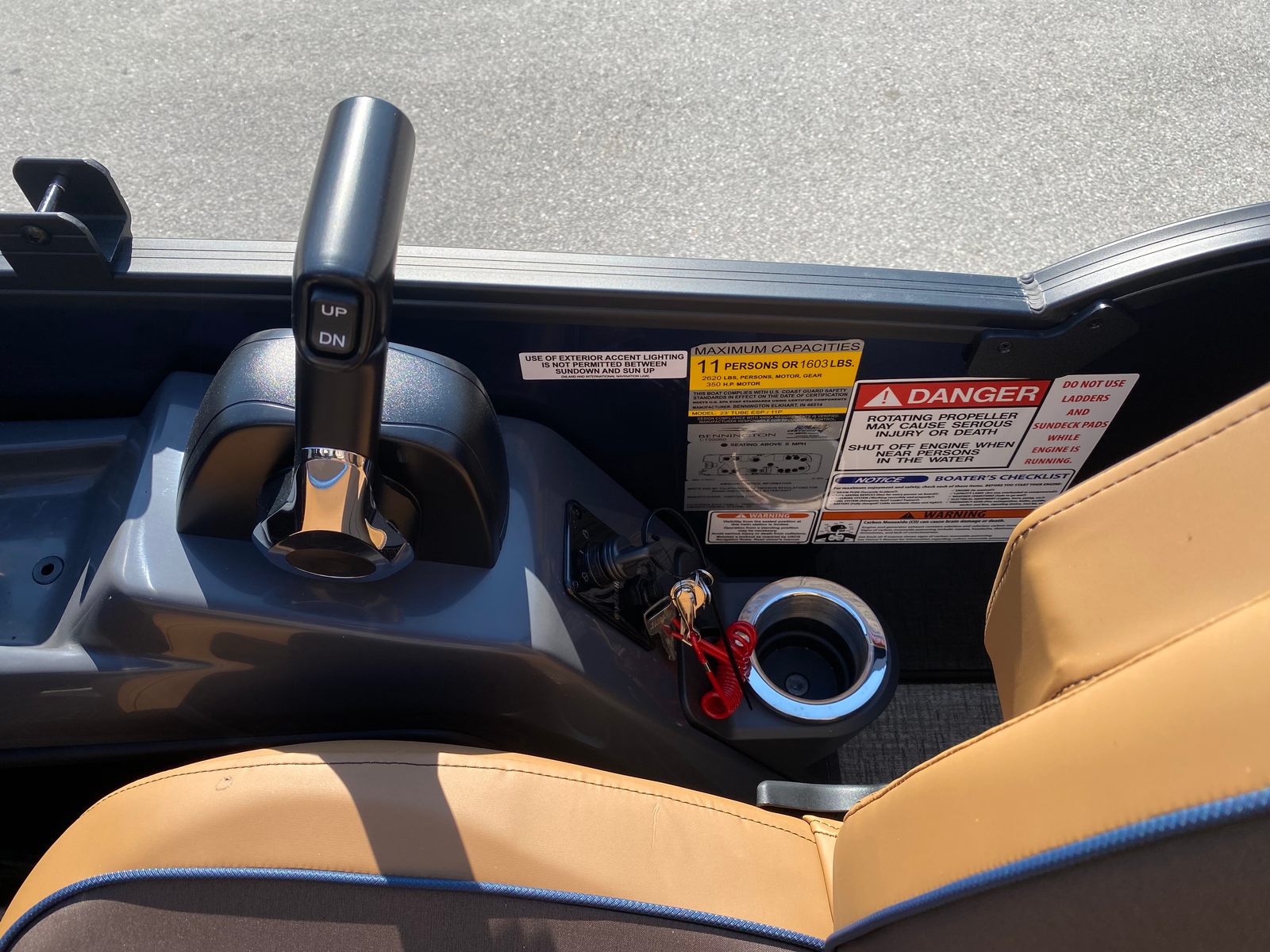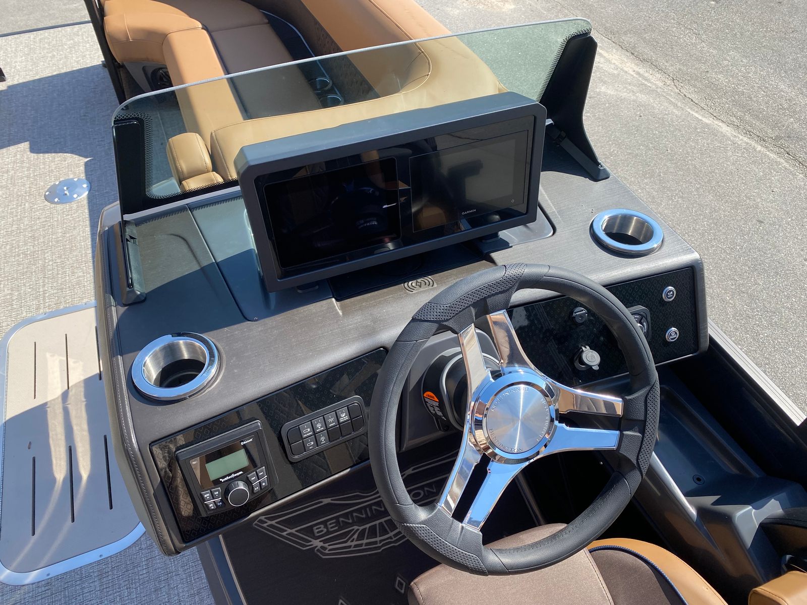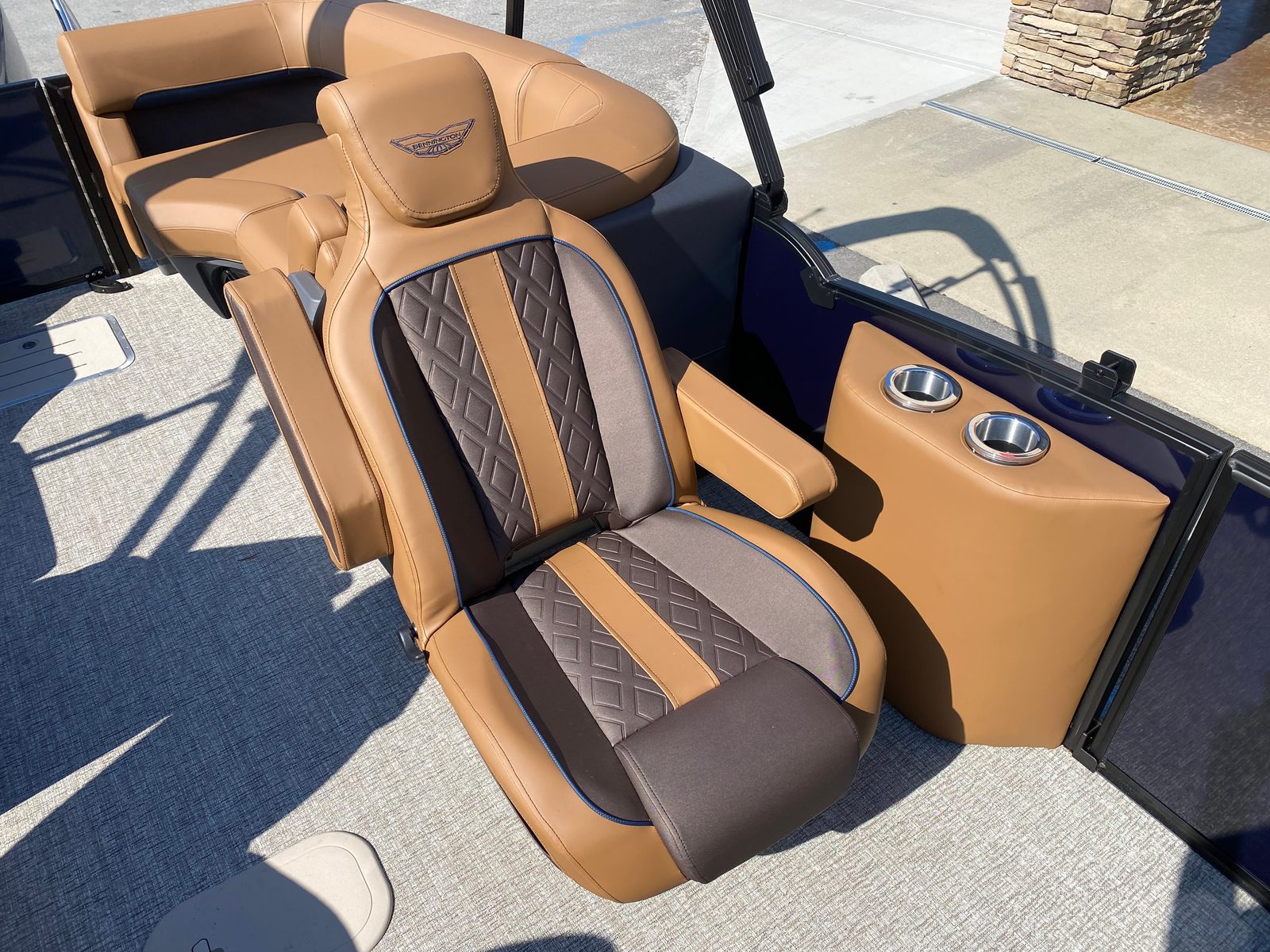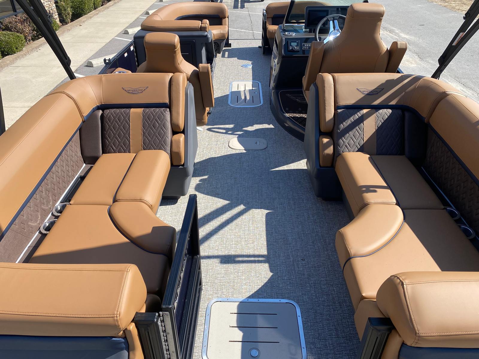 In summary, the 2026 Bennington 24 MFB ESP pontoon boat for sale is a remarkable blend of power, style, and versatility. With its impressive 300 horsepower Yamaha engine, striking Midnight Blue and Satin Black accents, luxurious Modesto Brown Veneto interior, and advanced lighting features, this new Bennington boat for sale offers an unparalleled boating experience. The spacious design, practical amenities, and innovative technology make it the perfect choice for families, anglers, and anyone seeking fun and relaxation on the water. Don’t miss your chance to own this exceptional pontoon – contact the dealer today to learn more and start your next adventure with the Bennington 24 MFB ESP.