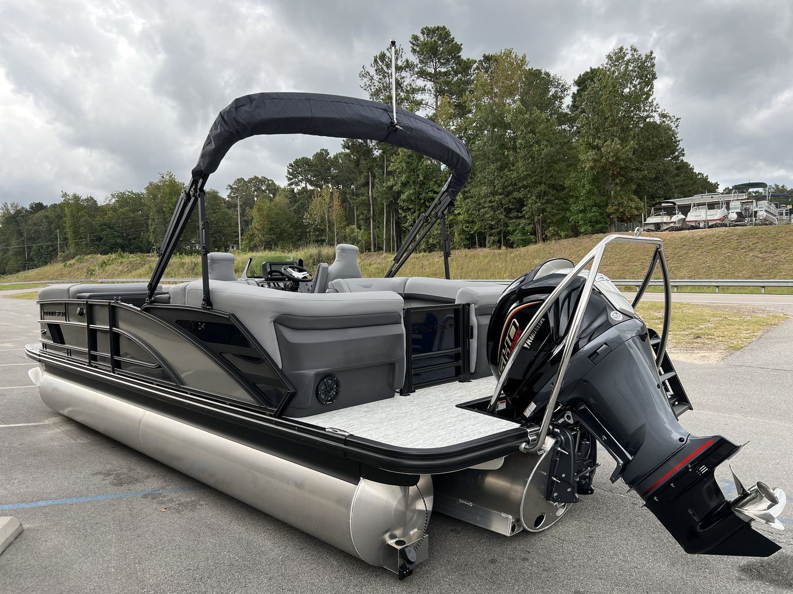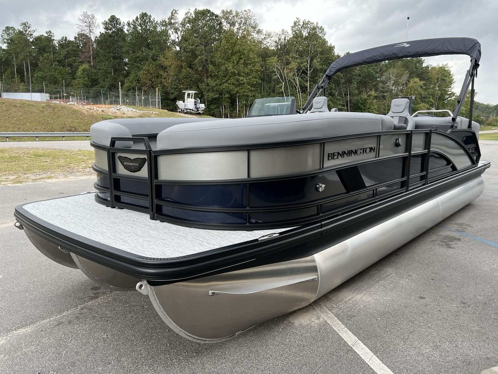 The 2026 Bennington 24 MFB ESP is a new pontoon boat that measures an impressive 23.33 feet in length, offering ample space for family, friends, and all your favorite water activities. Bennington is renowned for its commitment to quality, and this model is no exception. The elegant Midnight Blue Smooth panel color, accented by Metallic Silver Smooth, creates a striking visual presence on the water, while the Veneto Graphite vinyl base and Blackout Luxe Package add a touch of sophistication and modern flair. Whether you are cruising a quiet lake or entertaining guests at the dock, this Bennington boat for sale is designed to turn heads and deliver unforgettable experiences.