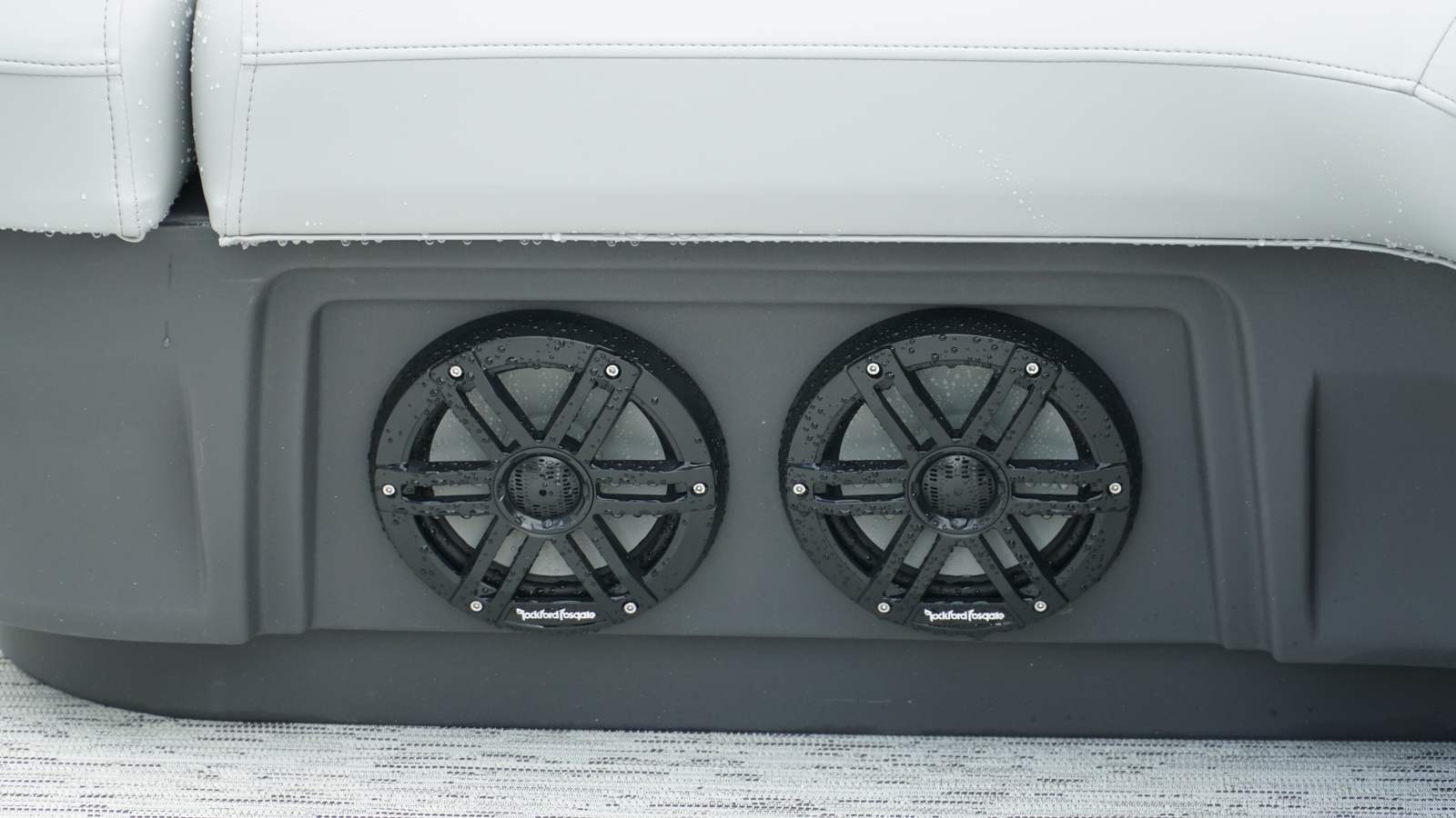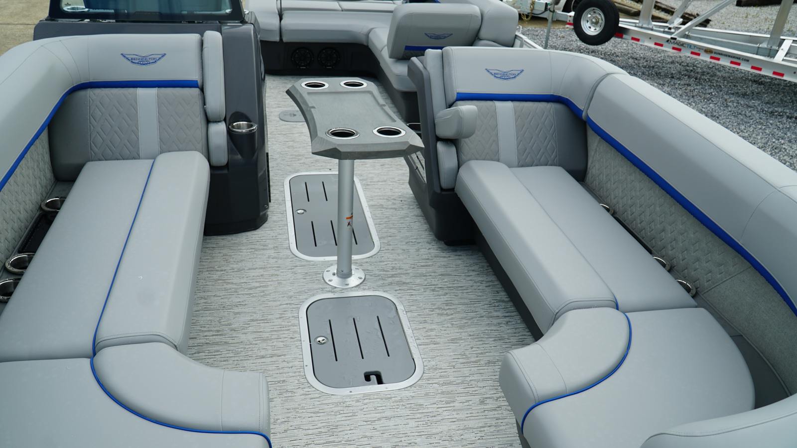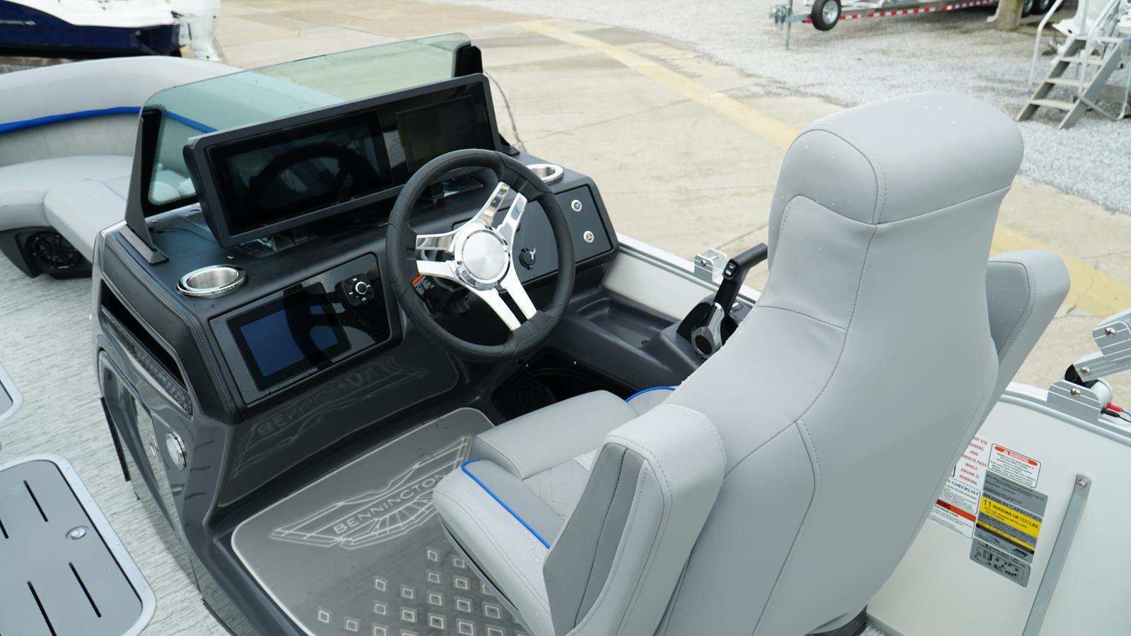 The Bennington 24 MSB ESP is loaded with features designed to enhance your on-water experience. The dual switch battery system with fuse provides peace of mind and reliable power management, ensuring your boat is always ready for action. Toekick lights (2-62") add a touch of ambiance and safety during evening cruises, creating a welcoming atmosphere for you and your guests.For music lovers, the Rockford Fosgate M2 Speaker Amplifier Upgrade and six Rockford Fosgate M1 Lighted Speakers deliver crystal-clear sound and vibrant lighting, transforming your pontoon into a floating entertainment hub. The elevated console with Pocket Mythos offers enhanced visibility and ergonomic controls, while the base furniture from the M Series ensures comfort and style throughout the deck. The elegant Zebrawood Matte Slate accents add a sophisticated touch, making this pontoon boat as visually appealing as it is functional.