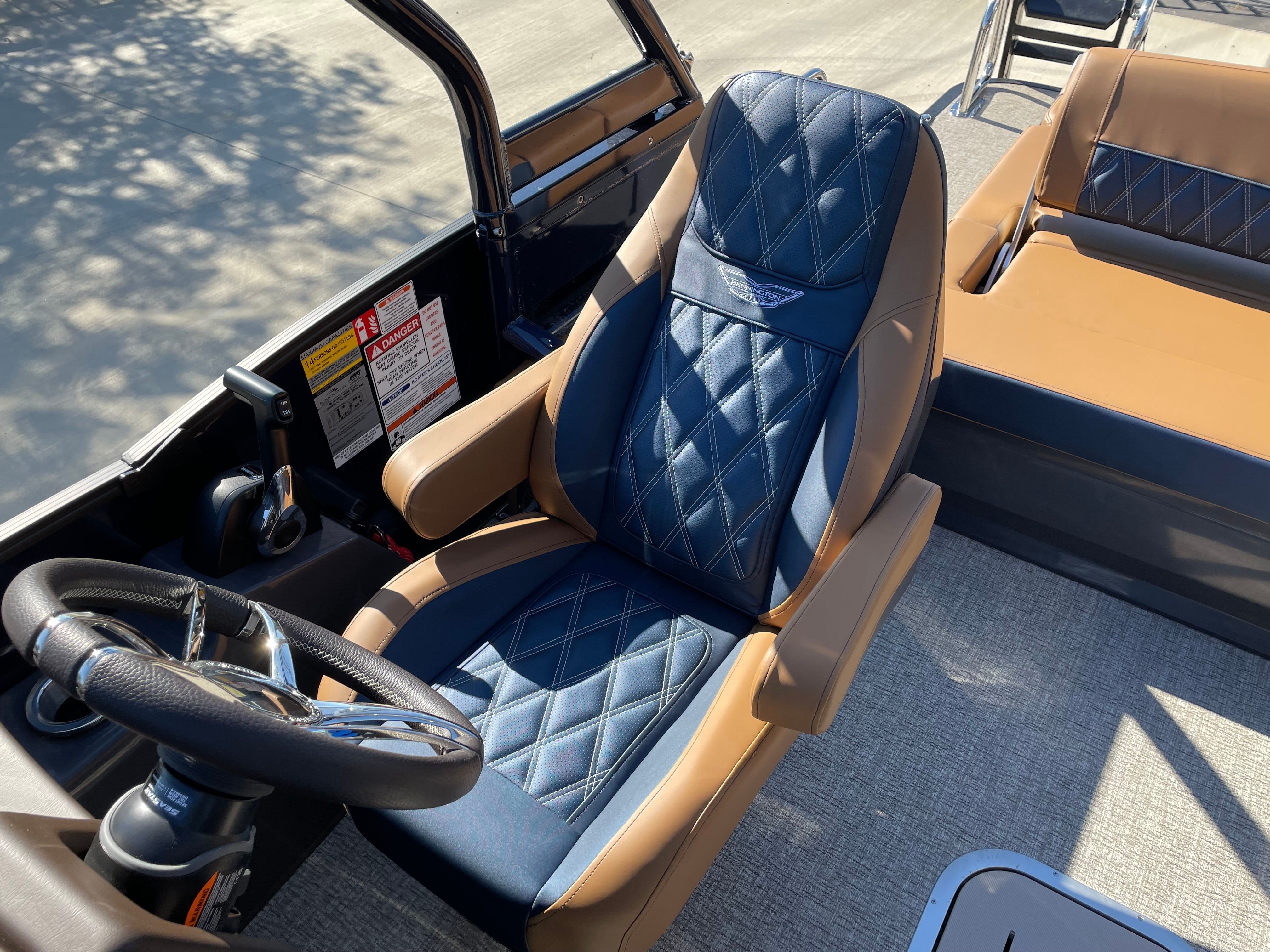 At the heart of the Bennington 24 Rtsba V is a powerful Yamaha 300 HP 4 Stroke V6 25 IN F300XA engine. This single-engine setup delivers impressive horsepower, providing smooth acceleration and reliable performance whether you are cruising, towing water toys, or exploring new waters. The Yamaha Mechanical Pre-Rig ensures seamless integration and optimal engine control, while the advanced Sea Star Hydraulic Steering and Power Hydraulic Assist make handling effortless, even at higher speeds or during tight maneuvers. This combination of power and precision ensures that every outing is both thrilling and safe, making this pontoon boat for sale a top choice for boating enthusiasts who value performance.