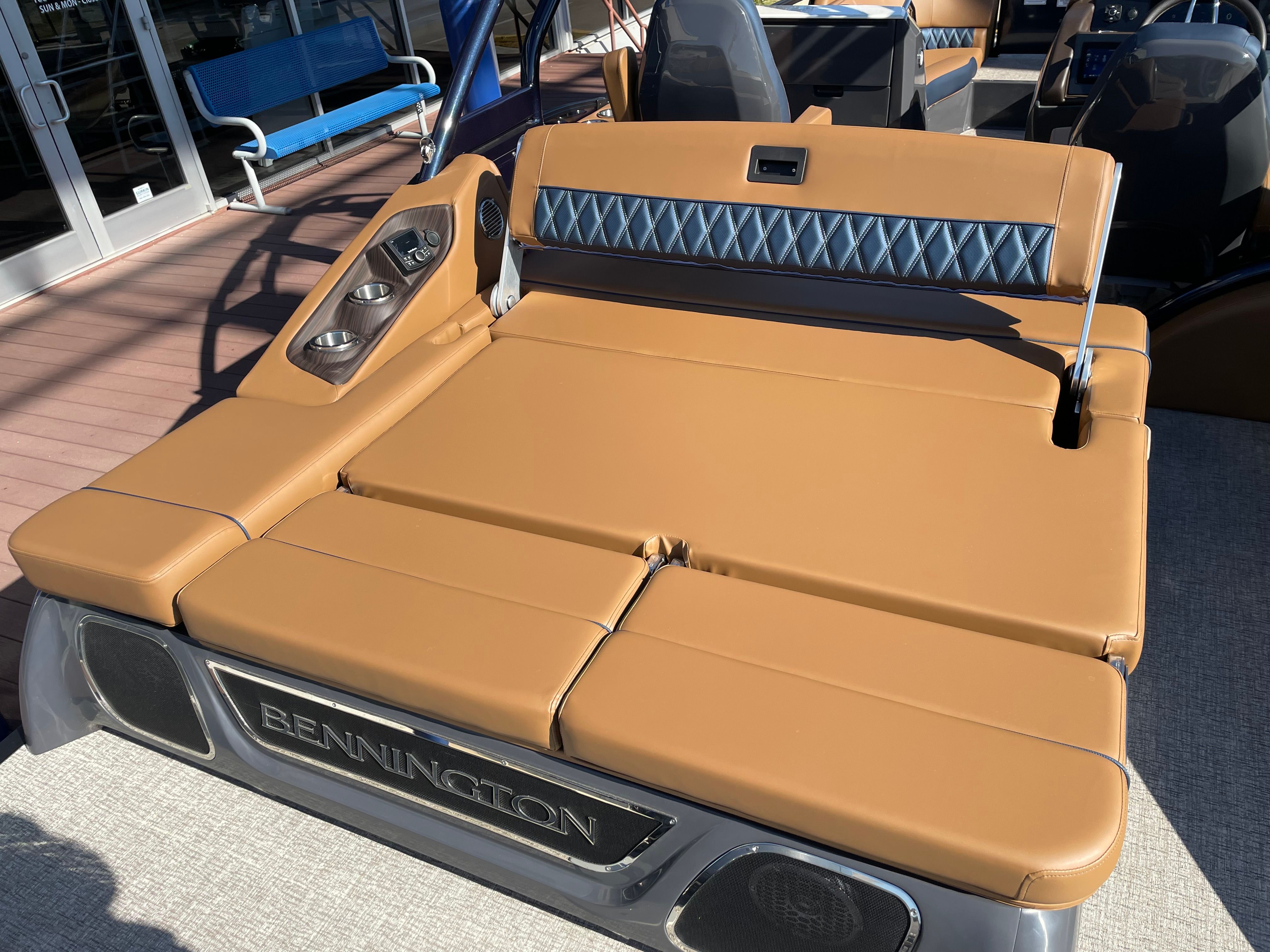 Owning the Bennington 24 Rtsba V means embracing a lifestyle of relaxation, fun, and social connection. The spacious deck layout provides ample room for friends and family to gather, lounge, and enjoy the scenery. The illuminated cupholders and ambient lighting set the perfect mood for evening cruises or celebrations on the water. With its advanced audio system, every trip becomes a party, allowing you to create lasting memories with your favorite playlists and satellite radio stations. The combination of comfort, style, and entertainment makes this Bennington boat for sale an ideal choice for those who want to make the most of their time on the water.