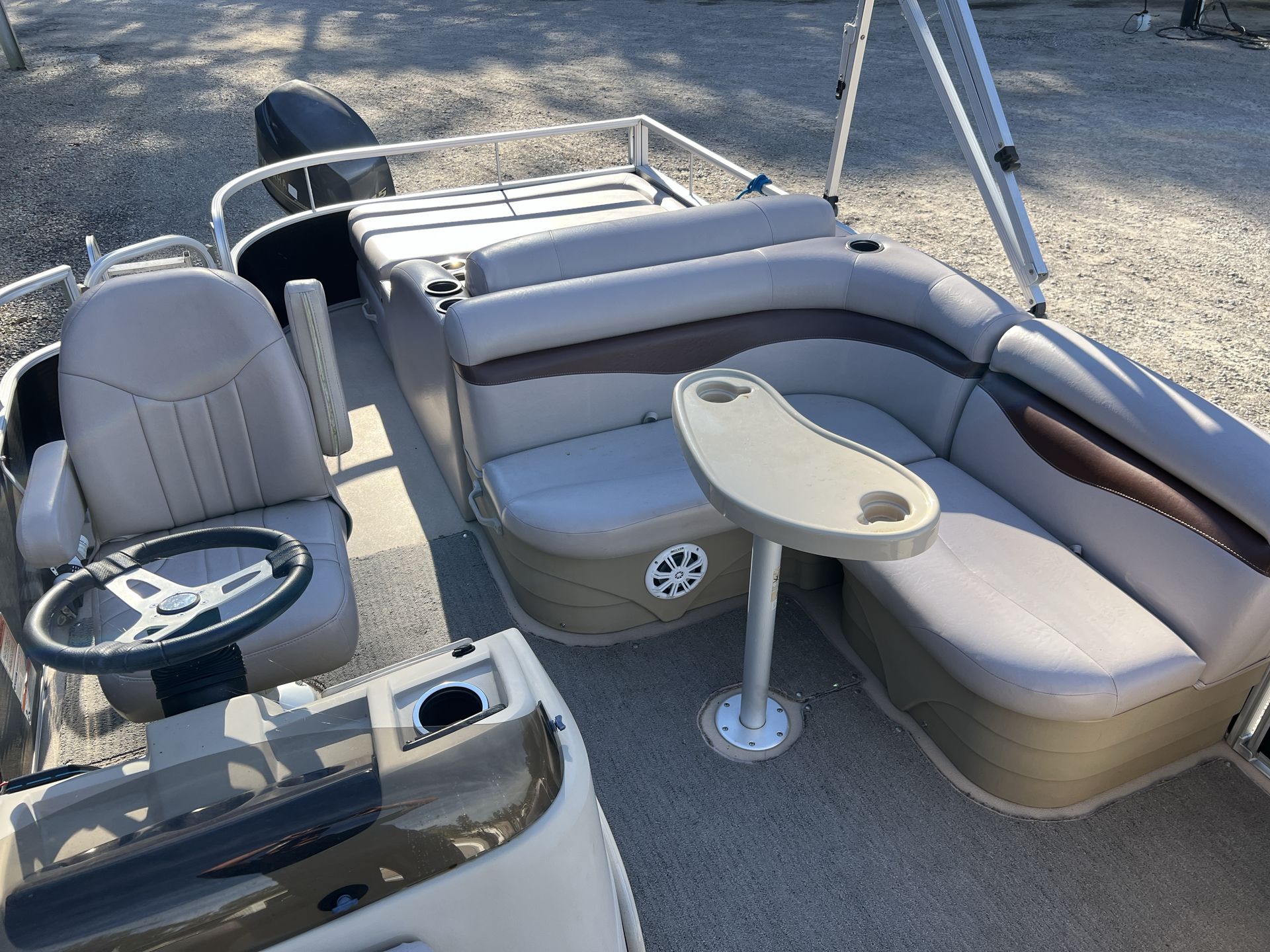Powering the Bennington 24 SSL is a single engine with an impressive 115 horsepower, offering a smooth and responsive ride for all your aquatic adventures. With only 194 engine hours, this pontoon boat for sale has plenty of life left, ensuring dependable performance for seasons to come. The engine’s robust output makes it easy to cruise at comfortable speeds, tow water toys, or reach your favorite fishing spot with ease. Whether you’re gliding across calm waters or navigating busier channels, the 24 SSL’s performance capabilities provide confidence and control, allowing you to focus on enjoying the journey.