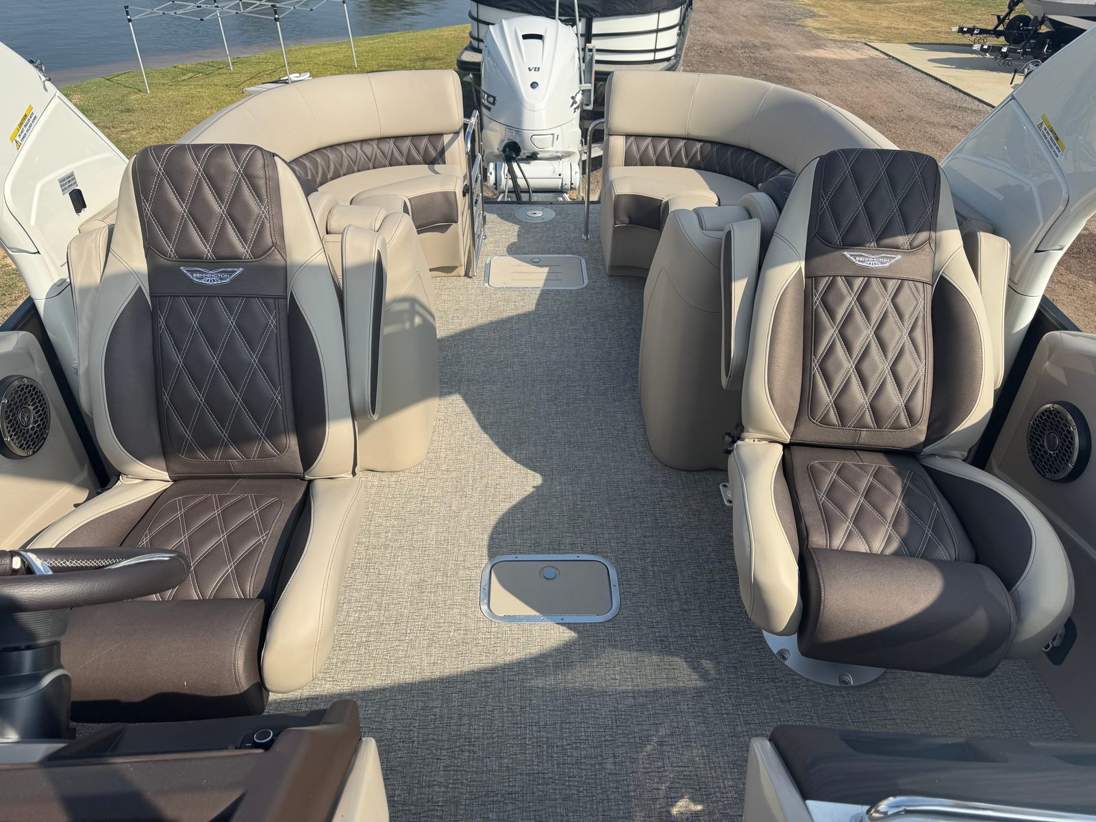 Beyond its luxurious amenities, the Bennington 25 Qfbwa ESP pontoon boat is designed for practical enjoyment and convenience. The spacious layout provides plenty of room for storing gear, water toys, and personal items, ensuring you’re always prepared for a day on the water. The advanced steering system simplifies docking and maneuvering, making it easy for boaters of all experience levels to handle the vessel confidently.Fuel efficiency is enhanced by the Yamaha Offshore engine’s modern engineering, allowing you to spend more time cruising and less time refueling. The durable construction and high-quality materials ensure long-lasting performance, so you can enjoy worry-free adventures season after season. Whether you’re planning a fishing trip, a family picnic, or a relaxing day of sunbathing, this pontoon boat adapts to your needs and delivers exceptional versatility.