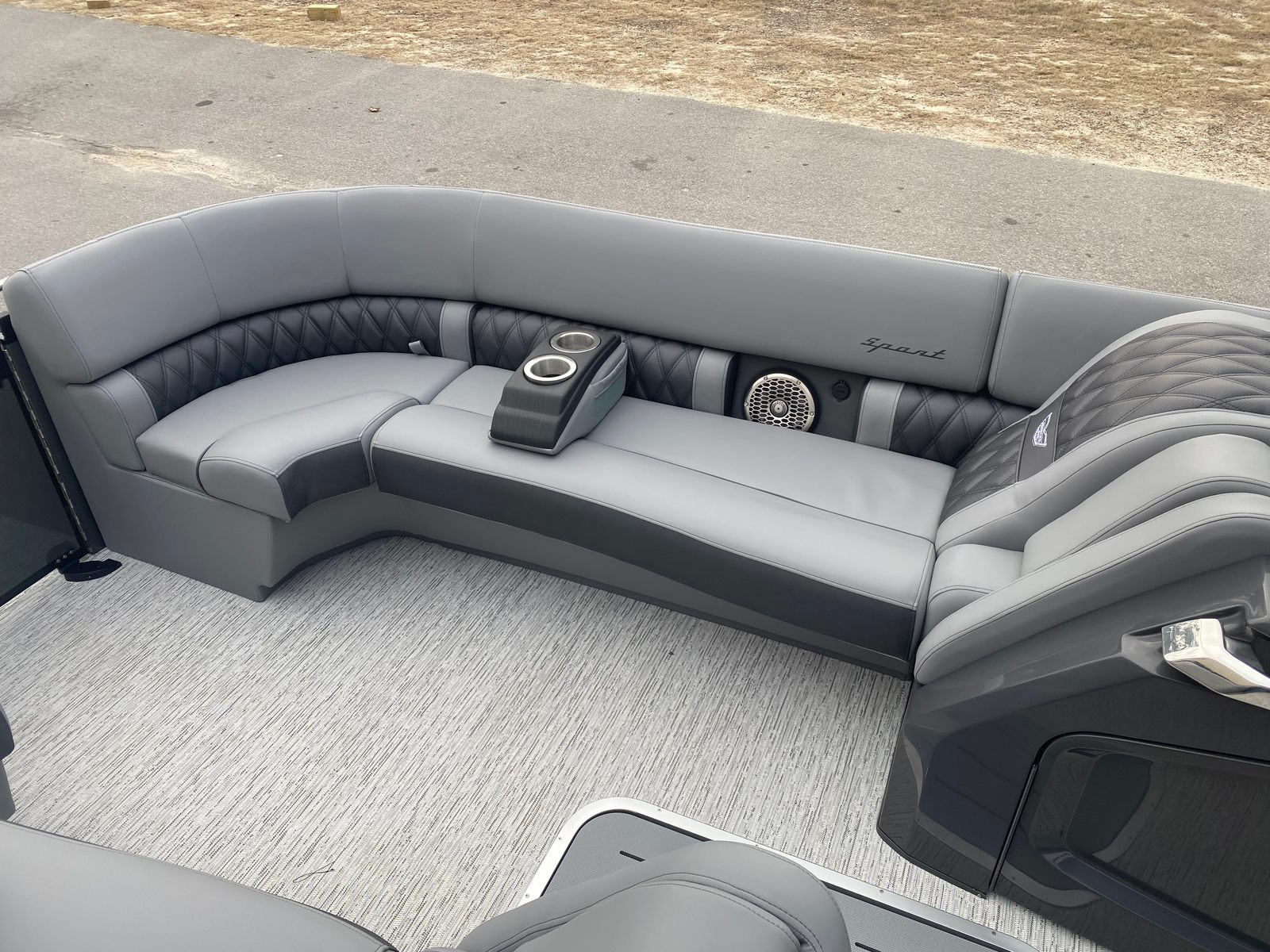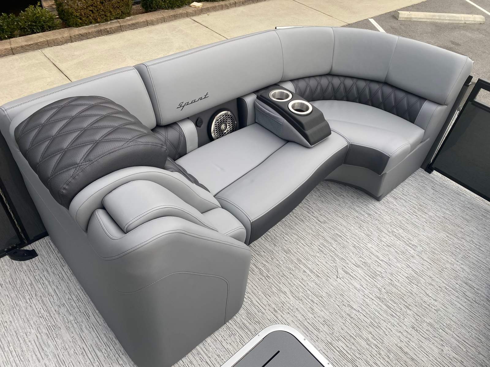 The Bennington 25 Qsba ESP is loaded with premium features designed to enhance your boating experience. The removable flag pole with an American flag adds a patriotic touch, perfect for holiday weekends or special occasions. Illuminated cupholders throughout the boat create a welcoming atmosphere for evening cruises, while the underwater lighting and toekick lights (1-41", 1-62", 2-72") transform the deck into a vibrant, inviting space after sunset. The blackout logos and Midnight Black canvas not only look stunning but also provide a sleek, modern finish.For music lovers, the Rockford Fosgate 6.5" M2 speakers (six on the boat and two on the arch), 10" M2 subwoofer, and PM Punch amplifier upgrade deliver crystal-clear sound and deep bass, turning every outing into a floating concert. The Zebrawood Matte Slate interior adds a touch of luxury, ensuring that every detail of your pontoon boat is as stylish as it is functional.