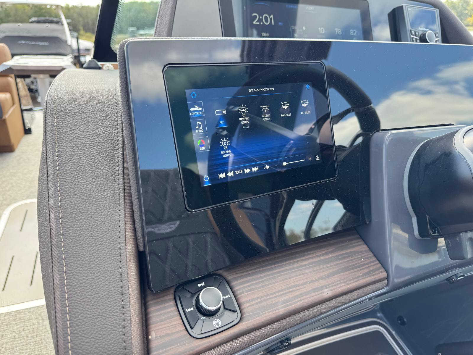 The Bennington 25 Qsba ESP is packed with special features that enhance both its aesthetic appeal and onboard experience. The Power Cladded Sport Arch adds a bold, sporty look while providing functional support for accessories and lighting. Illuminated cupholders and underwater lighting create a vibrant atmosphere for evening cruises, while toekick lights add a touch of elegance and safety. The blackout logos give the boat a sleek, modern appearance that stands out on the water.Entertainment is taken to the next level with a premium Rockford Fosgate audio system, including six 6.5" M2 speakers throughout the boat and two additional speakers on the arch. The sound system is further enhanced by a 10" M2 subwoofer, a PM Punch amplifier upgrade, a Rockford Fosgate 10" M1 subwoofer, and a dual M2 amplifier upgrade, ensuring crystal-clear sound and powerful bass for your favorite music. The removable flag pole with an American flag adds a patriotic touch, perfect for holiday celebrations or showing your pride on the water.