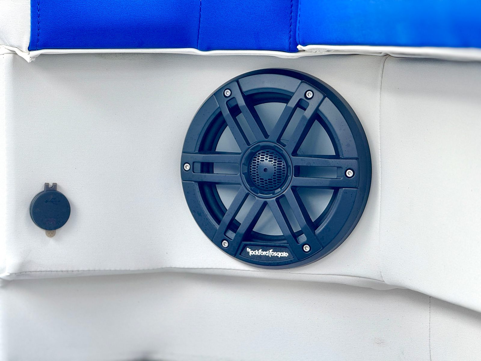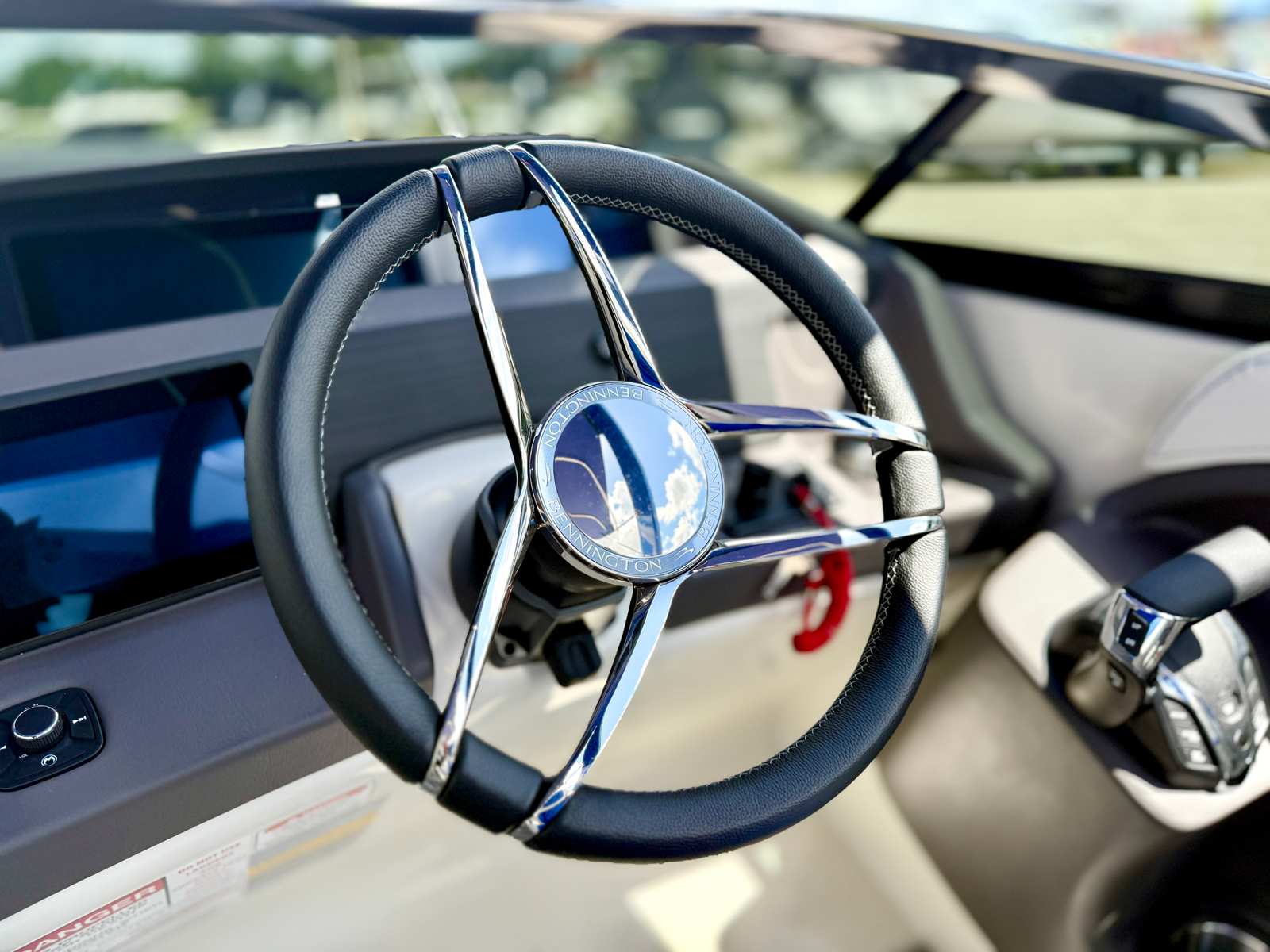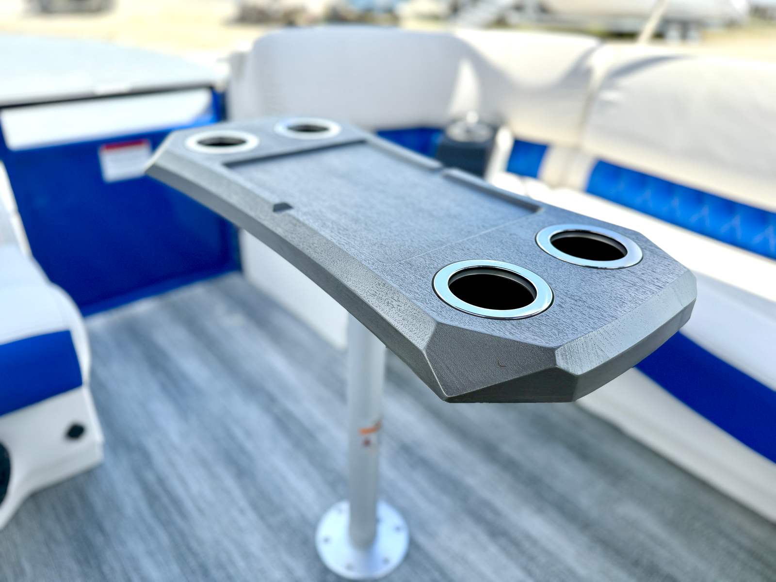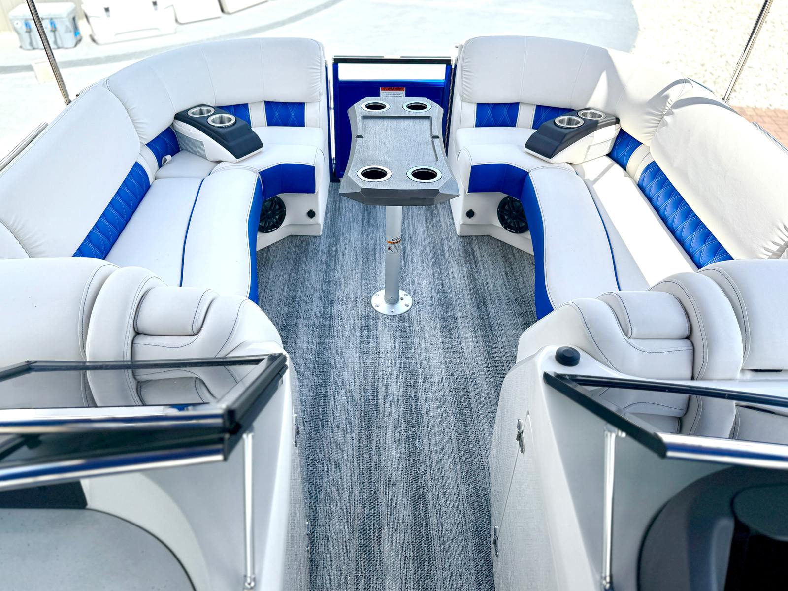 This Bennington pontoon boat for sale is packed with special features designed to enhance both aesthetics and functionality. The RGB Toe Kick Lighting creates a vibrant and customizable ambiance, perfect for evening cruises and celebrations. Nine illuminated cupholders ensure that refreshments are always within reach, while exterior side lighting and underwater lighting add a dramatic flair and improved visibility. The Blackout Logos and Arctic Ice White finish give the boat a modern, sophisticated look that turns heads at every dock. Inside, the Zebrawood Matte Slate accents and base Pillowtop Diamond Stitched Upholstery provide a luxurious touch, ensuring that every passenger enjoys supreme comfort and style.