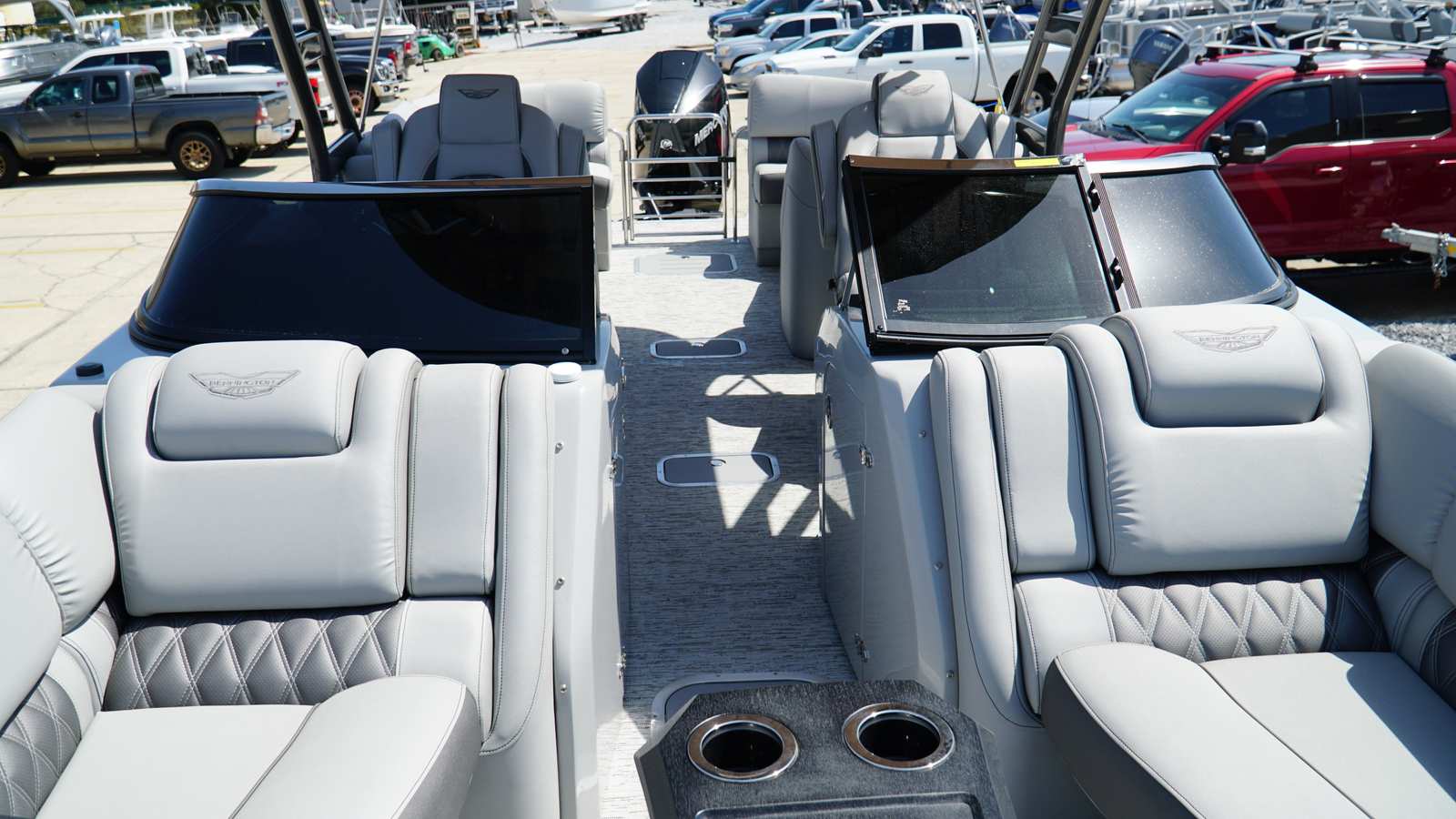 The Bennington 25 Rfbwa ESP is packed with special features that set it apart from other pontoon boats. The interior accent features Perforated Metallic Carbon, adding a touch of modern sophistication to the cabin. The Zebrawood Matte Slate trim brings a refined, natural aesthetic, while the Taupe canvas offers both style and protection from the elements. The base pillowtop diamond-stitched upholstery (R) ensures plush comfort for all passengers, and the arch color match with custom primary panel color creates a cohesive and striking visual appeal. No accent textured surfaces and Silver Simtex materials further enhance the boat’s luxurious feel. Mercury Power Steering rounds out the package, providing effortless maneuverability and a premium driving experience.