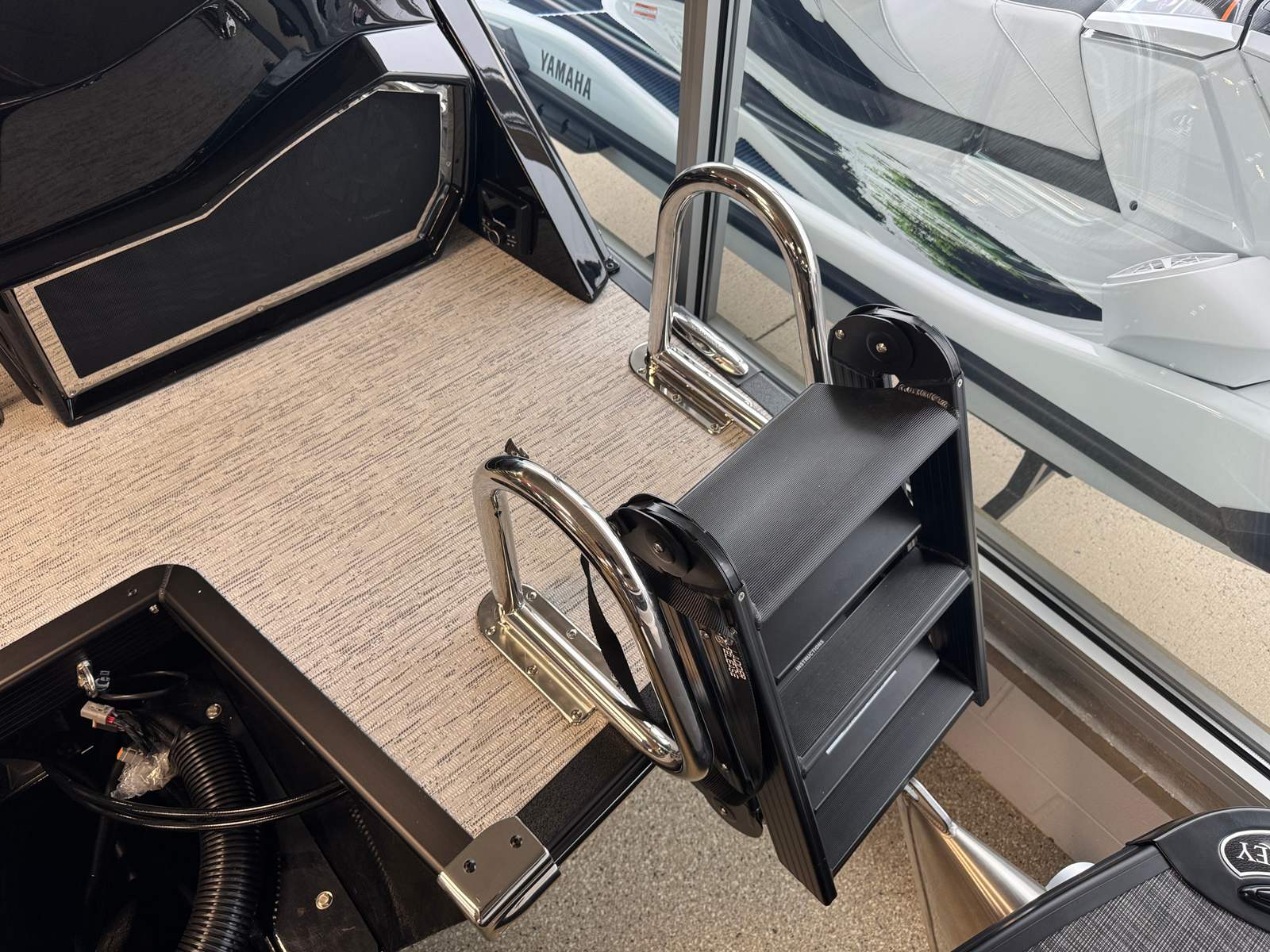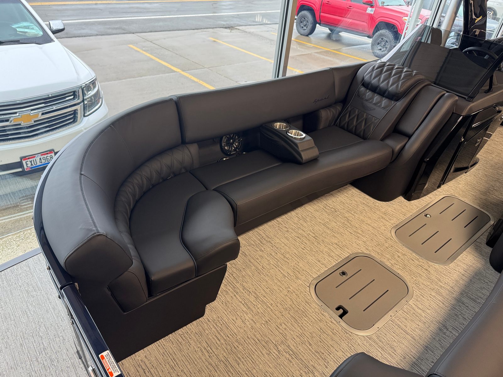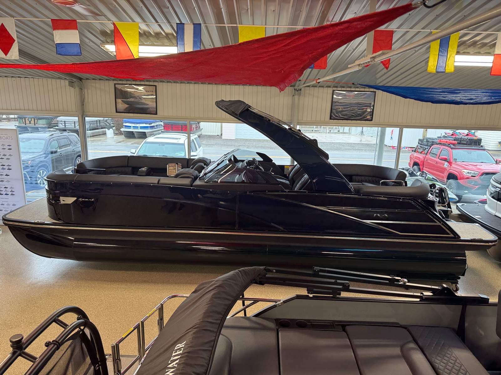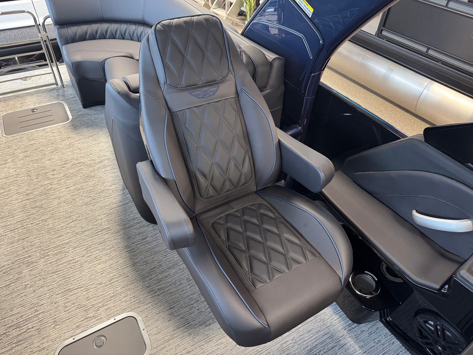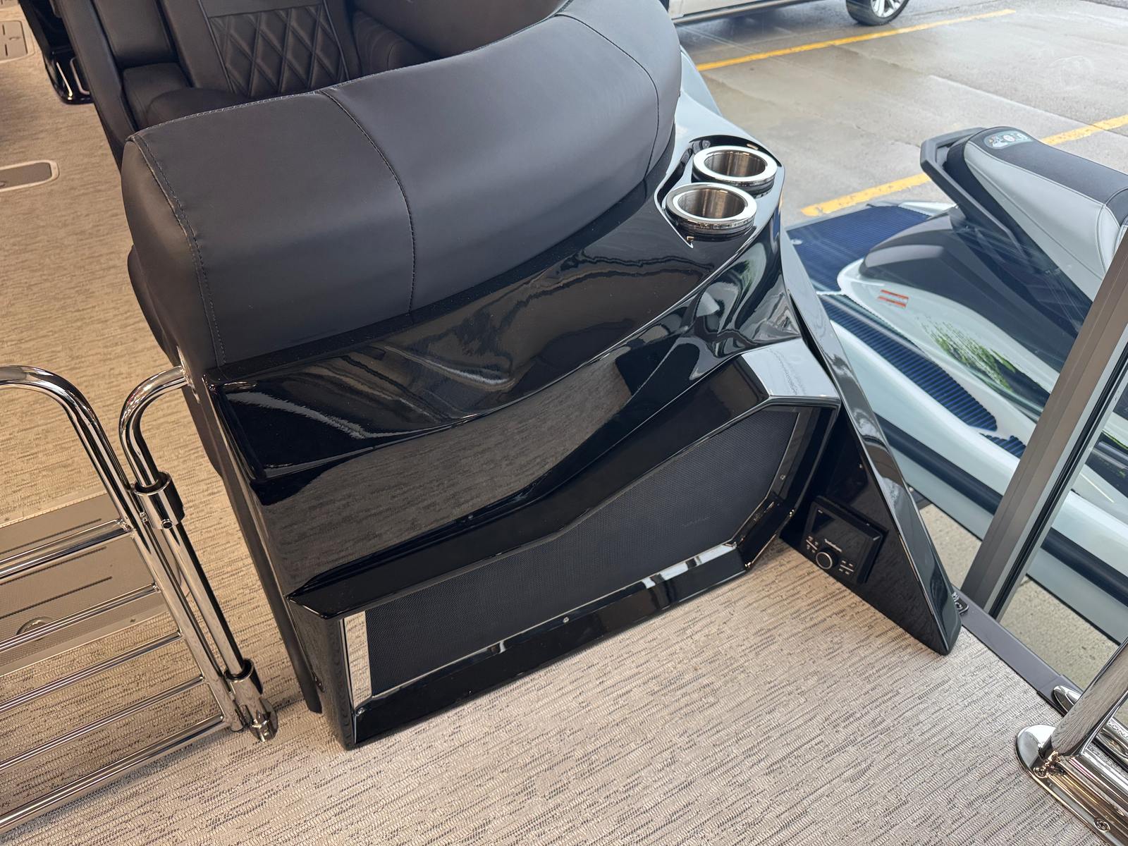 The 2026 Bennington 25 Rxfbwa ESP is loaded with special features that enhance both aesthetics and functionality. The removable flag pole with an American flag adds a patriotic touch, perfect for holiday weekends and special occasions. Exterior side lighting and toekick lights (2-37" and 2-62") create a captivating ambiance for evening cruises, making your boat stand out on the water and ensuring safe movement around the deck after sunset. The Rockford Fosgate 6.5" M1 Arch Speakers deliver premium sound quality, transforming your pontoon into a floating entertainment hub. Every detail, from the Gemini Black panel to the Phantom/Phantom interior accents, is thoughtfully chosen to provide a luxurious and comfortable environment.