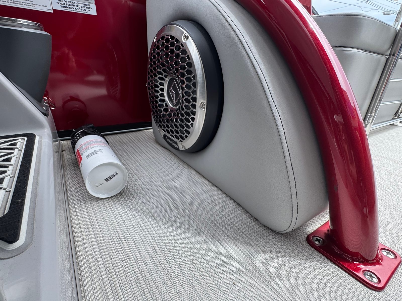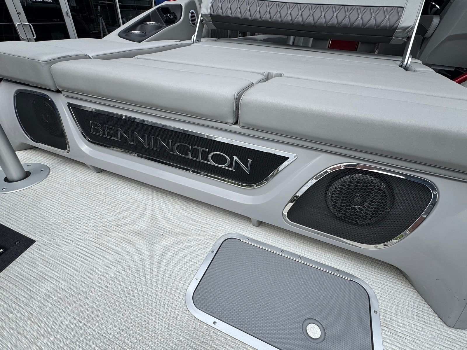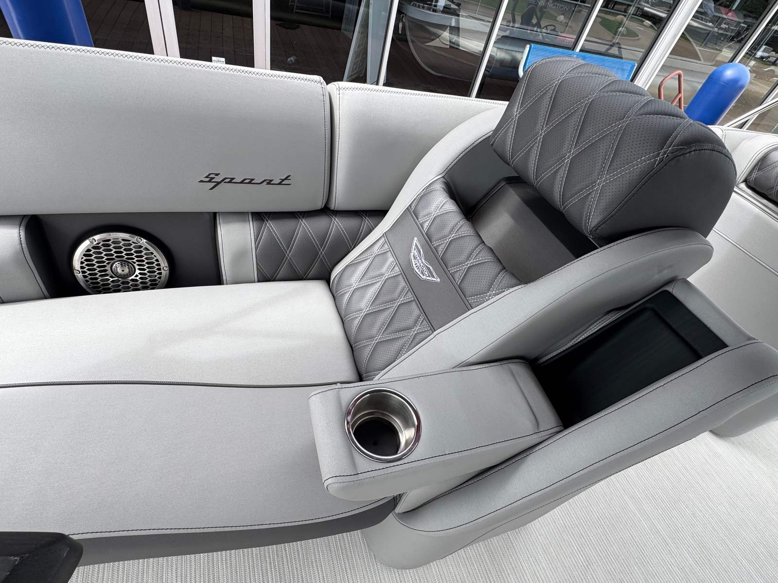 Step aboard and discover a world of comfort and entertainment. The Bennington 27 QSBAX2 ESP is loaded with special features designed to elevate your boating experience. Enjoy the ambiance created by illuminated cupholders, exterior side lighting, underwater lighting, and strategically placed toekick lights (2-41", 1-62", 2-72") that enhance both safety and style during evening cruises. The blackout logos add a modern touch, while the Rockford Fosgate audio system, featuring eight 6.5" M2 speakers, a 10" M2 subwoofer, and a PM Punch amplifier upgrade, delivers crystal-clear sound for your favorite playlists.The interior is equally impressive, with pillowtop diamond-stitched sport upholstery providing plush seating for all passengers. The Zebrawood Matte Slate finishes and Midnight Black canvas create a refined atmosphere, perfect for relaxing or entertaining. Every detail has been thoughtfully designed to ensure maximum comfort and enjoyment, making this pontoon boat for sale a true standout in its class.