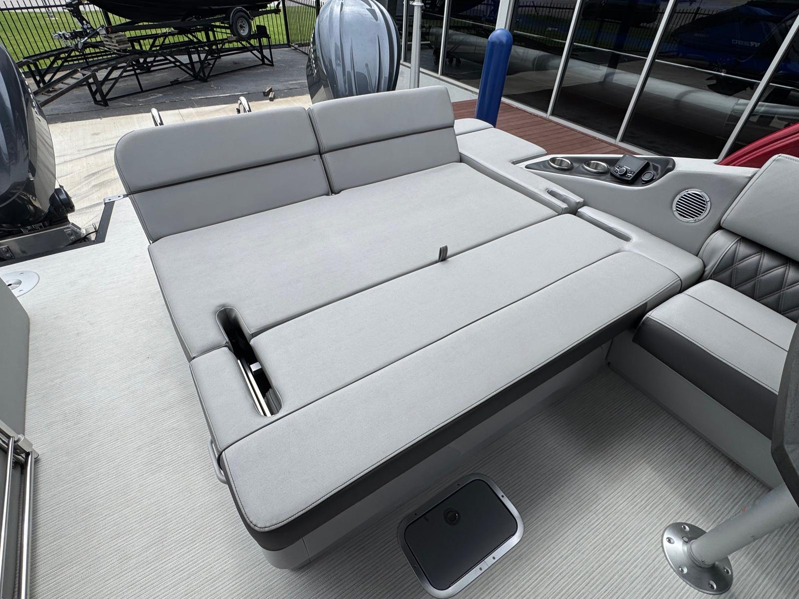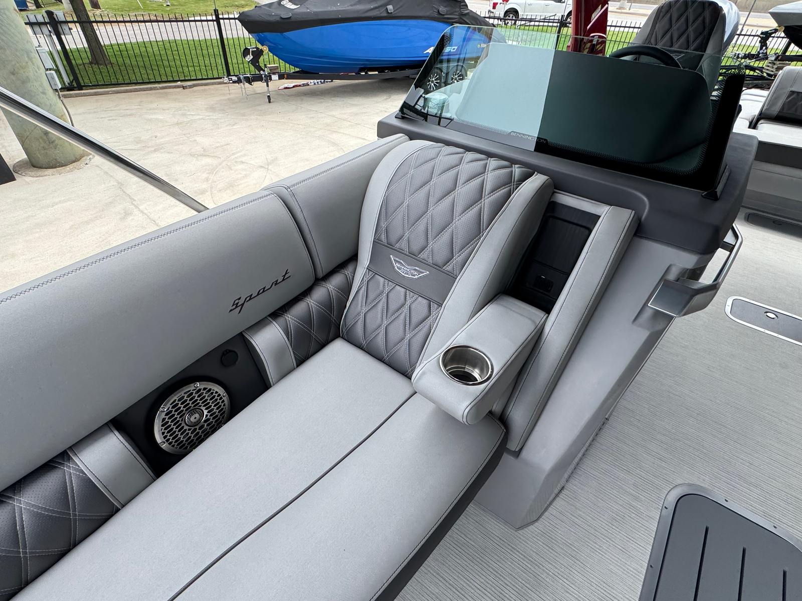 Practicality meets luxury in the Bennington 27 QSBAX2 ESP. The spacious design offers ample room for storing gear, coolers, and water toys, ensuring you’re always prepared for a day on the water. The responsive Yamaha Twin Integrated Steering system makes docking and maneuvering a breeze, even in tight spaces. The efficient engine setup provides reliable performance, allowing you to spend more time enjoying the water and less time worrying about maintenance.The advanced lighting features not only enhance the boat’s aesthetic appeal but also improve visibility and safety during nighttime excursions. The durable canvas and high-quality upholstery are designed to withstand the elements, ensuring your investment remains in top condition for years to come. With thoughtful design and premium materials throughout, this Bennington boat for sale is as practical as it is luxurious.
