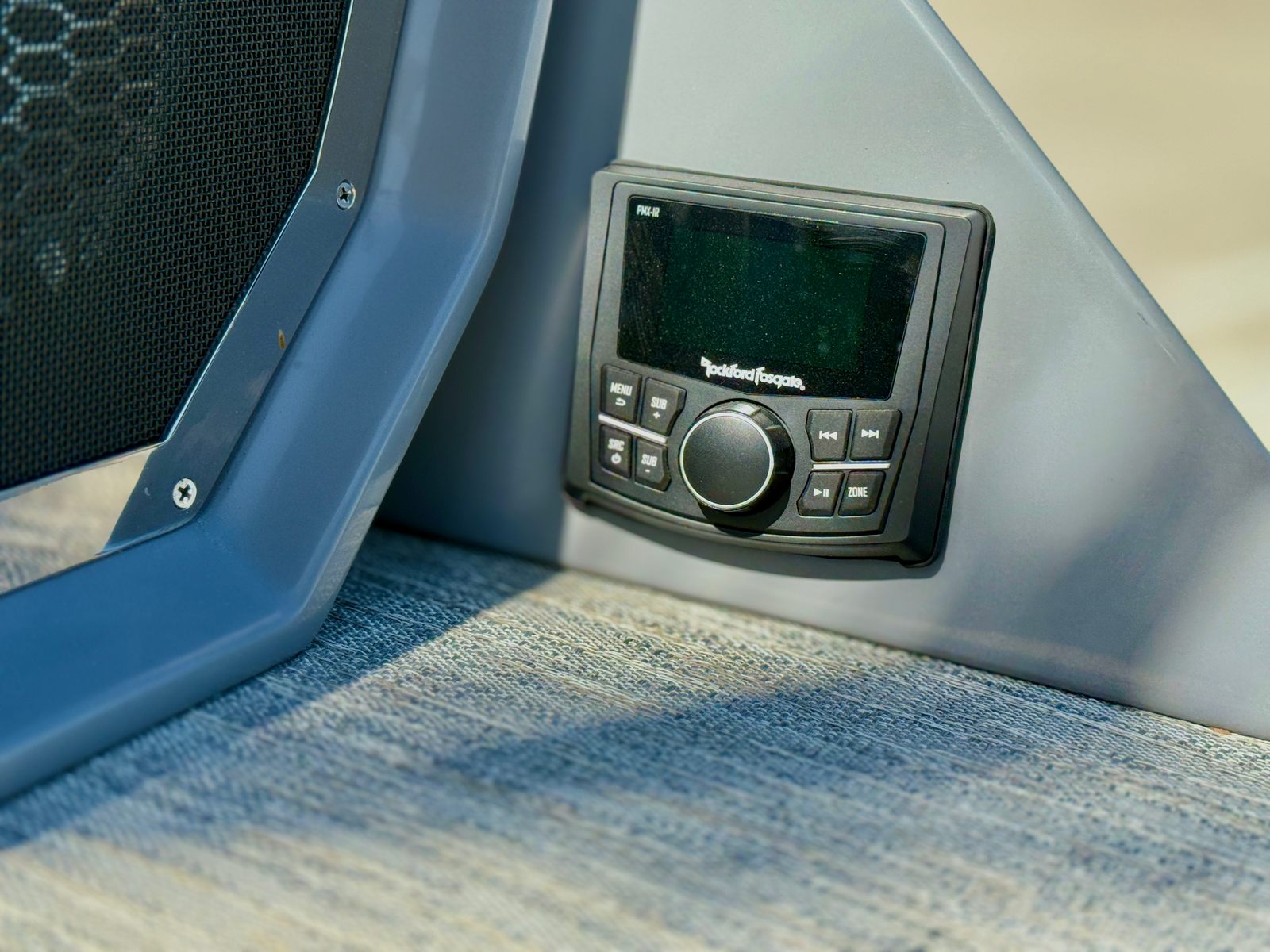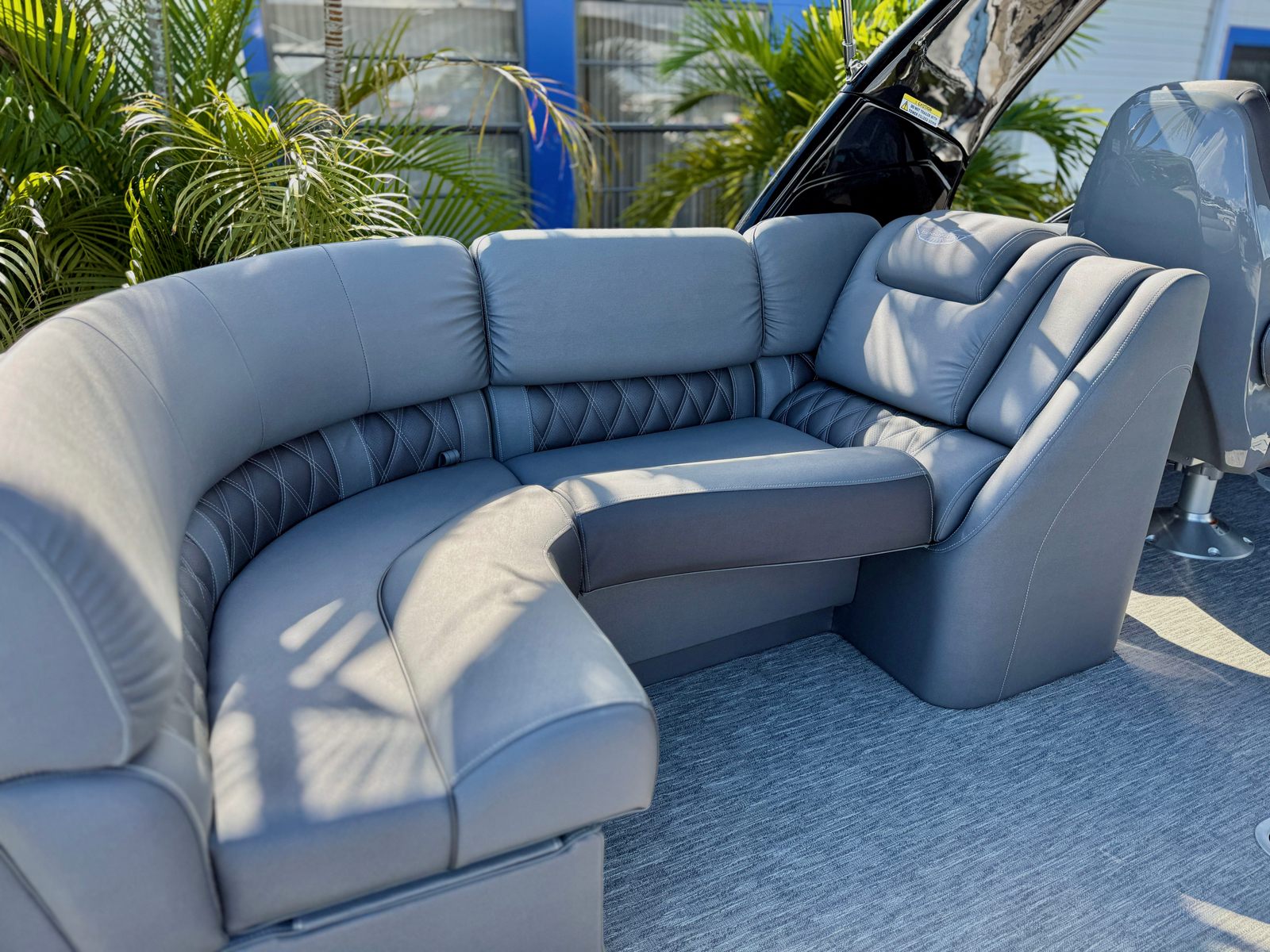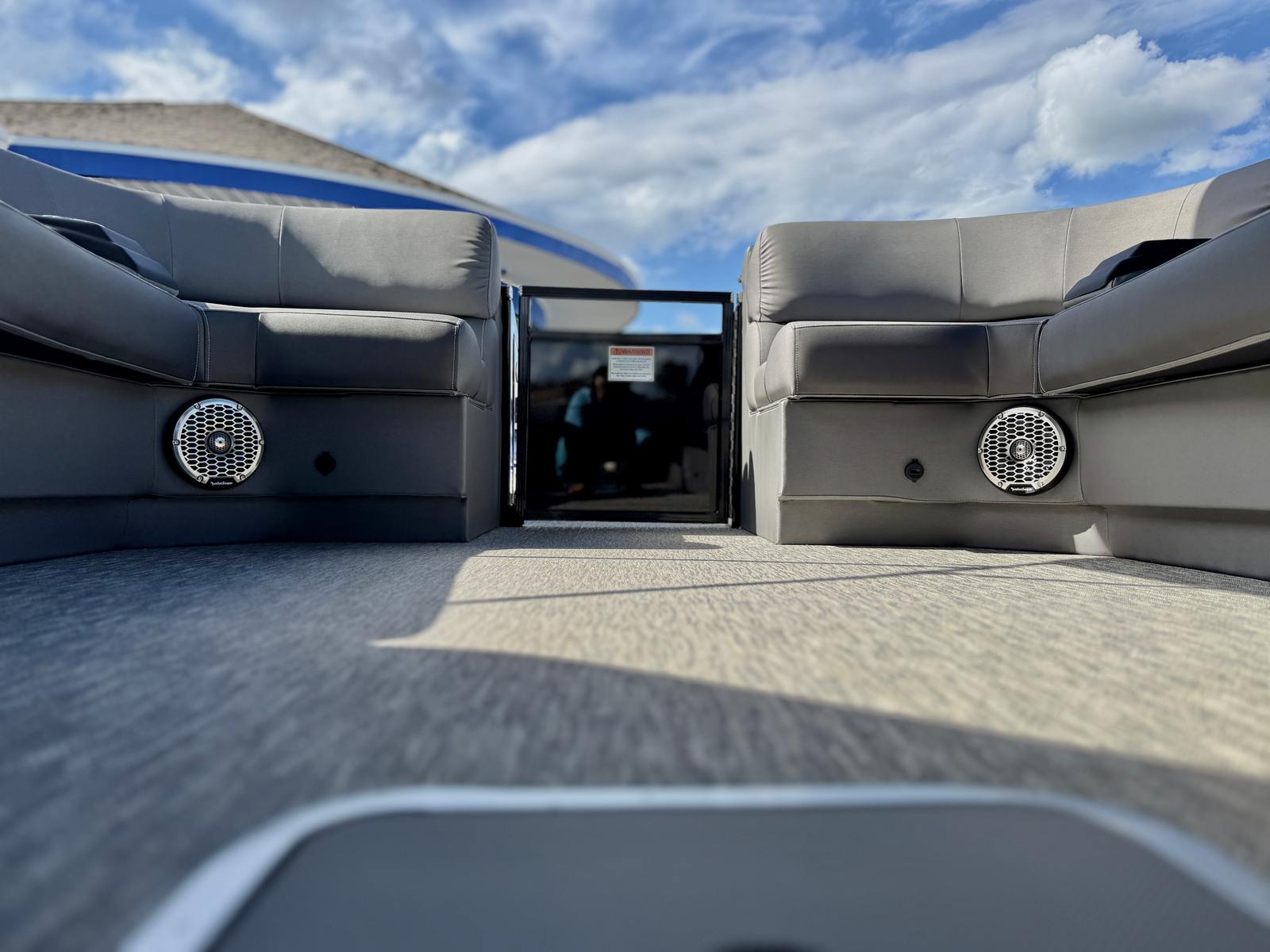 The Bennington 27 QXFBWAX2 ESP is loaded with special features that set it apart from other pontoon boats for sale. The Sunshine Package ensures that every outing is bright and cheerful, while RGB Toe Kick Lighting (R/RX/Q) adds a vibrant, customizable ambiance to the deck. Nine illuminated cupholders keep your favorite beverages within reach and glowing after sunset, enhancing both convenience and style. Exterior side lighting and underwater lighting create a striking visual effect, making your boat stand out during evening cruises or dockside gatherings.Blackout logos give the boat a modern, sophisticated look, while the Rockford Fosgate audio system transforms your pontoon into a floating entertainment hub. Enjoy six 6.5" M2 speakers, two 8" M2 speakers (Fastback), a powerful 10" M2 subwoofer, and a dual PM Punch amplifier upgrade for crystal-clear sound and deep bass. The interior features Graphite Simtex upholstery and accent details in perforated metallic carbon, offering both comfort and contemporary flair.