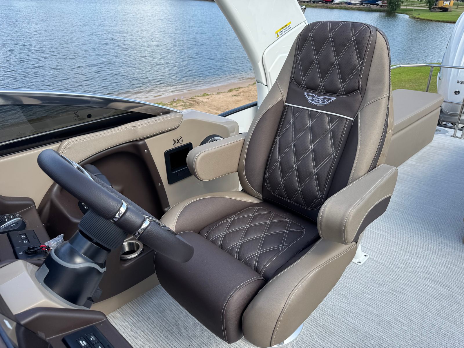Power and precision are at the heart of the Bennington 30 QXSBWAX2 ESP. Equipped with twin engines delivering a combined 900 horsepower, this pontoon boat offers an exhilarating ride and exceptional maneuverability. Whether you’re gliding across calm lakes or tackling coastal waters, the robust engine setup ensures smooth acceleration, impressive top speeds, and reliable performance in a variety of conditions. The Yamaha Integrated Steering Helm Master EX Full Maneuverability system further enhances control, allowing for effortless docking, tight turns, and precise handling. This advanced steering technology makes the 30 QXSBWAX2 ESP a joy to captain, even in challenging environments.