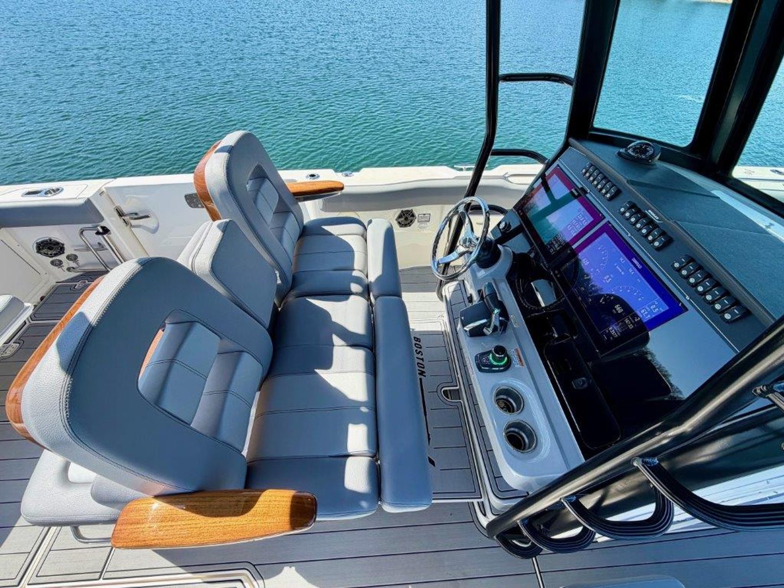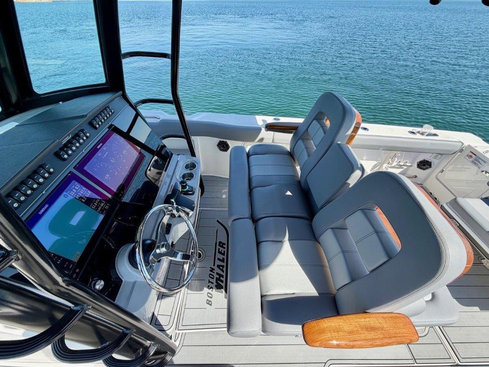 Do not miss your opportunity to own this 2023 Boston Whaler 330 Outrage, a lift-kept, exceptionally well-maintained example that has also been stored in heated conditions during the winter months. This boat shows extremely well and comes with a triple axle Loadmaster trailer featuring LED lighting and a freshwater flush system, making it ideal for trips to the coast. Built on Boston Whaler’s precision-engineered hull, the 330 Outrage delivers a smooth, dry, and confident ride with an excellent balance of stability and comfort, along with predictable handling and seamless control. Powered by twin Mercury V10 Verado 400s with 150 hours, this Boston Whaler has been fully serviced and is ready to go. Joystick control, autopilot, and Skyhook make docking and positioning simple, while the twin 16” Simrad displays with radar and sounder provide a complete electronics package. The layout offers a spacious cockpit for fishing and entertaining, along with thoughtful comfort features throughout.