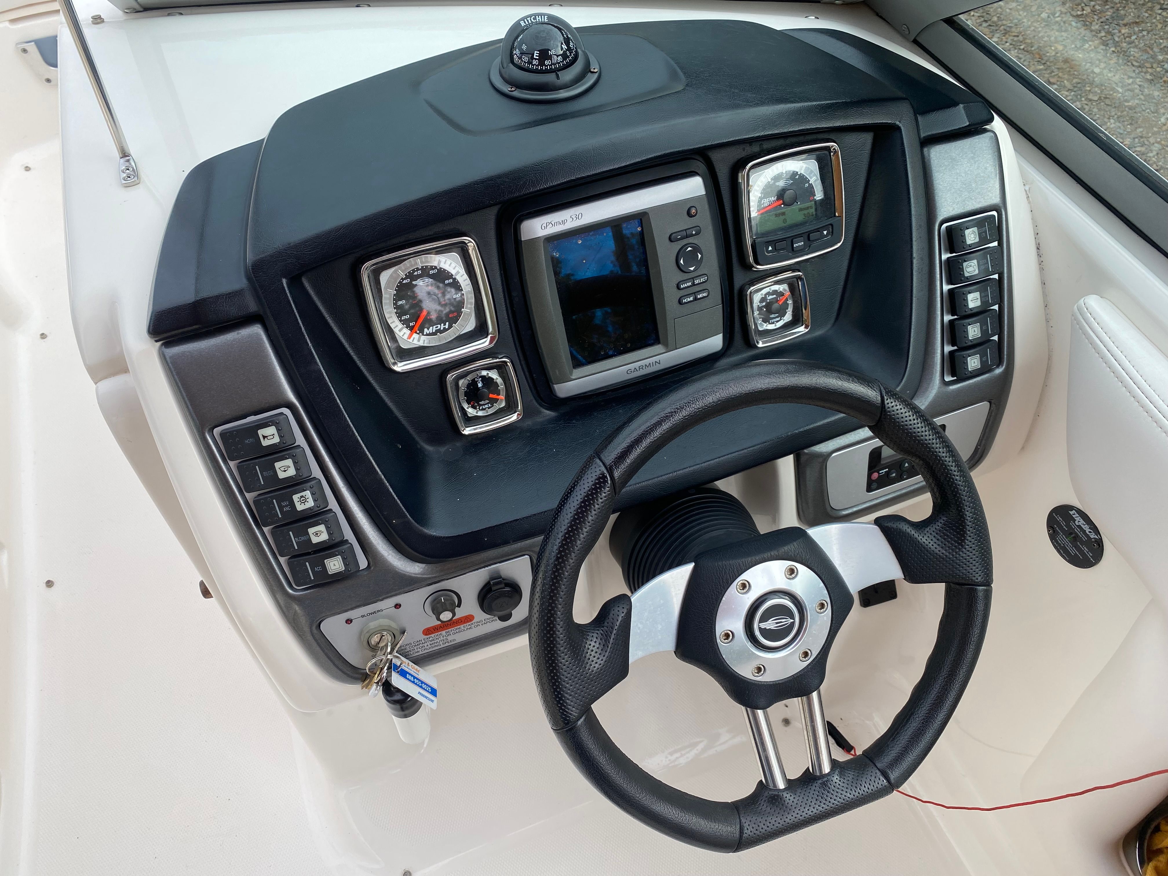 Powering the Chaparral 224 Sunesta is a robust single engine delivering an impressive 270 horsepower. This setup provides the perfect balance of speed, agility, and fuel efficiency, making it ideal for a wide range of on-water activities. Whether you’re cruising along the shoreline, towing water toys, or simply enjoying a leisurely ride, the 224 Sunesta’s engine offers smooth acceleration and responsive handling. With 305 engine hours, this bowrider has plenty of life left, ensuring reliable performance for years to come. The combination of power and precision makes this Chaparral boat for sale a joy to operate, whether you’re navigating calm lakes or exploring coastal waters.