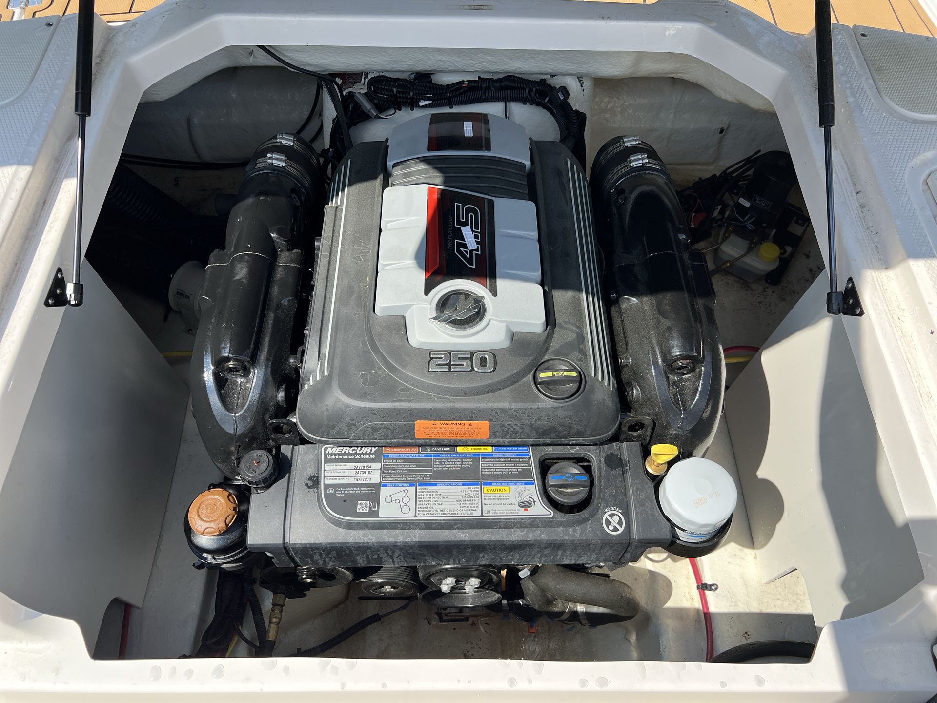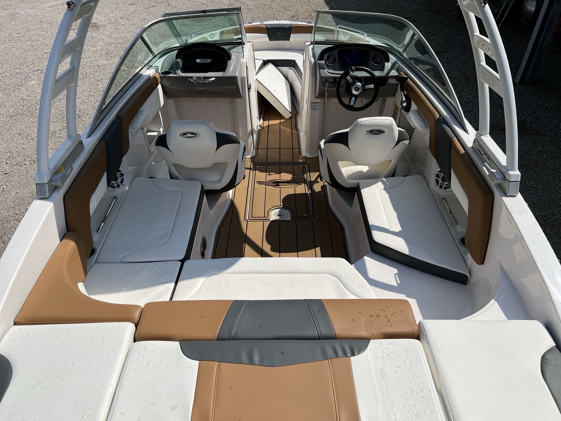 At the heart of the Chaparral 23 SSI is a powerful single engine delivering an impressive 250 horsepower. This robust engine ensures exhilarating acceleration, smooth cruising, and reliable performance whether you are towing water toys, cruising at sunset, or exploring new coves. With only 70 hours on the engine, you can be confident in the longevity and dependability of this Bowrider boat for sale. The 23 SSI’s hull design is engineered for stability and agility, offering a smooth ride even in choppier conditions, while the responsive handling makes docking and maneuvering a breeze.