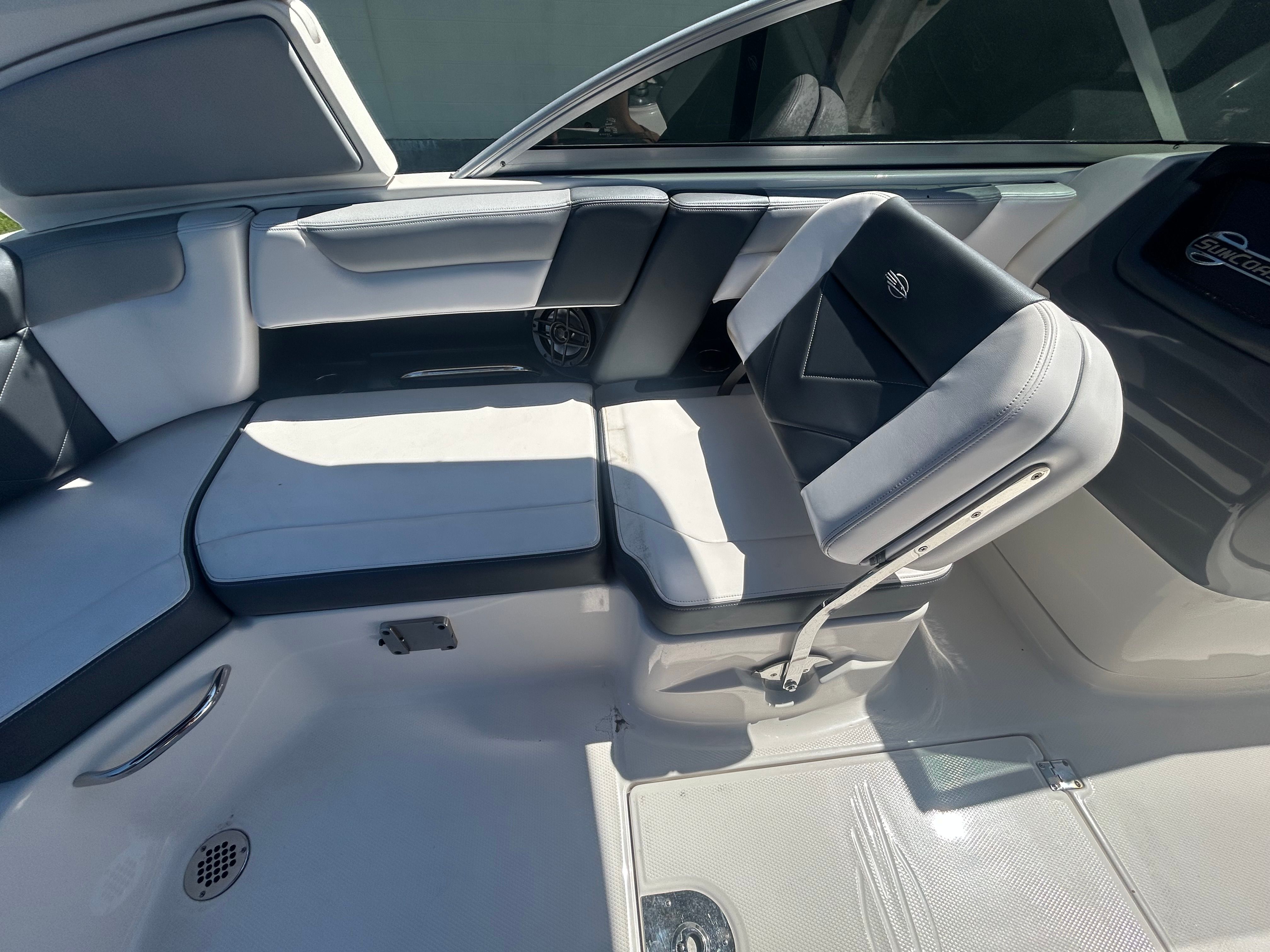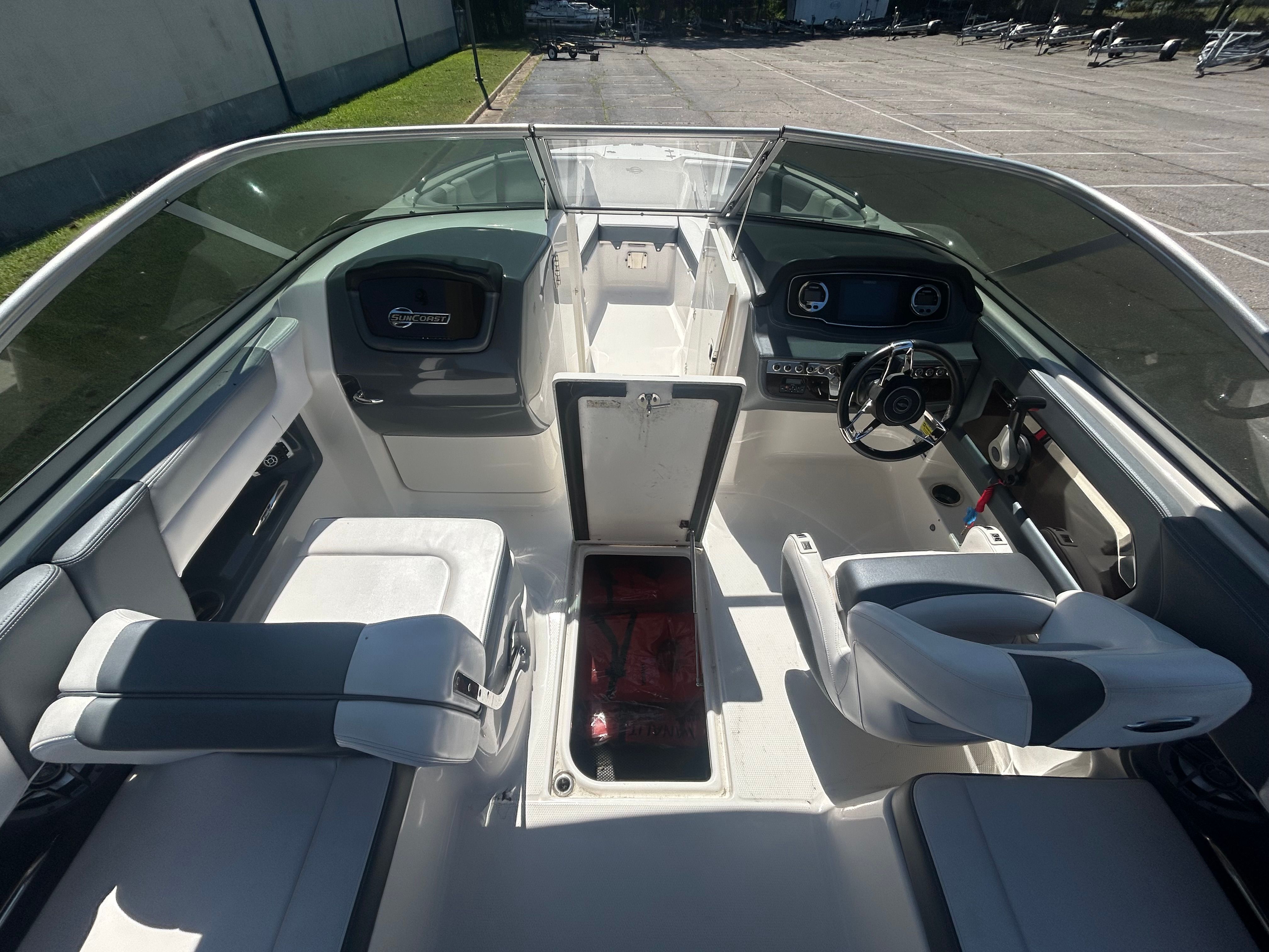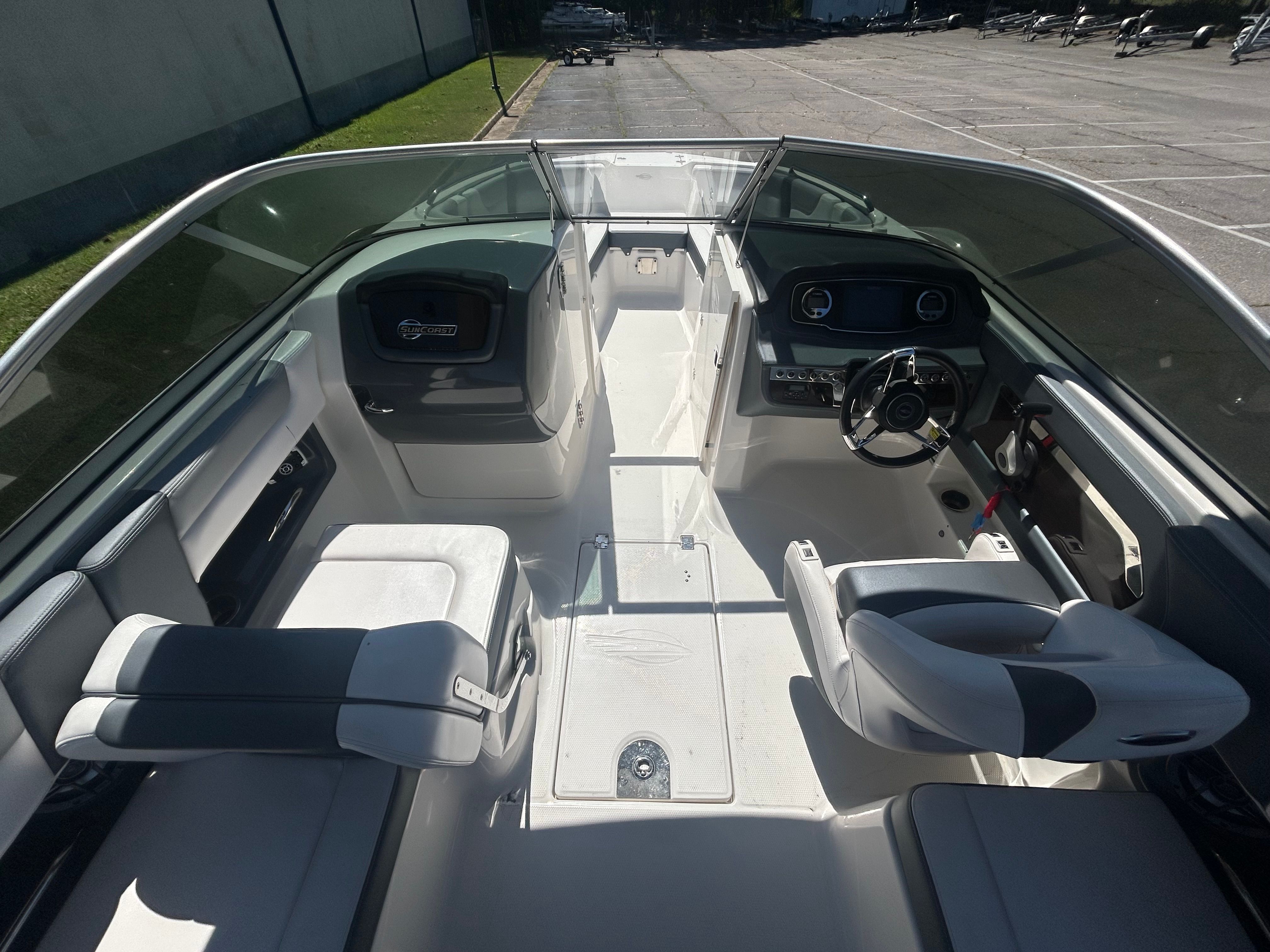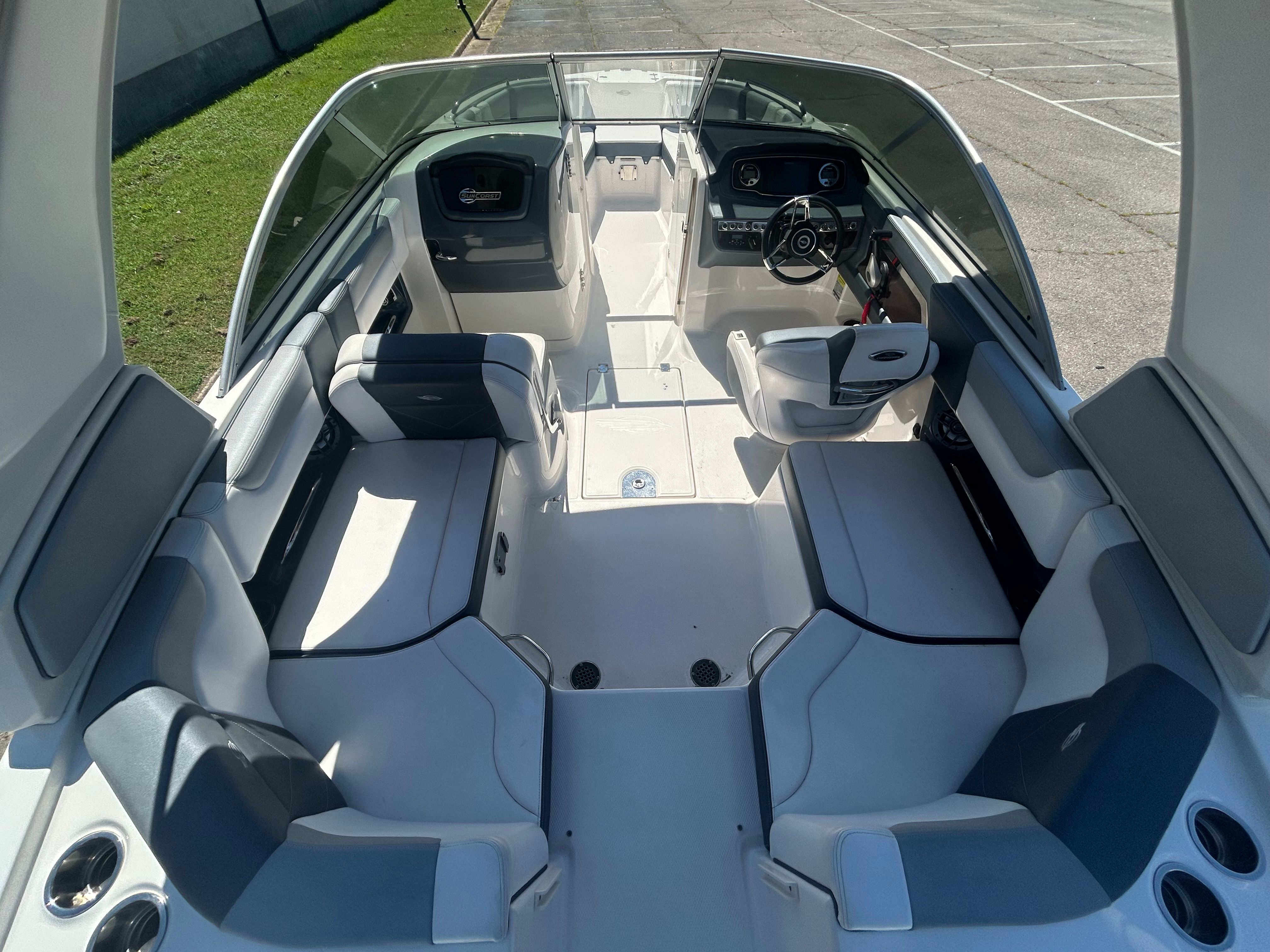 The Chaparral 230 Suncoast is as practical as it is enjoyable. Its manageable size makes docking and trailering a breeze, even for those new to boating. The efficient 200-horsepower engine offers a great balance of power and fuel economy, allowing you to spend more time on the water and less at the pump. The boat’s versatile layout is perfect for a wide range of activities, from fishing and swimming to picnicking and sightseeing.Storage solutions throughout the boat ensure that life jackets, coolers, and water toys have a dedicated place, keeping the deck clutter-free and safe. The swim platform provides easy access for swimmers and water sports enthusiasts, while the deep freeboard adds an extra layer of security for families with children. Every detail of the 230 Suncoast is designed to make ownership simple, enjoyable, and stress-free.