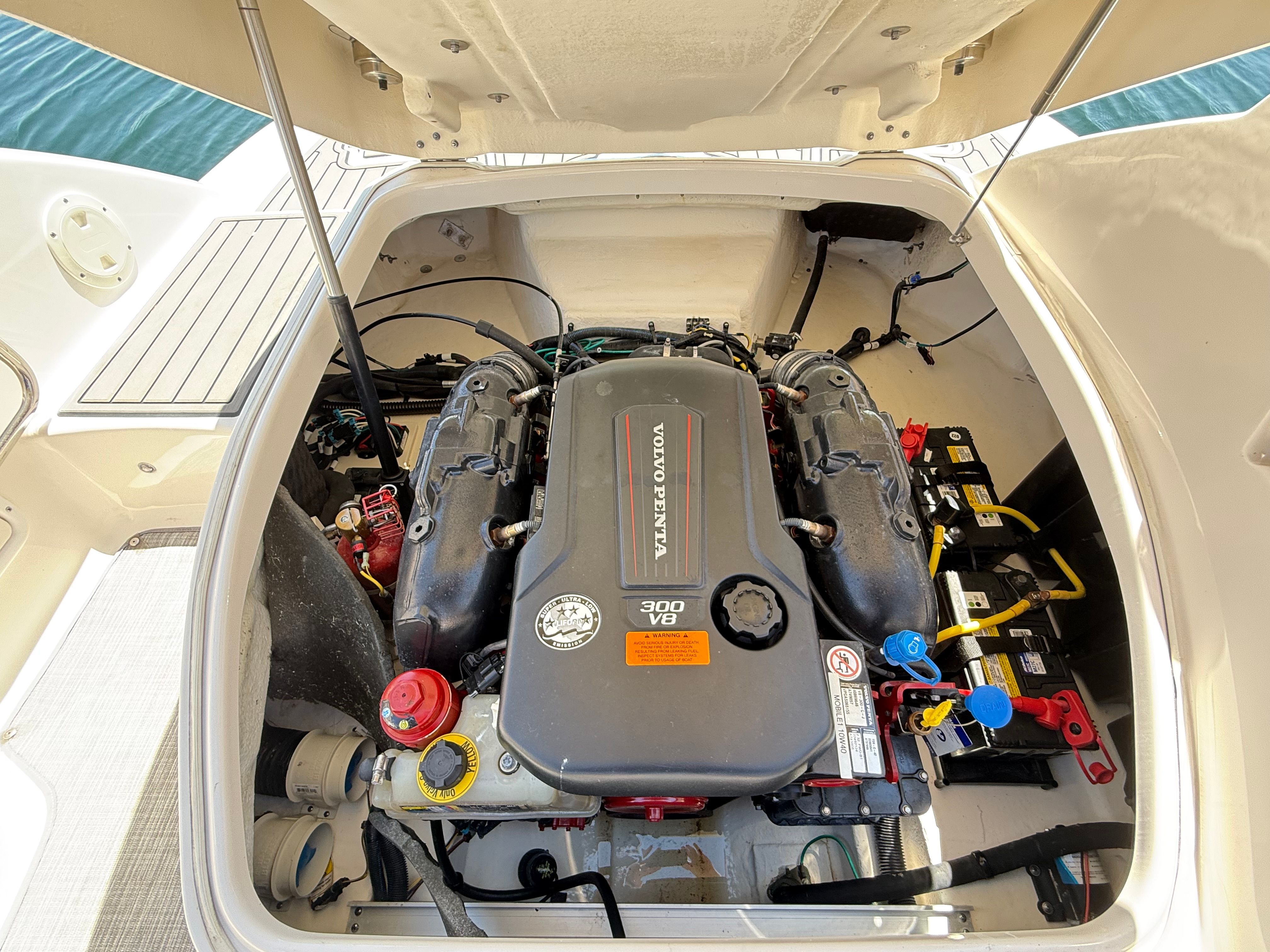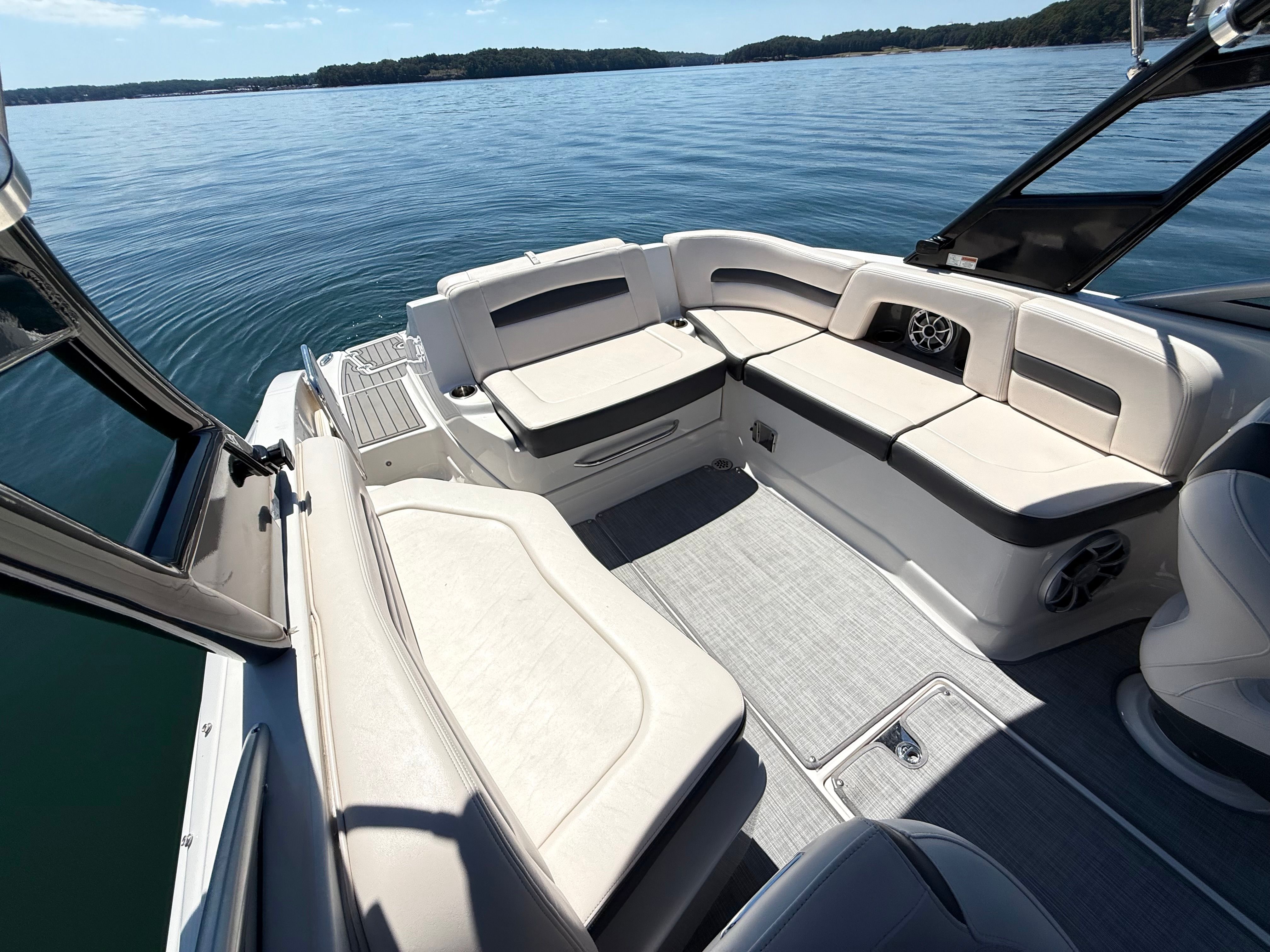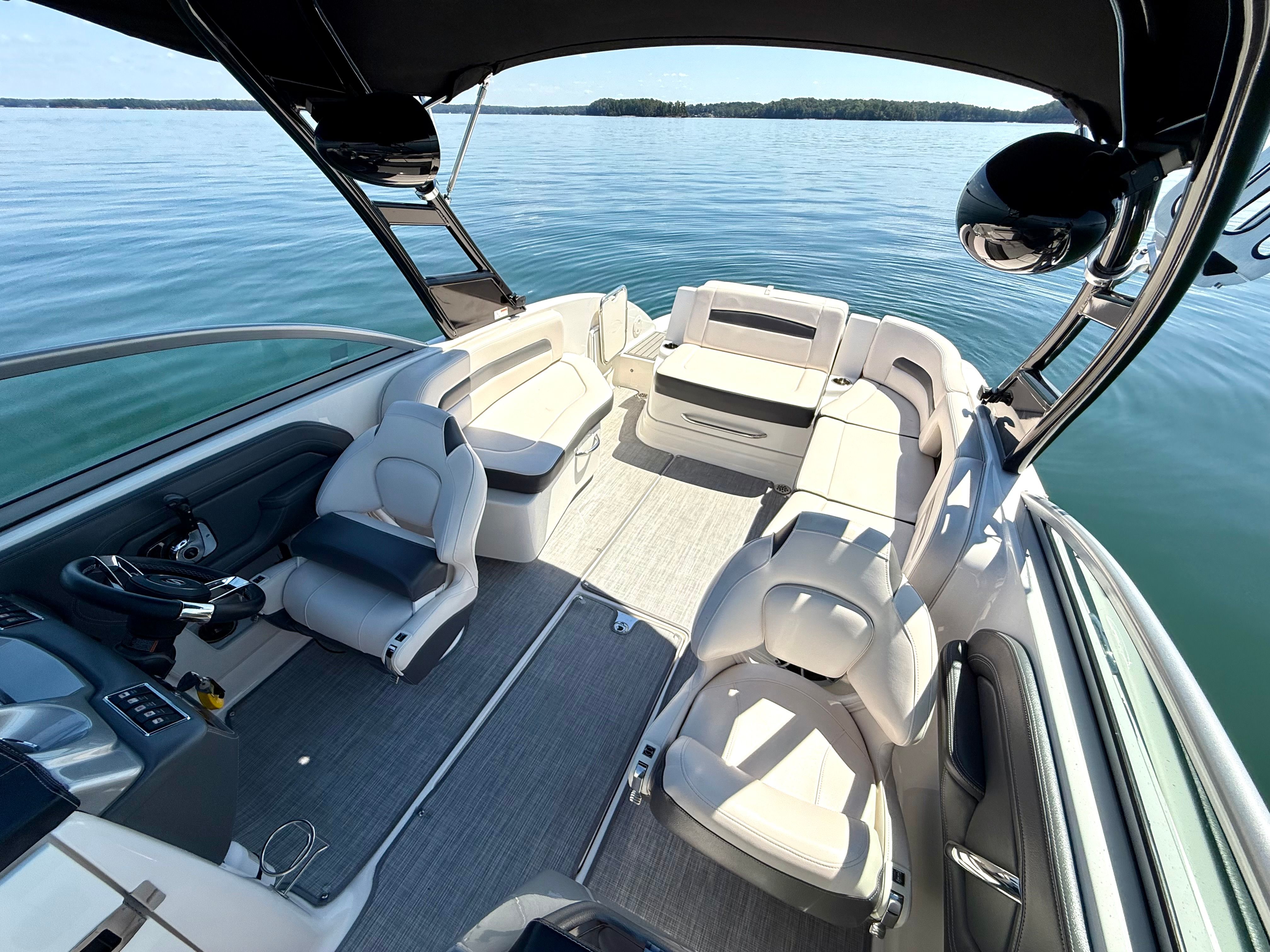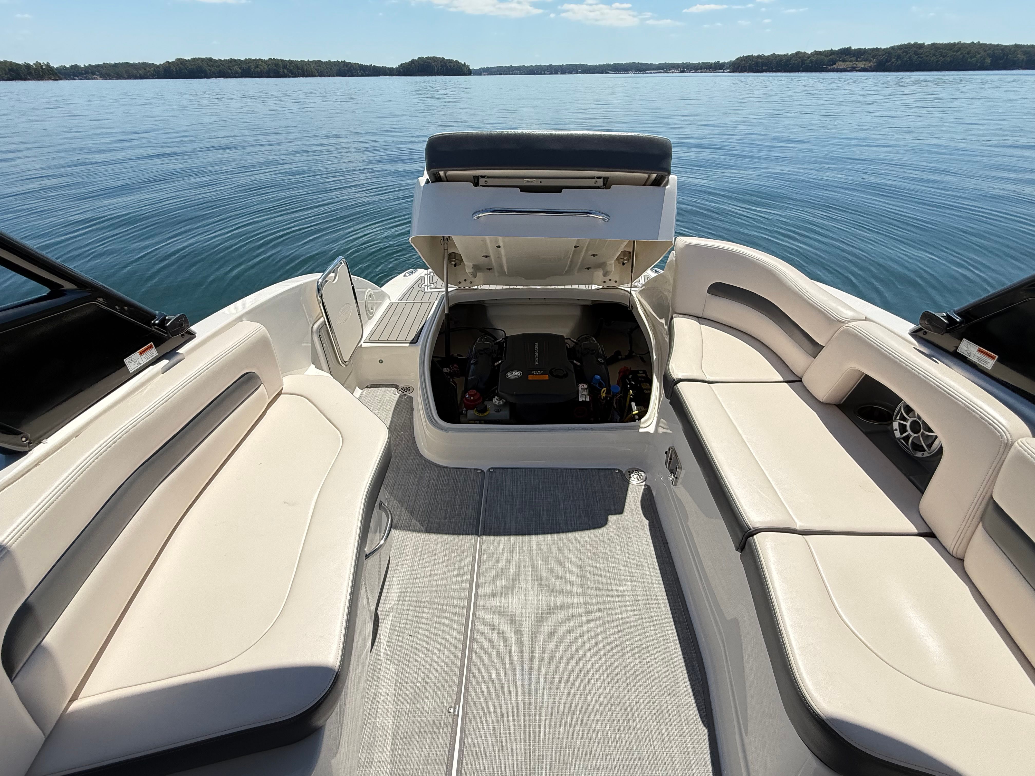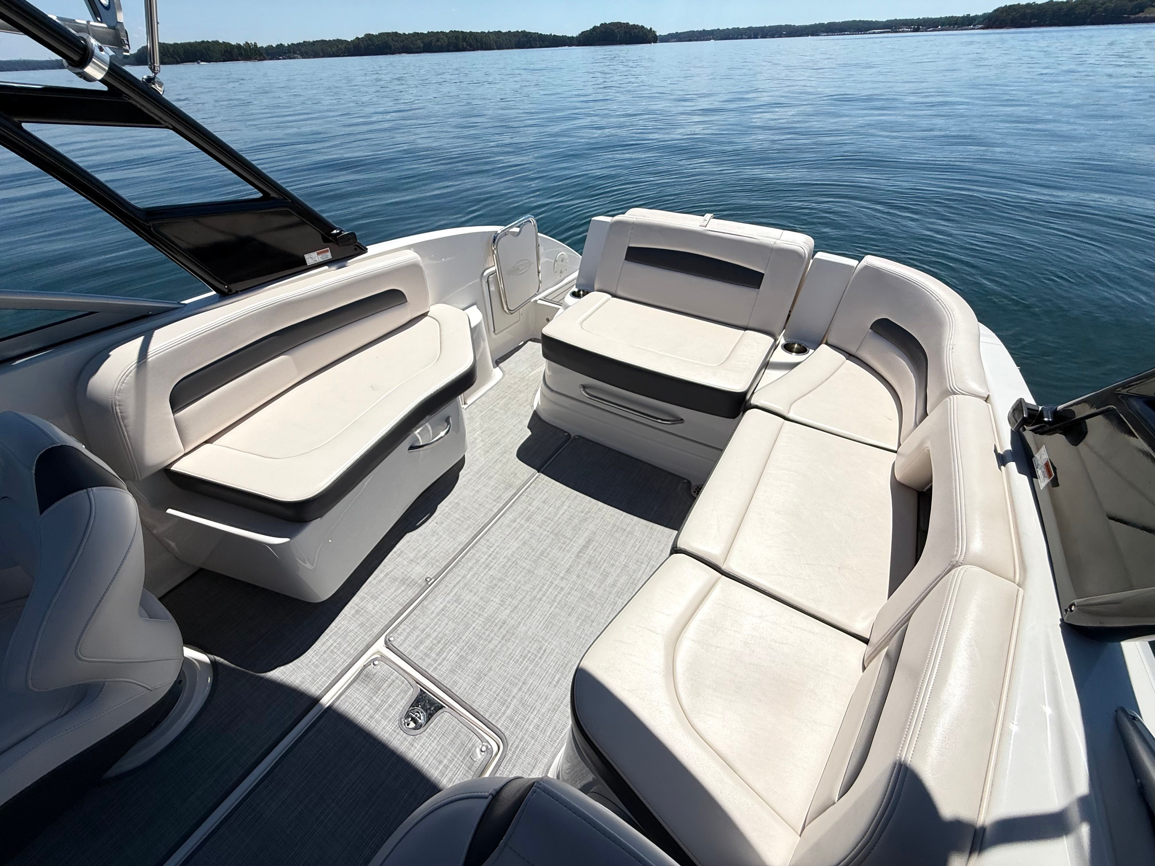 Powered by a Volvo Penta V8 300hp Forward Drive with only 280 hours, this boat combines luxury, power, and watersport performance in a sleek, family-friendly package.