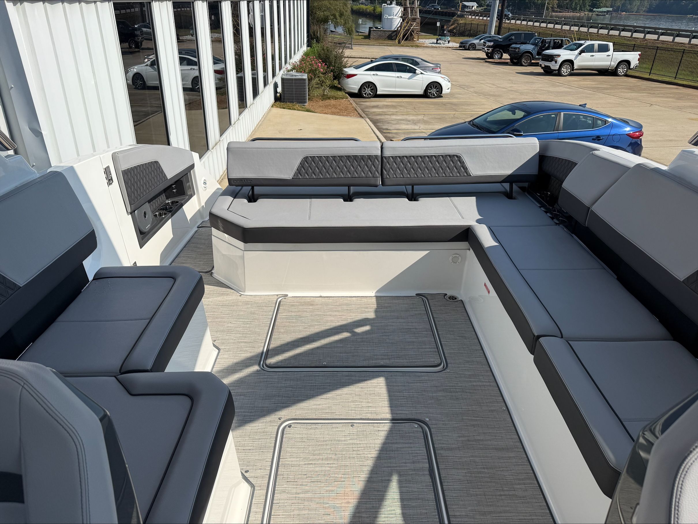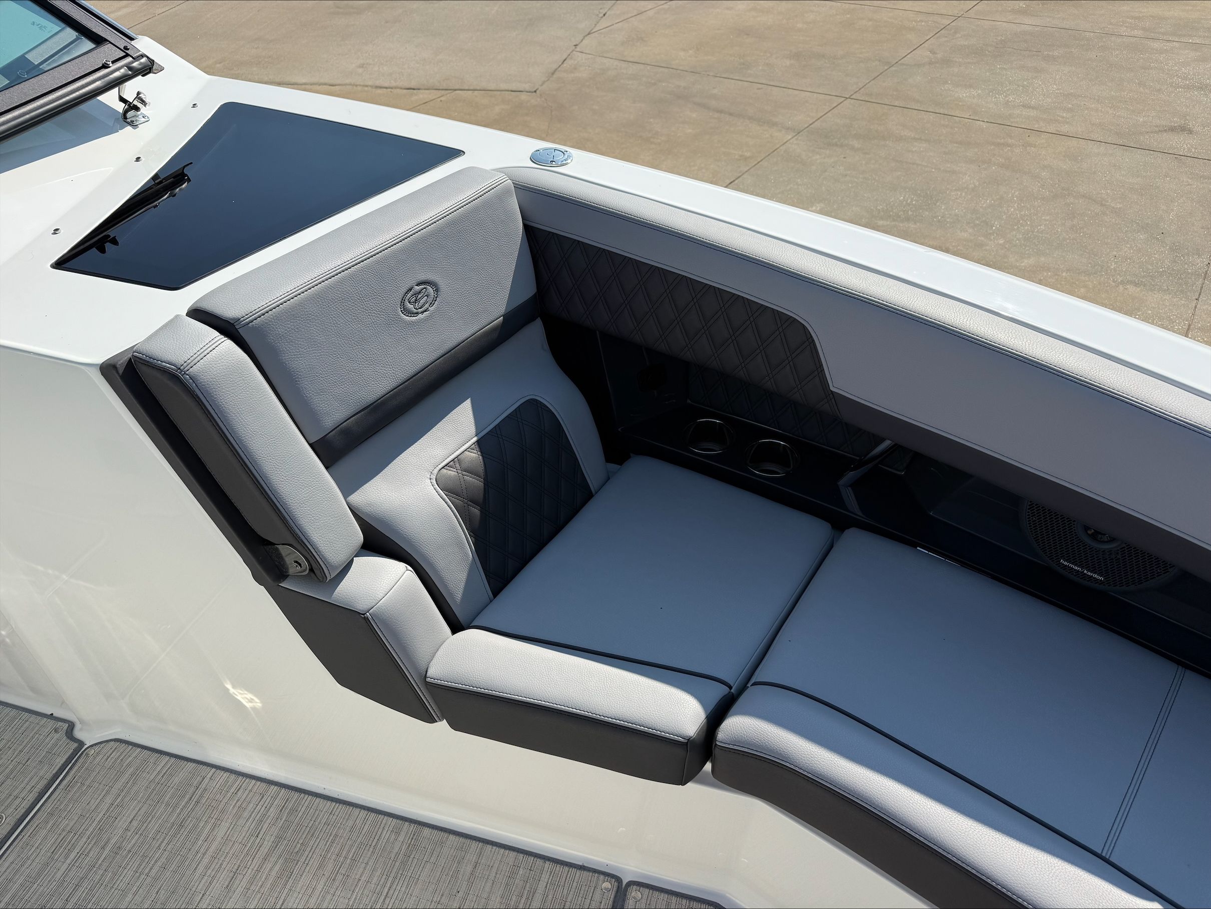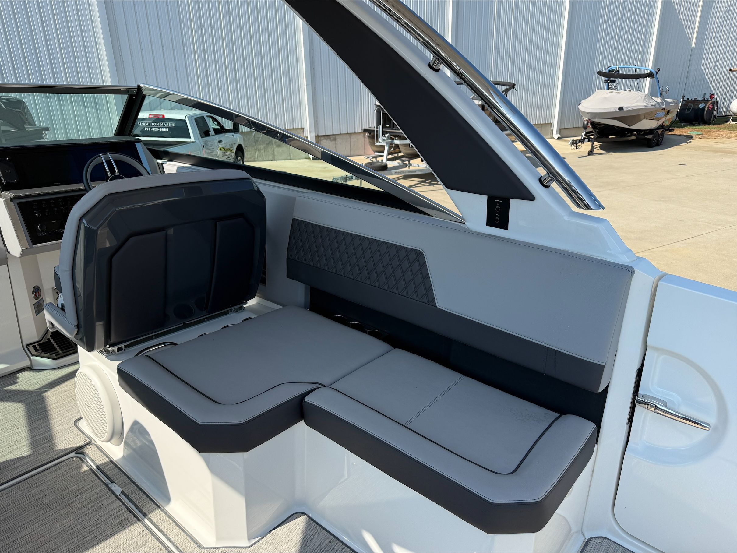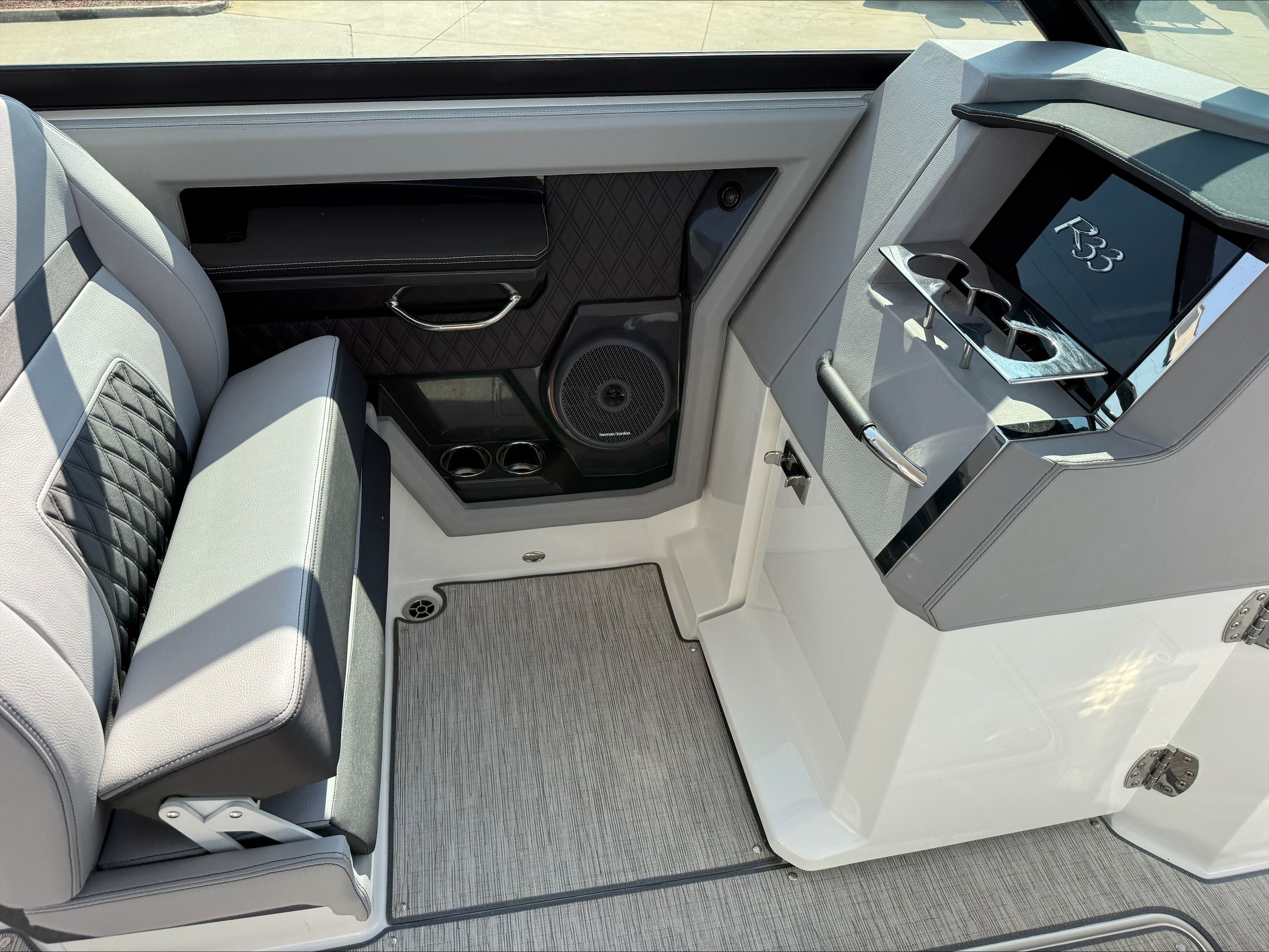Under the hood, the Cobalt R33 boasts twin engines, delivering a combined 760 horsepower. This powerful setup ensures exhilarating acceleration, smooth cruising, and responsive handling, whether you’re navigating coastal waters or exploring inland lakes. The dual-engine configuration not only enhances performance but also provides added reliability and control, making every journey both thrilling and secure. With only 91 engine hours, these engines are primed for many more seasons of enjoyment, offering peace of mind and outstanding value for those seeking a high-performance Cobalt boat for sale.