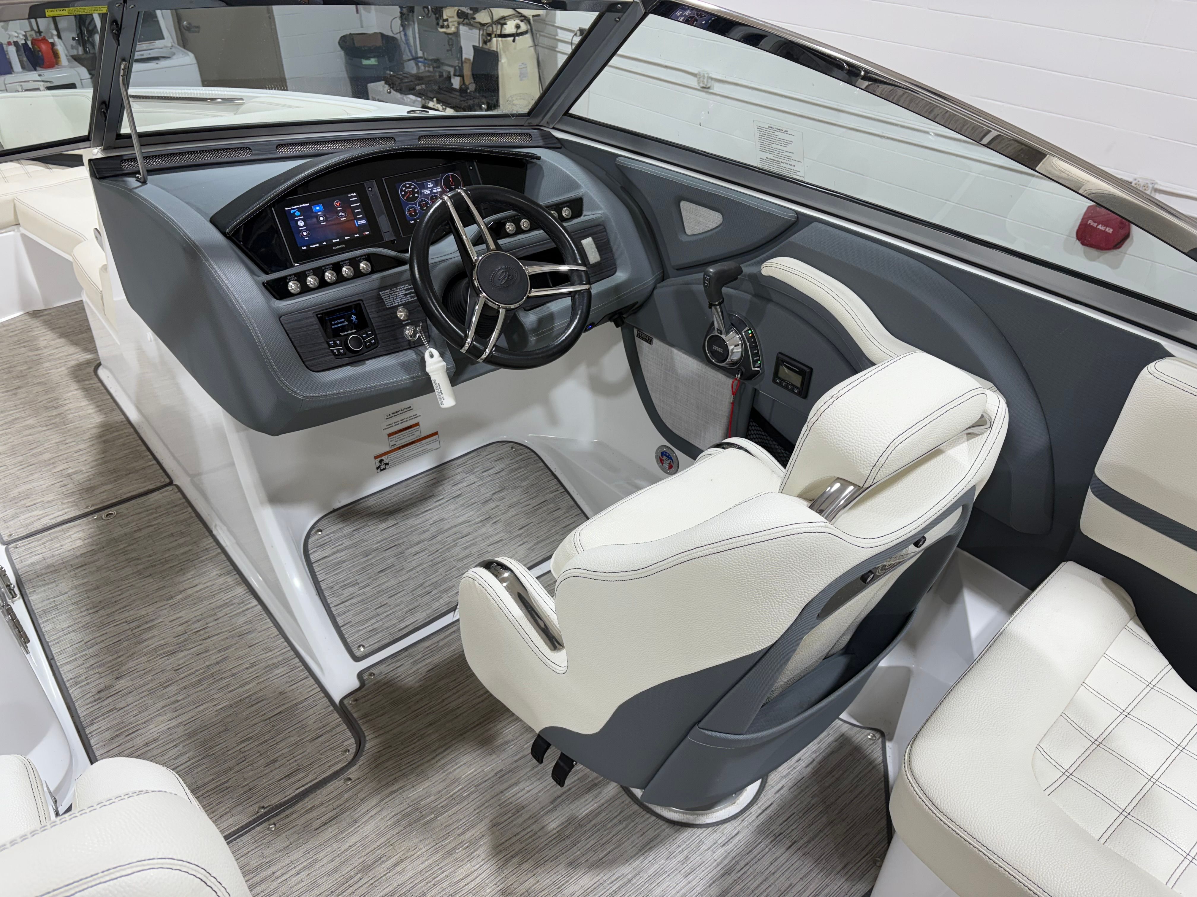 The 2021 Cobalt R5 Bowrider is packed with features designed to elevate your boating experience. Its spacious 25.67-foot layout provides generous seating and lounging areas, making it ideal for entertaining guests or relaxing with family. The ergonomic helm station offers intuitive controls and excellent visibility, ensuring a safe and enjoyable journey every time you set out.The open bow configuration is a hallmark of Bowrider boats, offering easy access to the water and a versatile space for sunbathing, socializing, or simply enjoying the view. The cockpit is designed for comfort, with plush seating and ample legroom. Storage compartments are strategically placed throughout the boat, allowing you to stow gear, snacks, and personal items securely and conveniently.