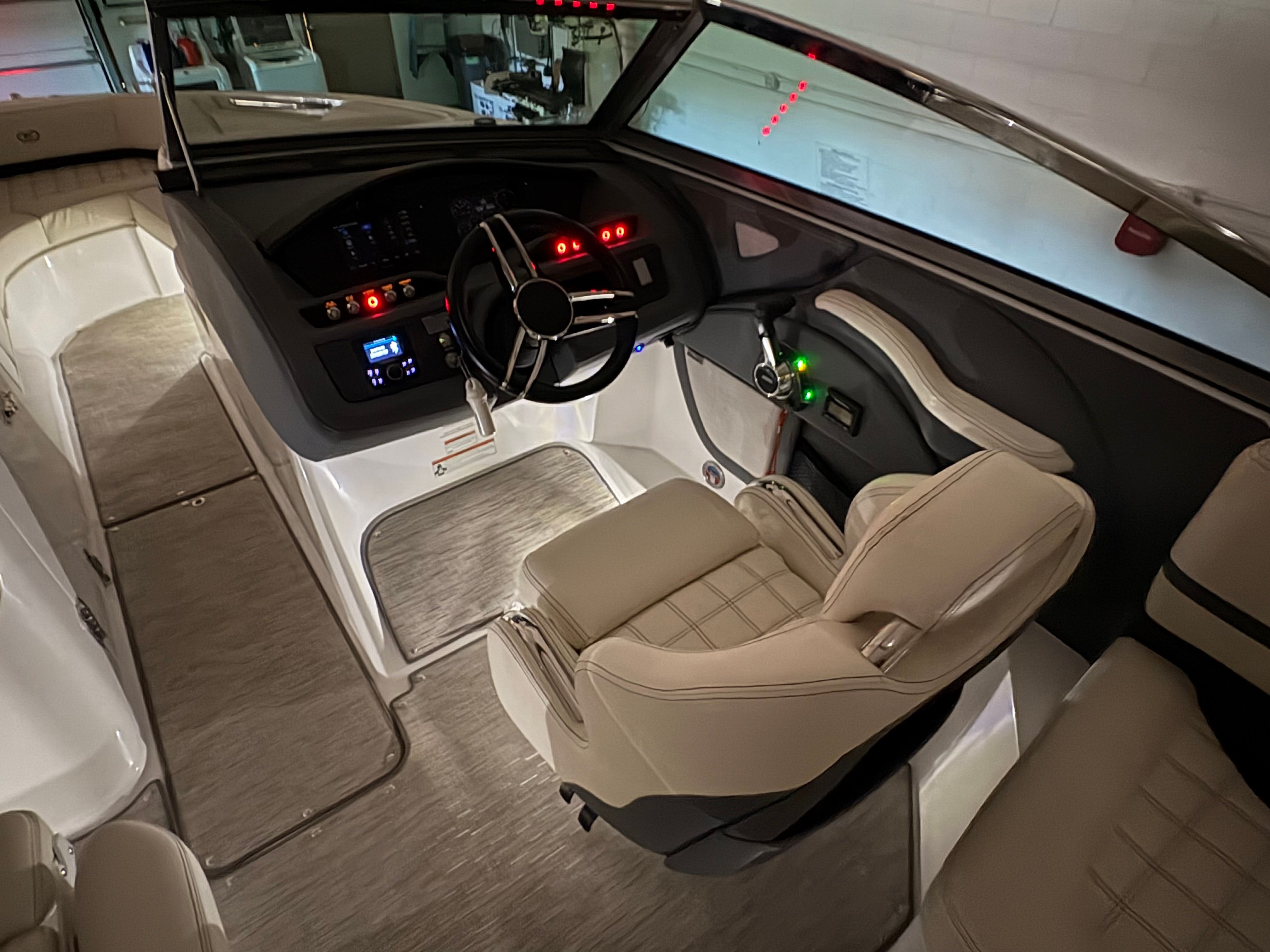 Practicality is another key advantage of the 2021 Cobalt R5. The boat’s thoughtful layout includes ample storage for all your gear, making it easy to keep the deck clutter-free and organized. Docking is a breeze thanks to the boat’s responsive handling and manageable size, allowing you to navigate marinas and tight spaces with confidence.Fuel efficiency is enhanced by Cobalt’s advanced hull design, ensuring you can enjoy longer outings without frequent refueling stops. The single-engine setup simplifies maintenance and reduces operating costs, making this used Cobalt boat for sale an economical choice for savvy buyers.
