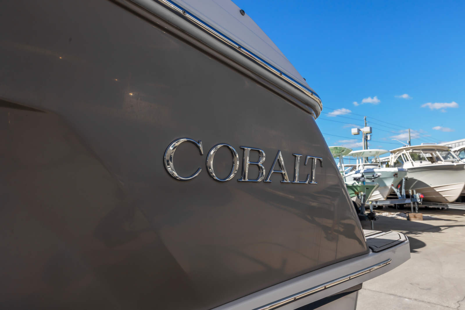 Well-equipped for entertaining and cruising, this boat features dual in-dash Garmin multifunction displays, JL Audio sound system, electric windlass anchor, trim tabs, and an aluminum arch with integrated Bimini top for added comfort and shade. Cobalt’s signature interior layout includes plush wraparound seating, a convertible aft sunpad, and a spacious, enclosed head compartment, all finished with top-tier materials and stitching.