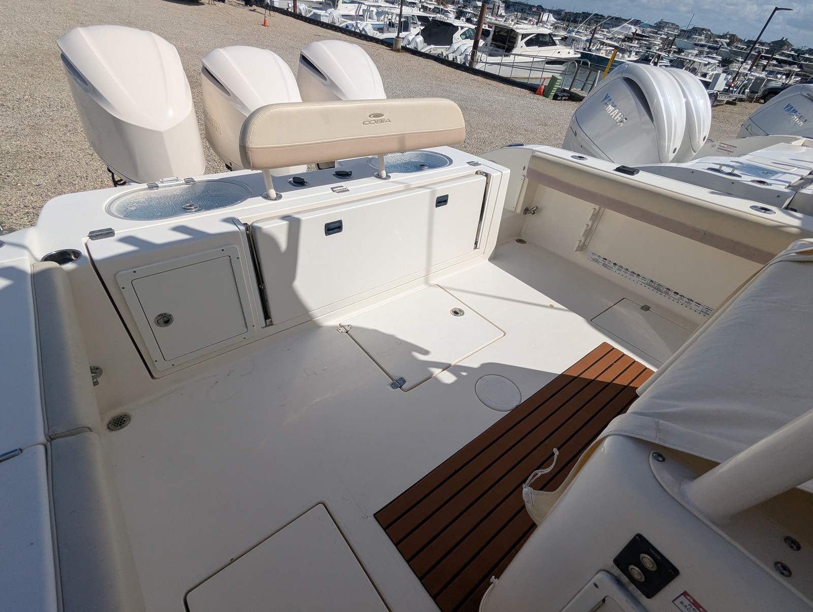 In summary, the 2018 Cobia 344 CC is a remarkable Center Console boat for sale that combines power, style, and versatility. With its triple-engine setup delivering 900 horsepower, spacious 33-foot layout, and thoughtful design, this Cobia boat for sale is perfect for anyone seeking adventure, comfort, and reliability on the water. Whether you’re planning fishing trips, family outings, or luxury getaways, the Cobia 344 CC stands ready to exceed your expectations. Don’t miss the opportunity to own this exceptional vessel—contact the dealer today to learn more and start your next boating adventure.